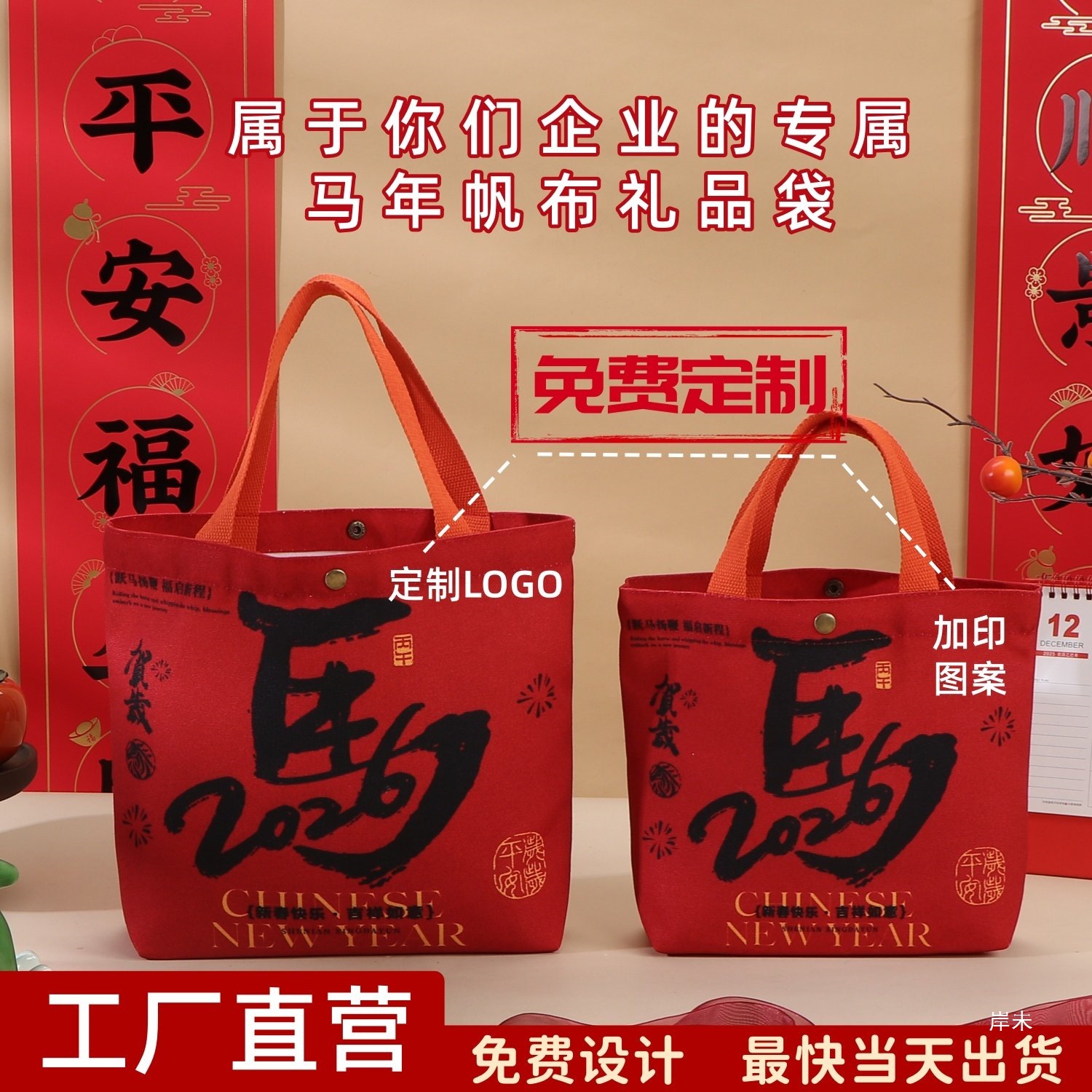 新年礼品袋2026马年新款元旦礼盒糖盒礼物马上有福伴手礼送员工