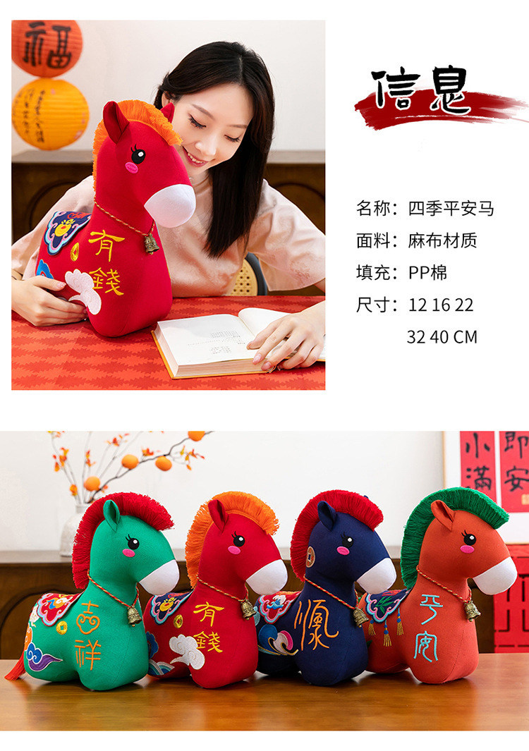2026马年吉祥物四季平安马毛绒玩具公仔马上有钱中国风玩偶伴手礼