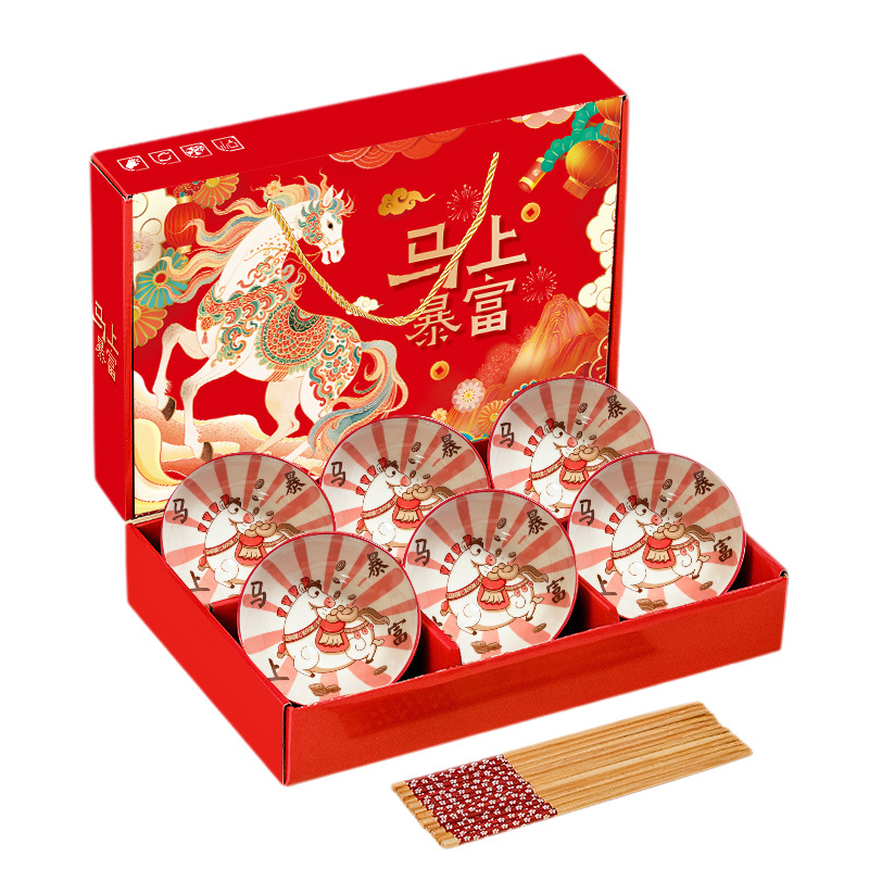 马年碗筷套装家用套碗跨境陶瓷碗商务会销实用小礼品结婚伴手礼批