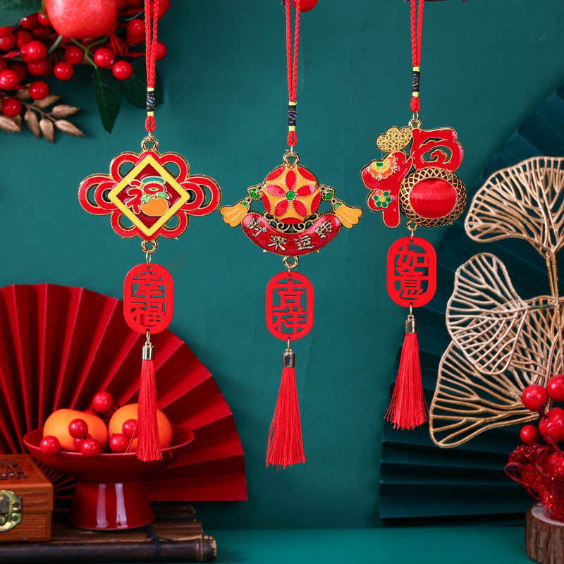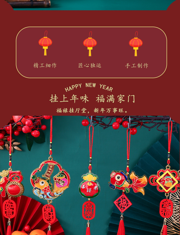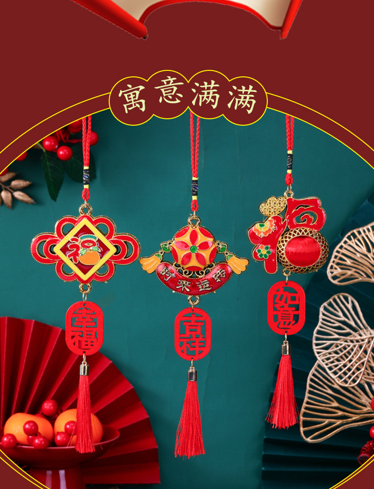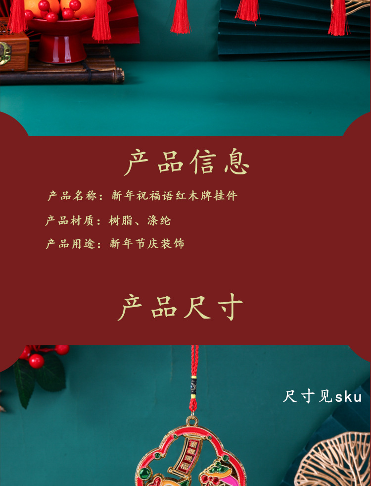 新年祝福语红木牌挂件 马年春节福字挂件喜庆装饰车载木牌 小挂件