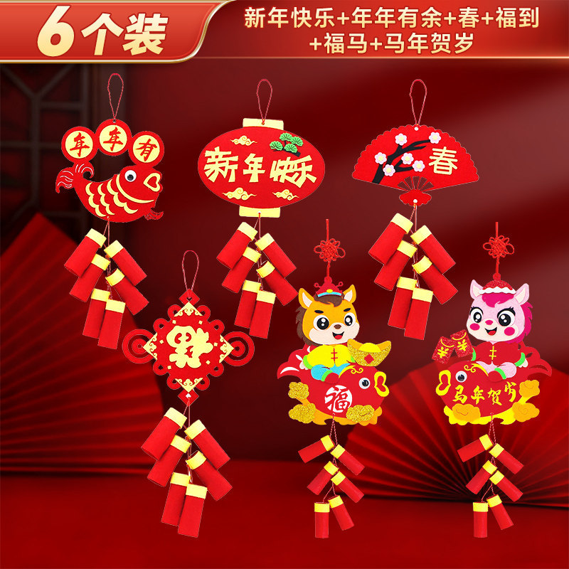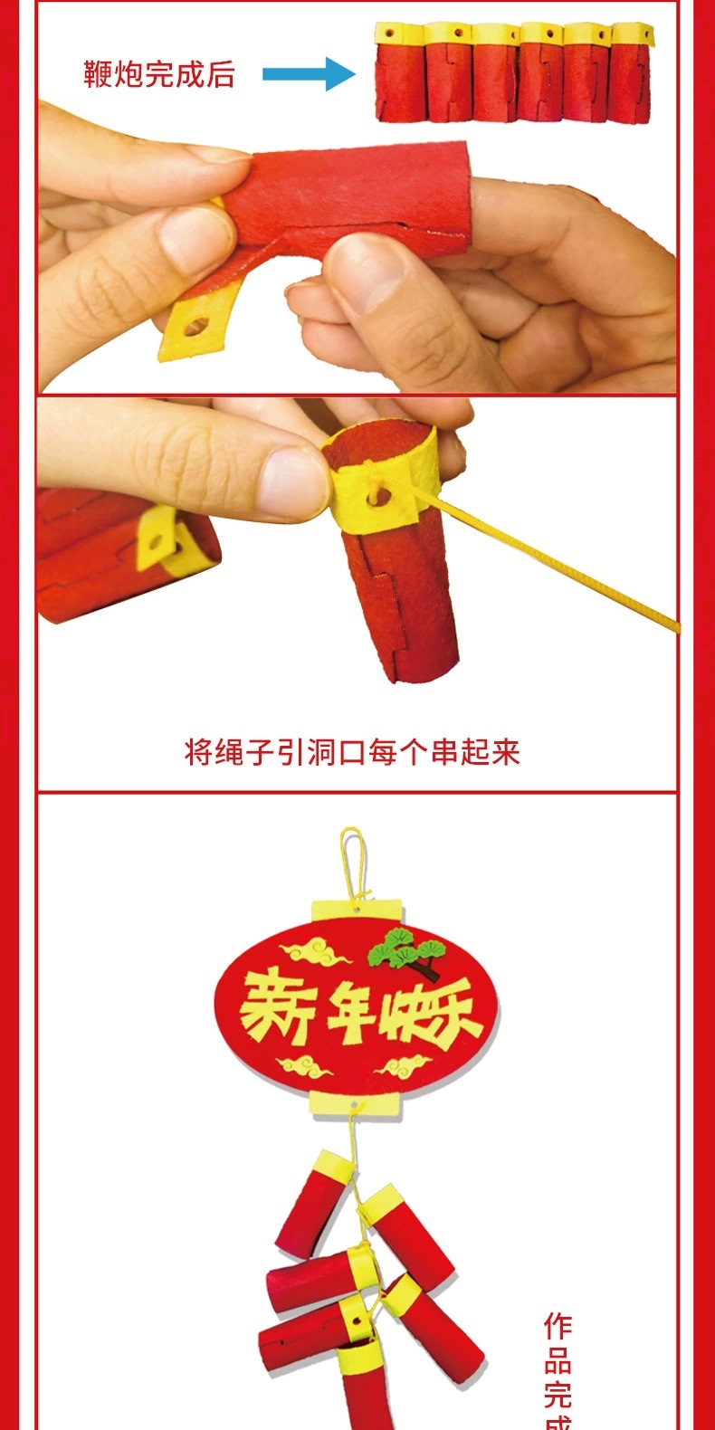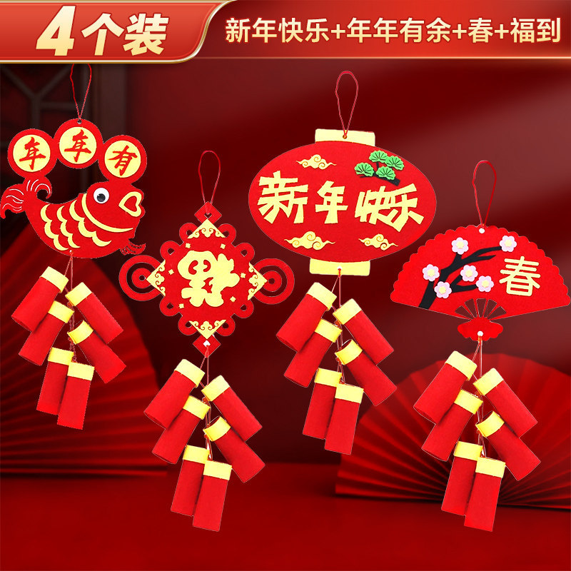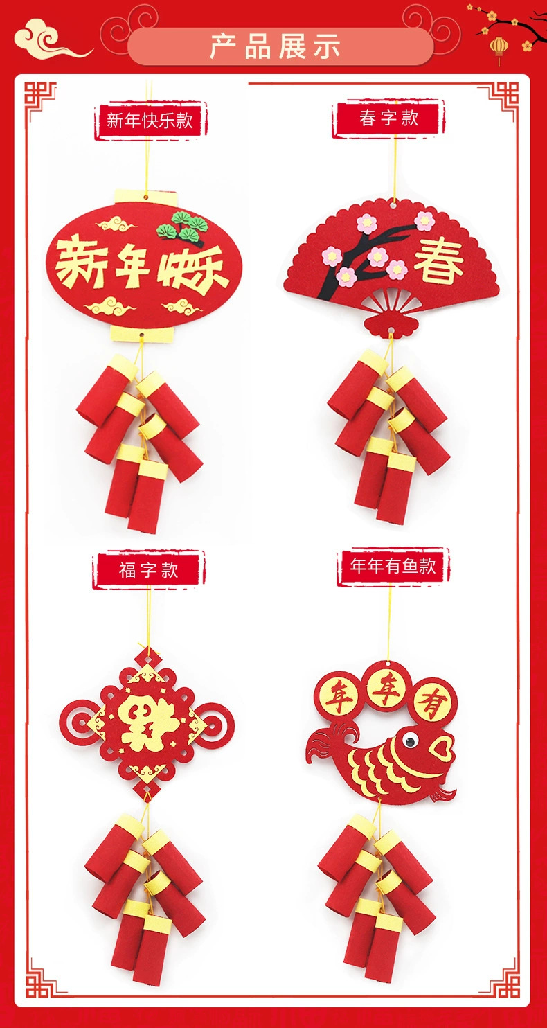 元旦新年手工diy幼儿园喜庆小鞭炮春节挂饰儿童不织布制作材料包