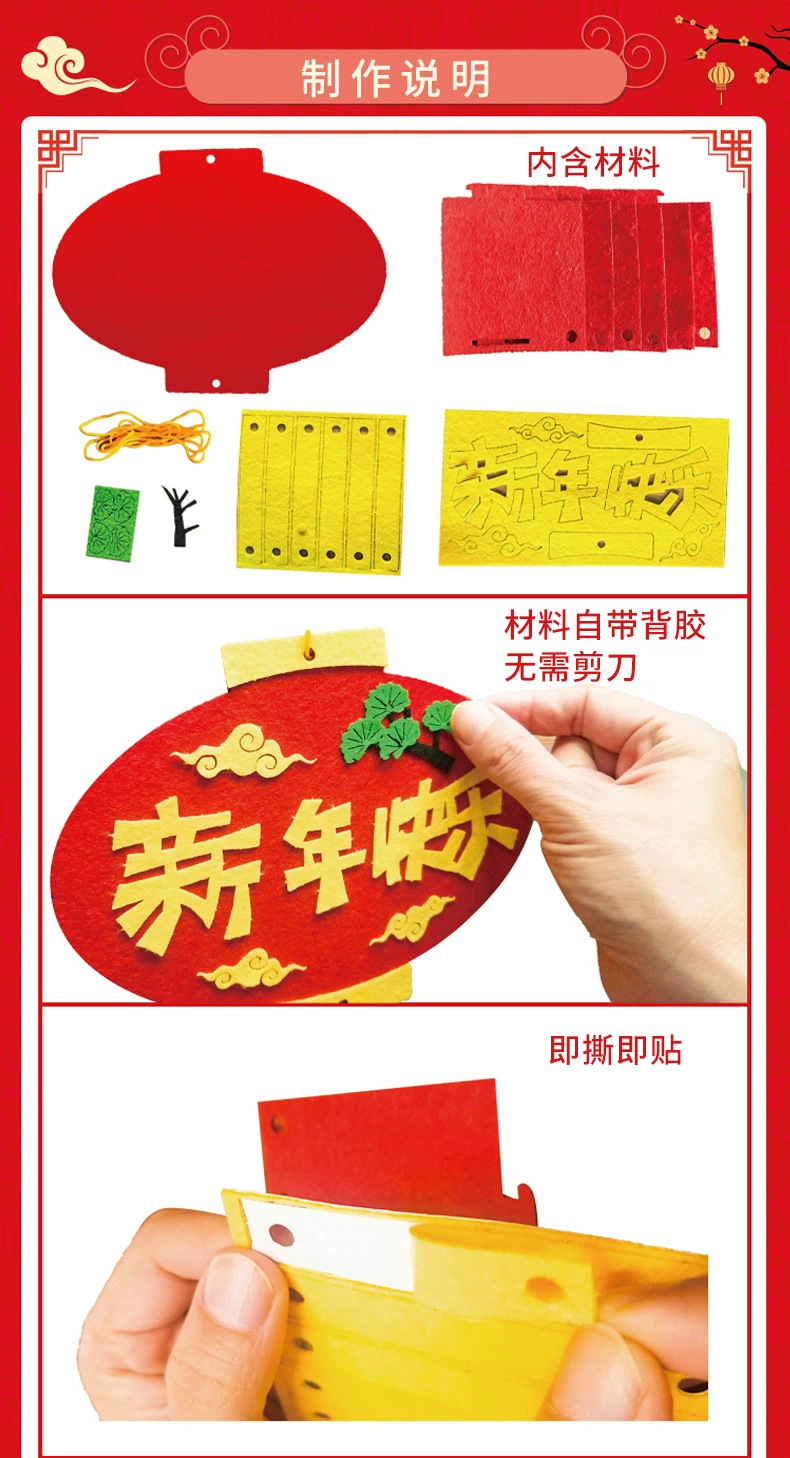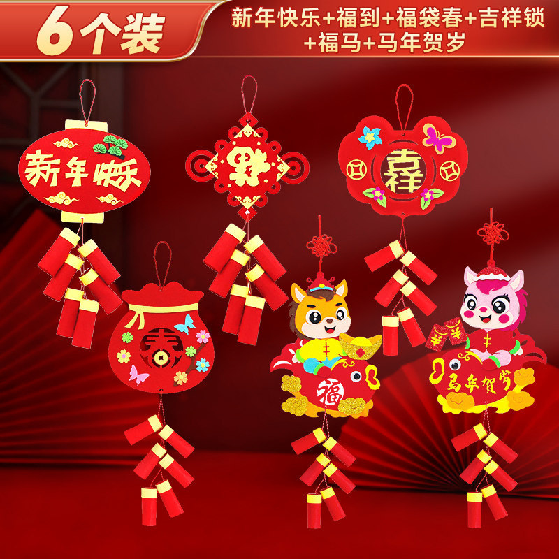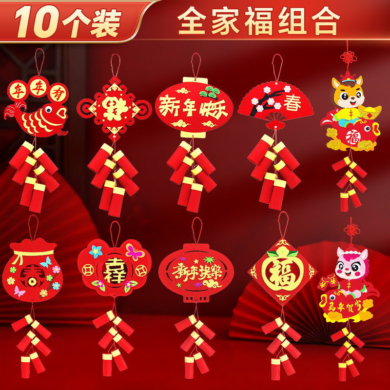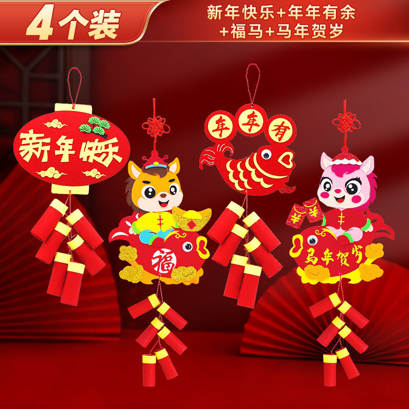 元旦新年手工diy幼儿园喜庆小鞭炮春节挂饰儿童不织布制作材料包