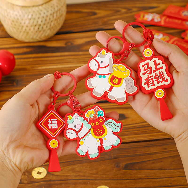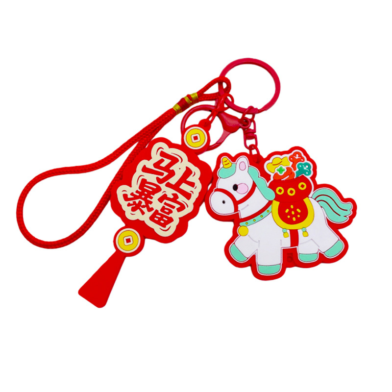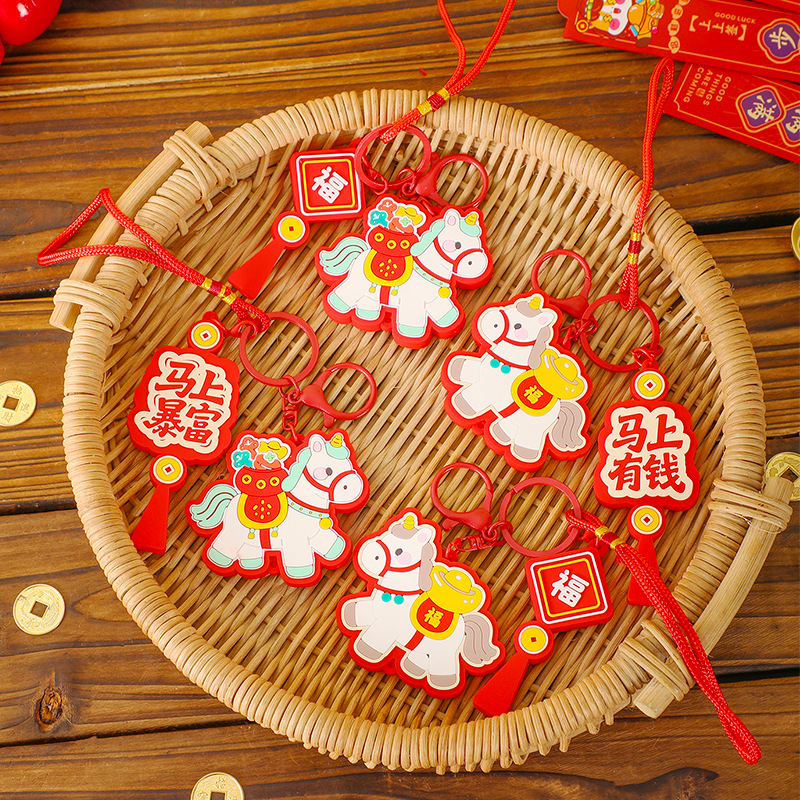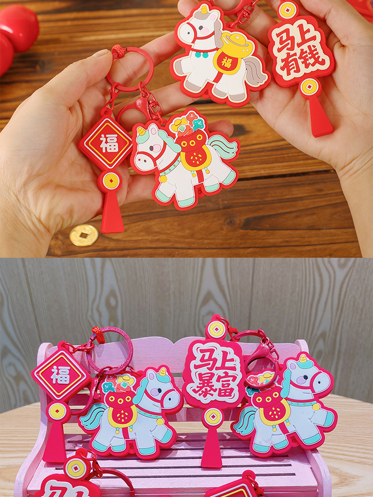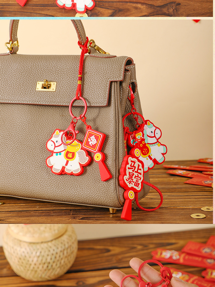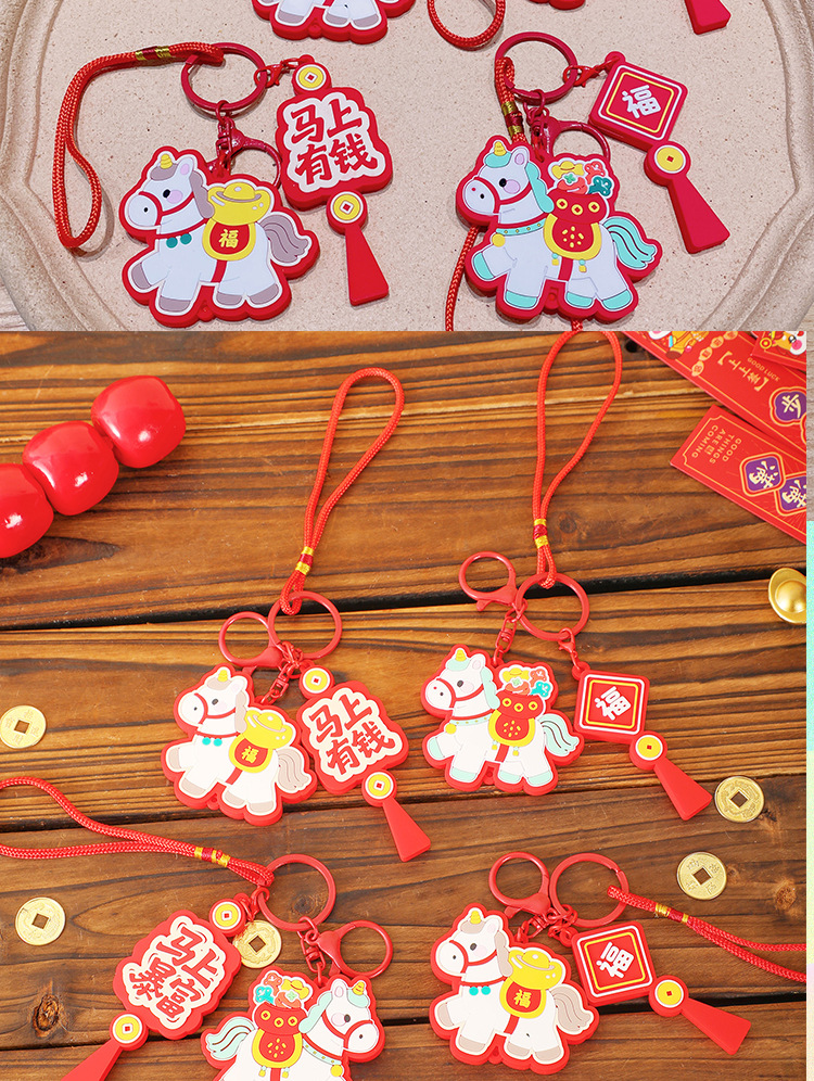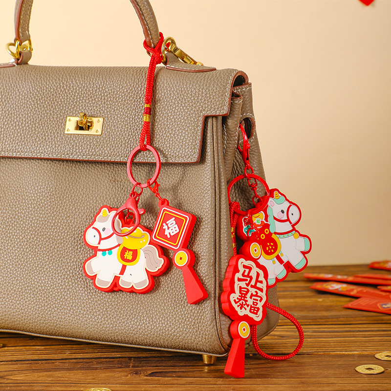马上有钱生肖小马国潮钥匙扣精致包包挂件汽车钥匙链喜庆马年礼品