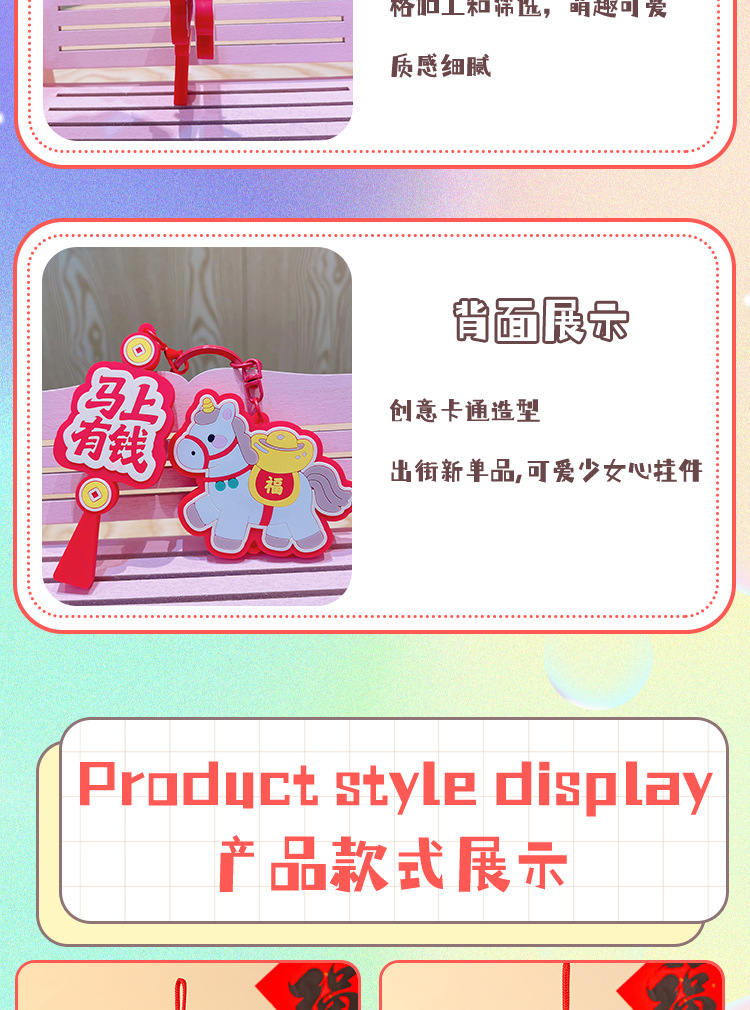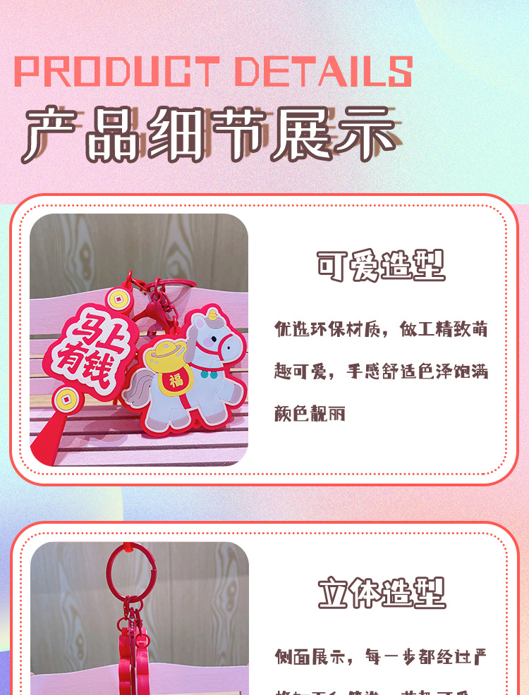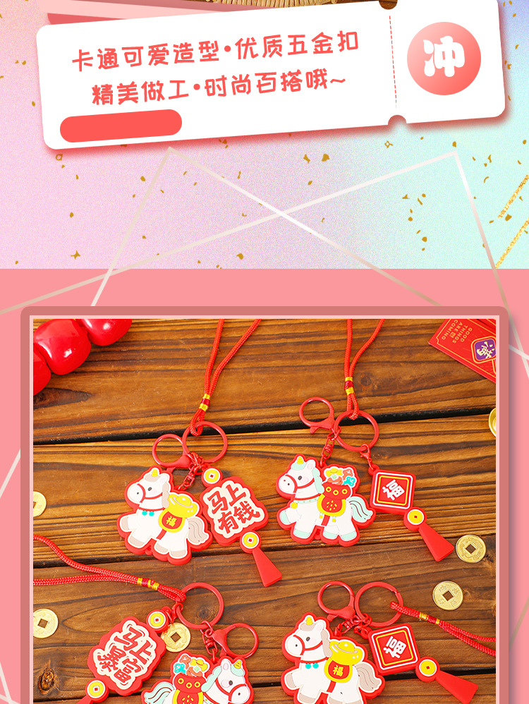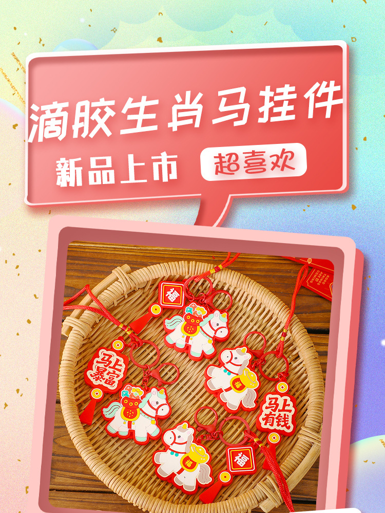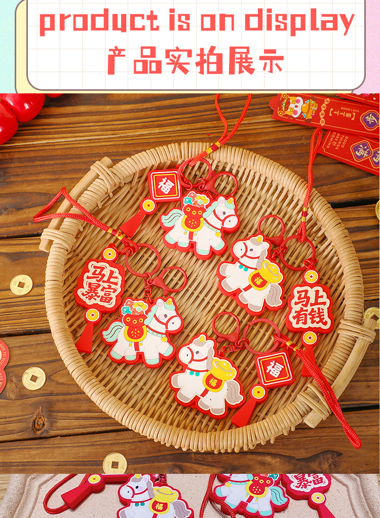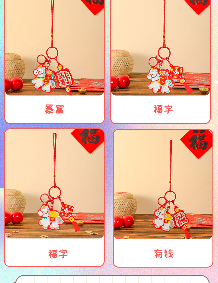 马上有钱生肖小马国潮钥匙扣精致包包挂件汽车钥匙链喜庆马年礼品