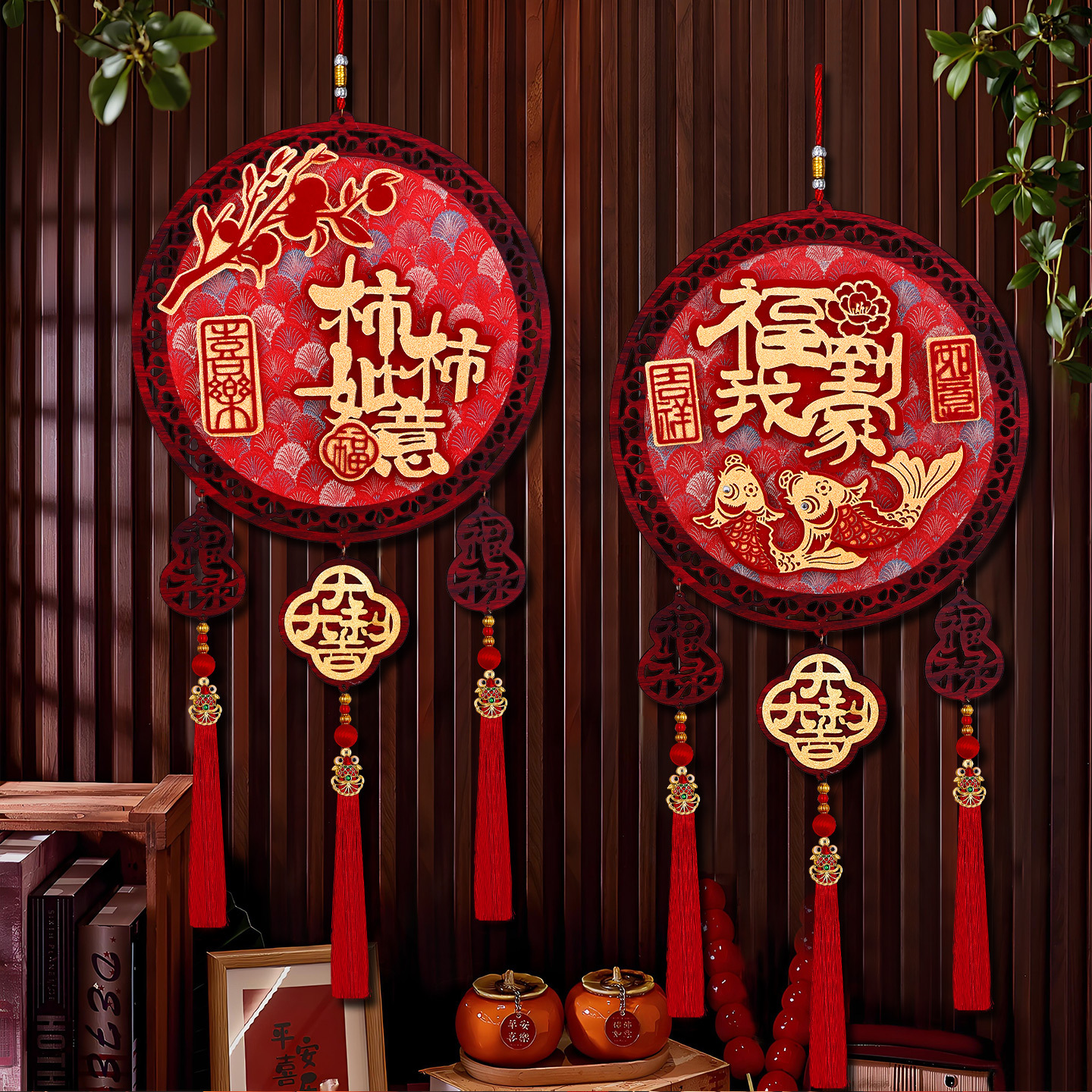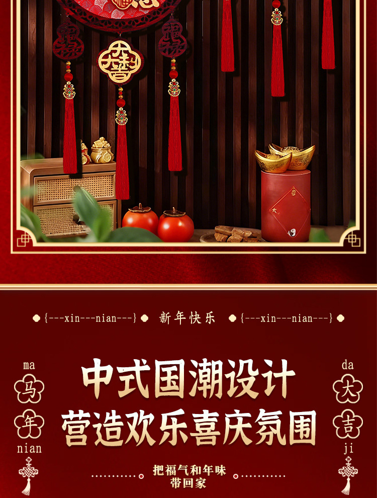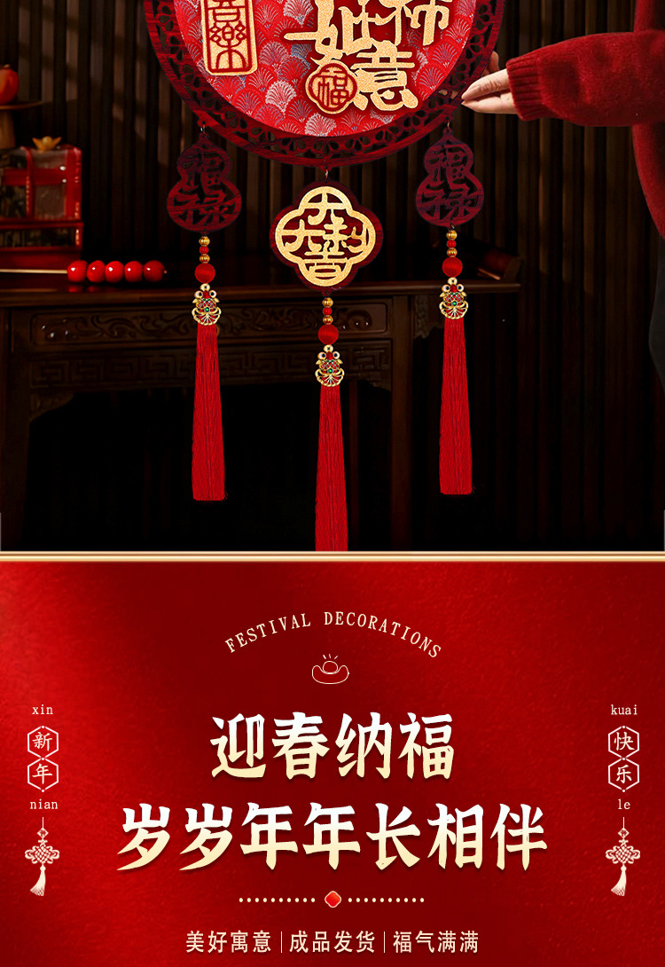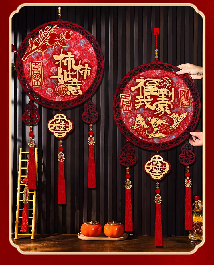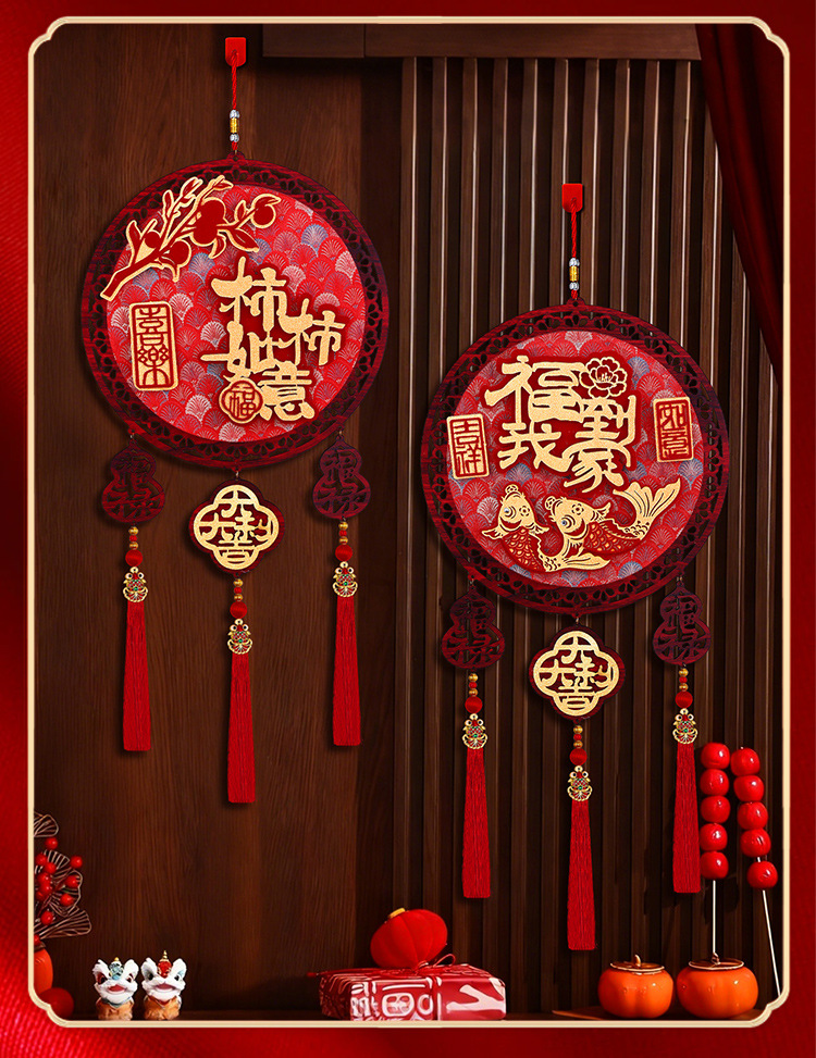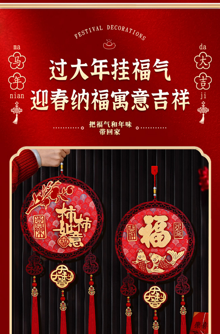 2026马年圆形福字木挂立体挂饰客厅玄关春节过年氛围装饰用品喜庆