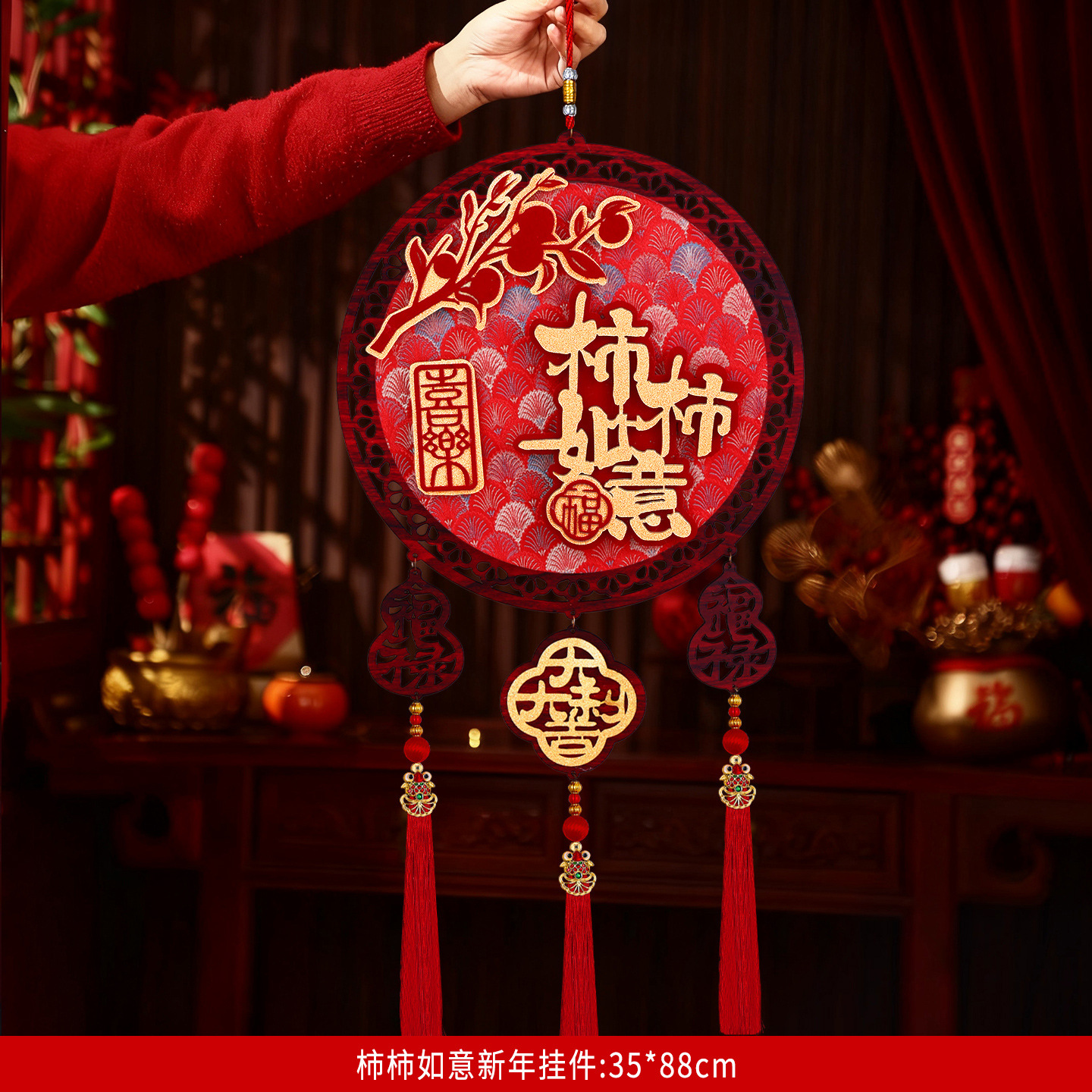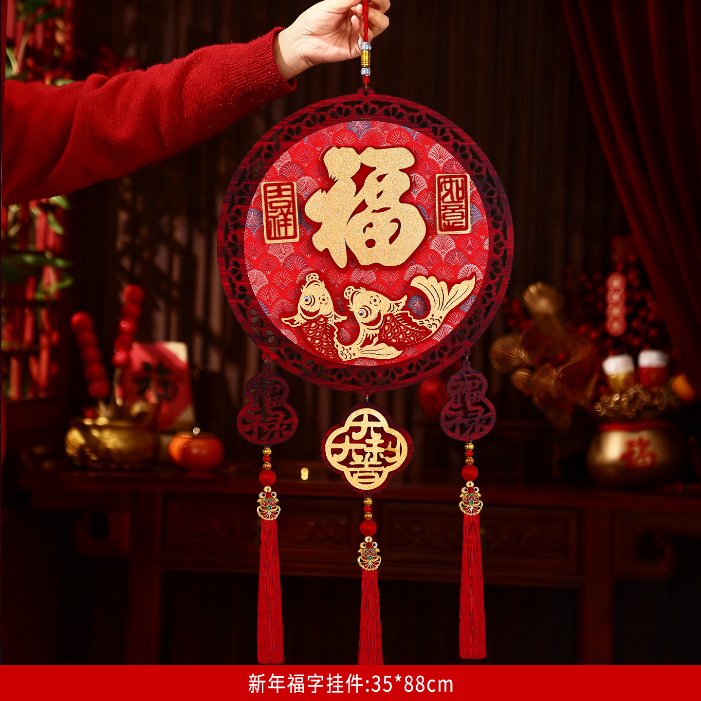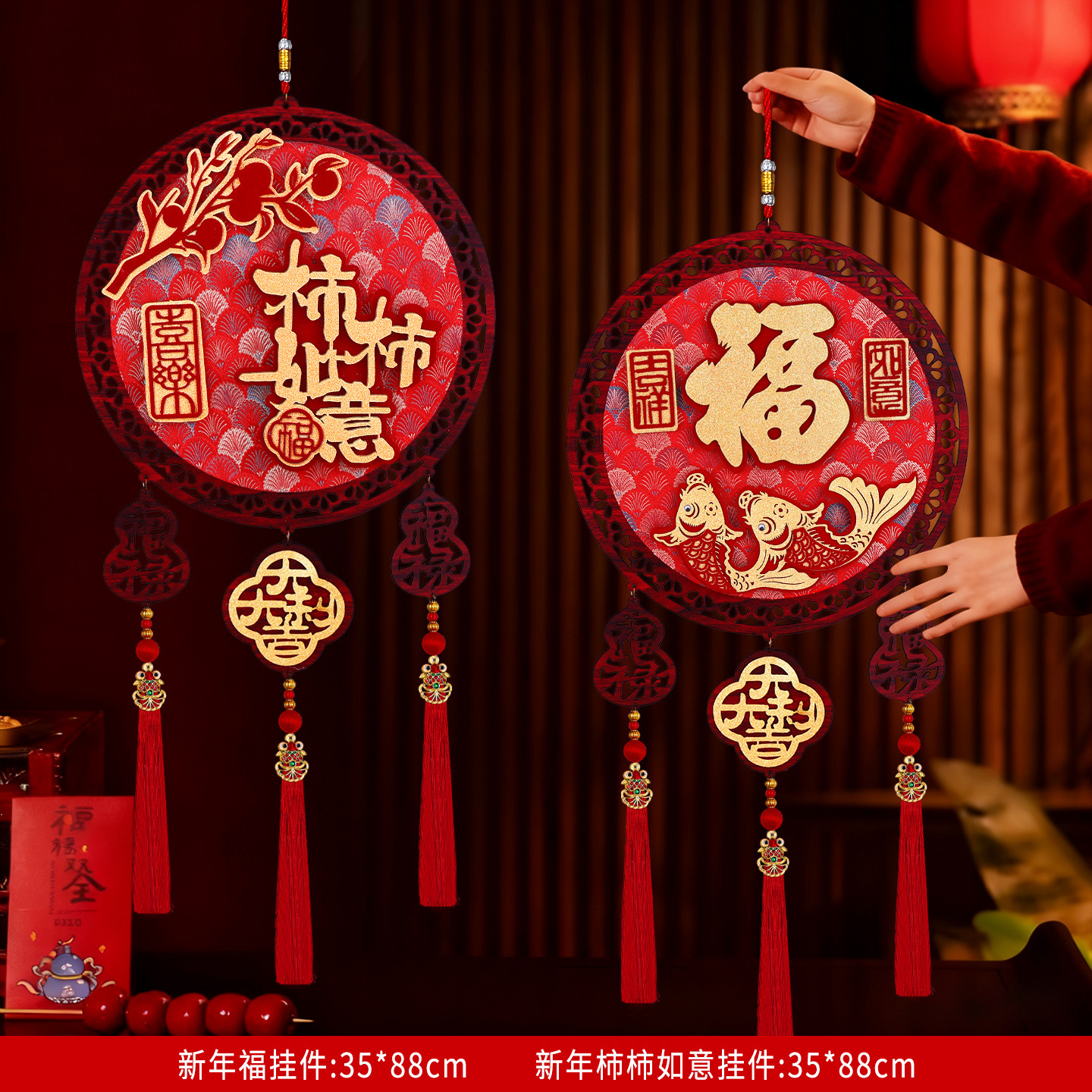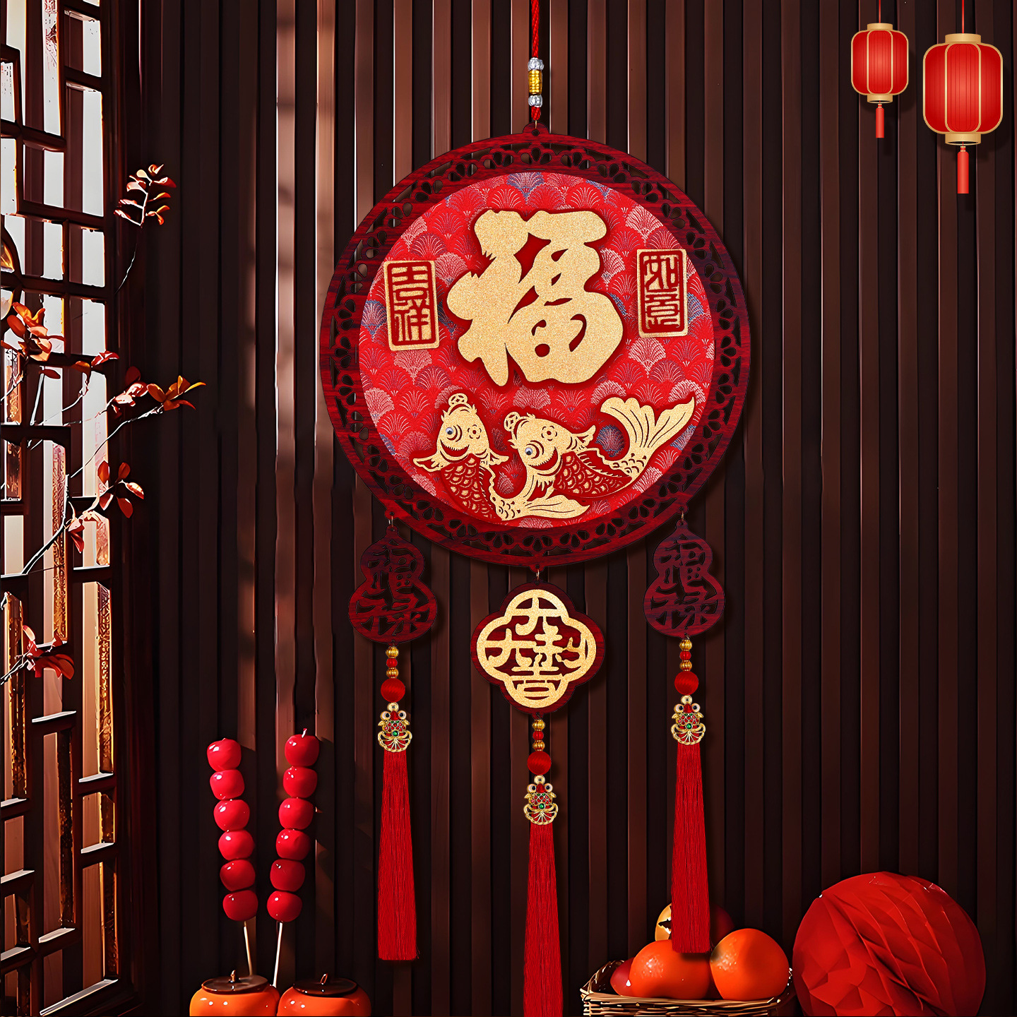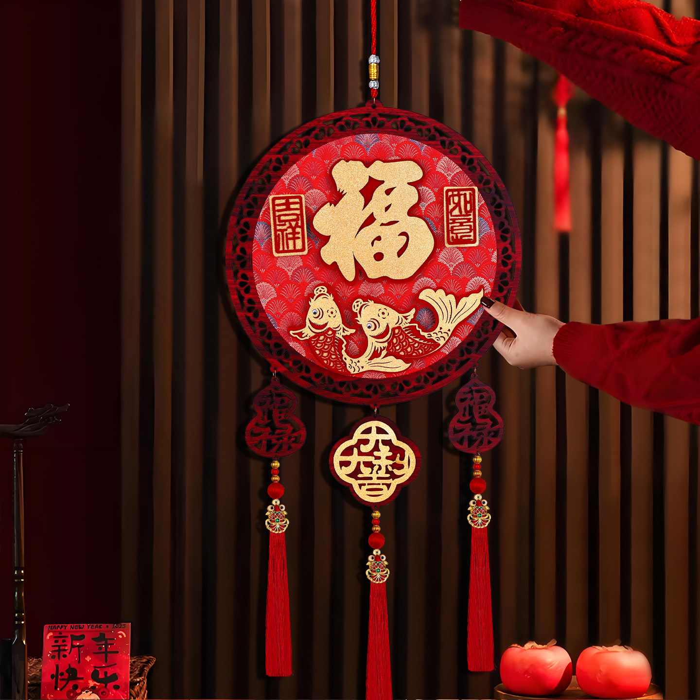 2026马年圆形福字木挂立体挂饰客厅玄关春节过年氛围装饰用品喜庆