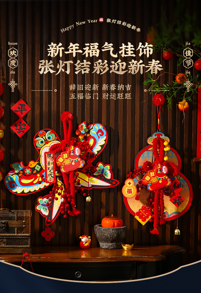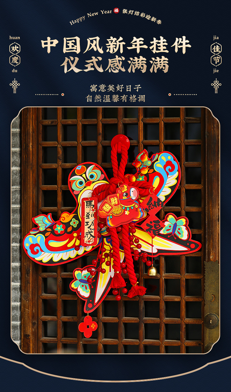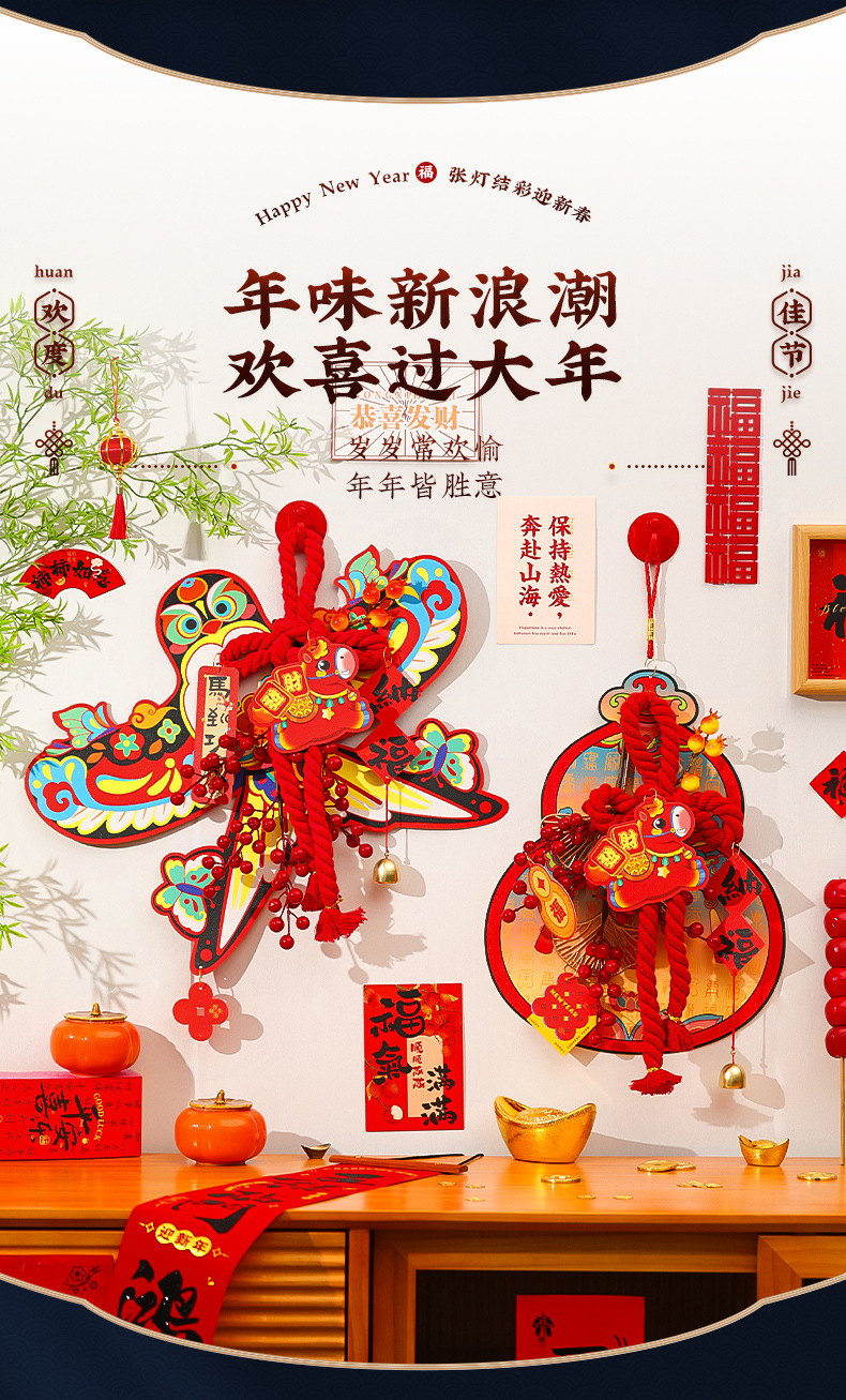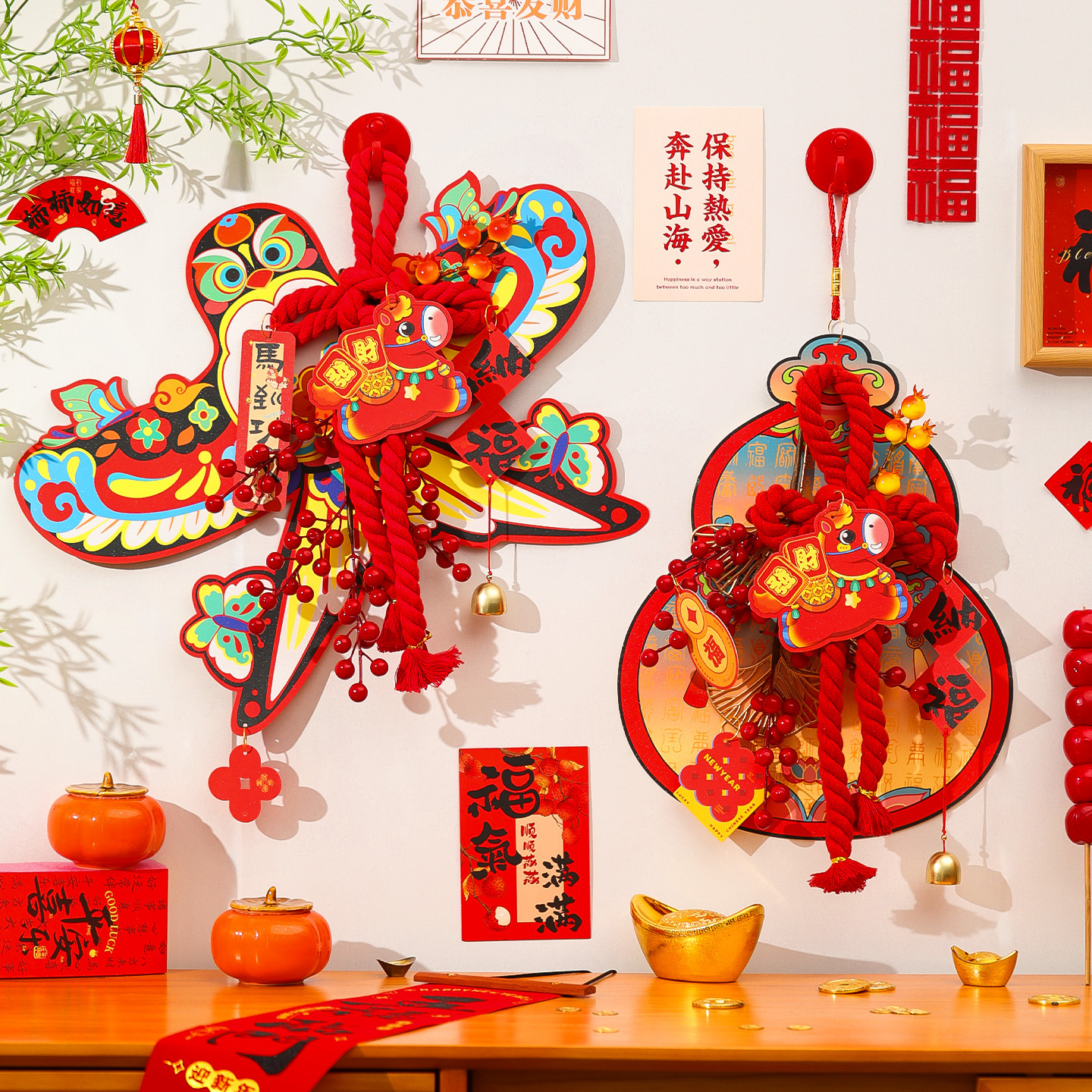 2026新款马年纸鸢挂件春节过年入户门万字结喜庆挂饰客厅氛围布置