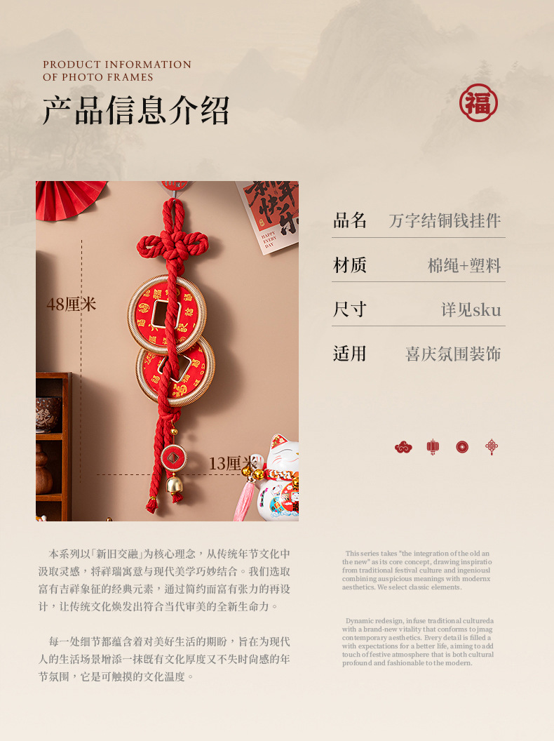 ✅2026新年装饰挂件马年春节客厅喜庆万字结铜钱挂饰玄关入户门挂