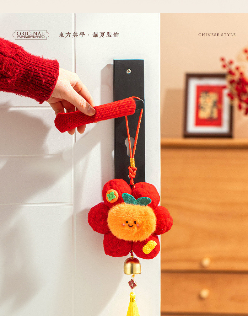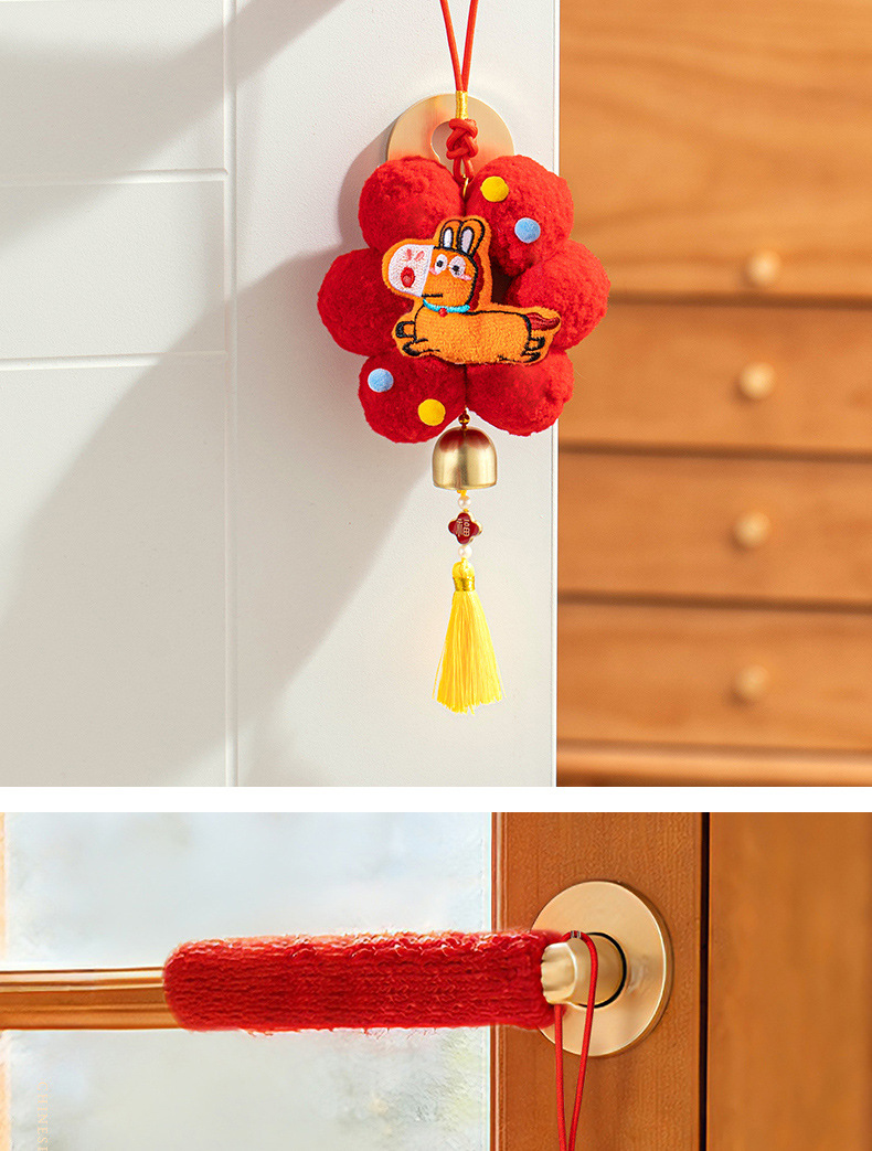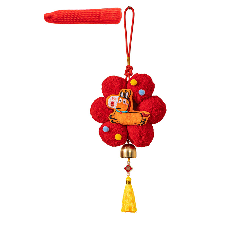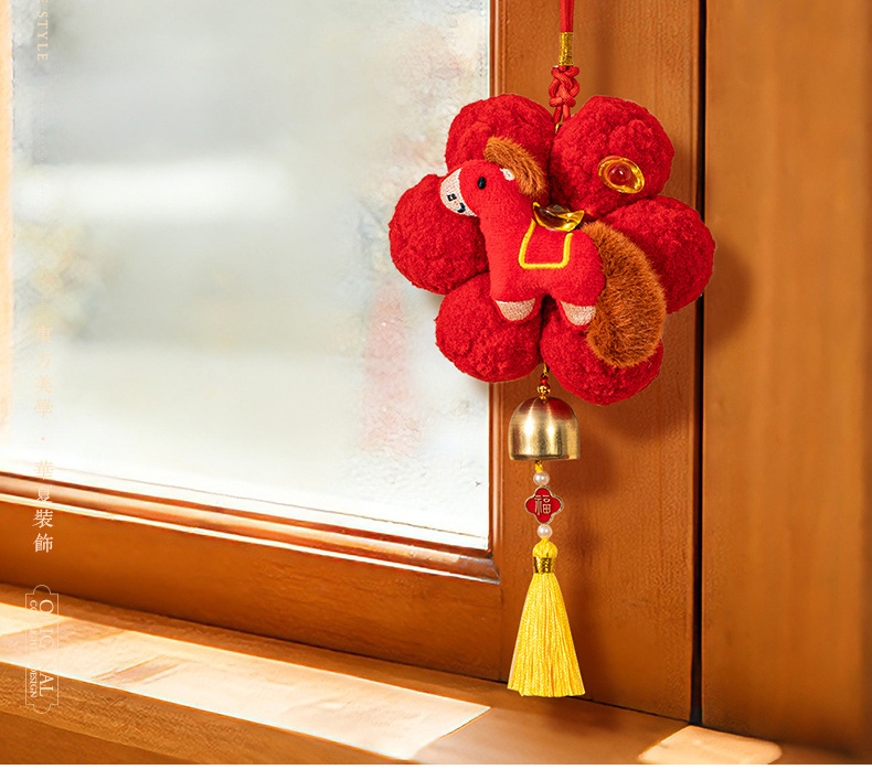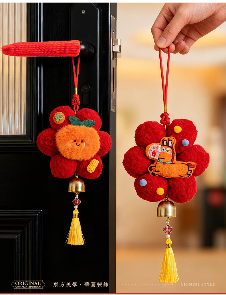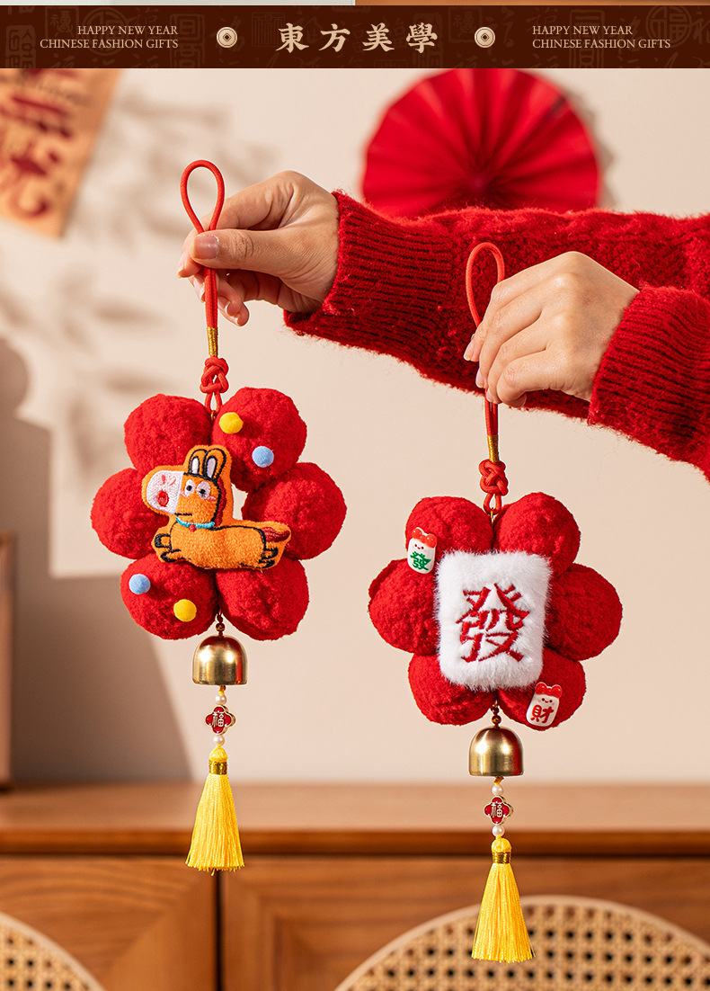新年挂件创意小红花装饰品2026新款马年春节毛球喜庆门把手小挂饰