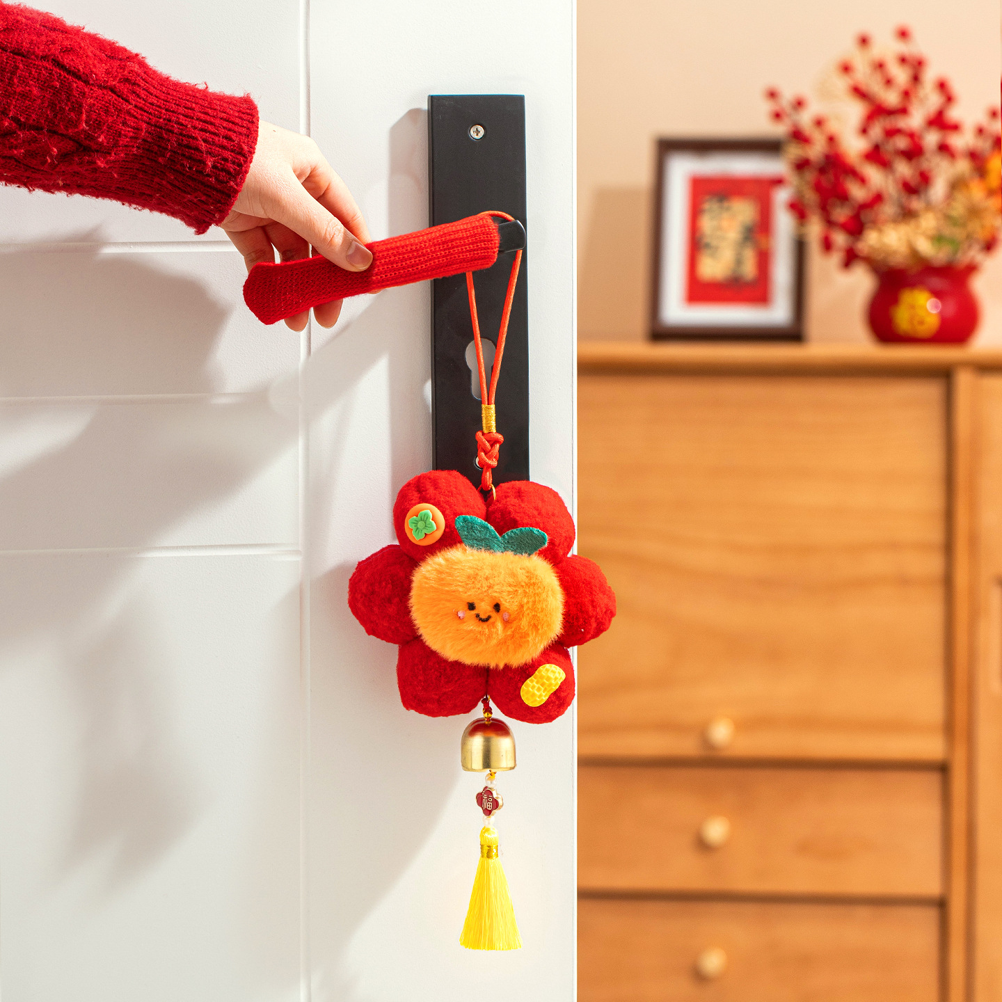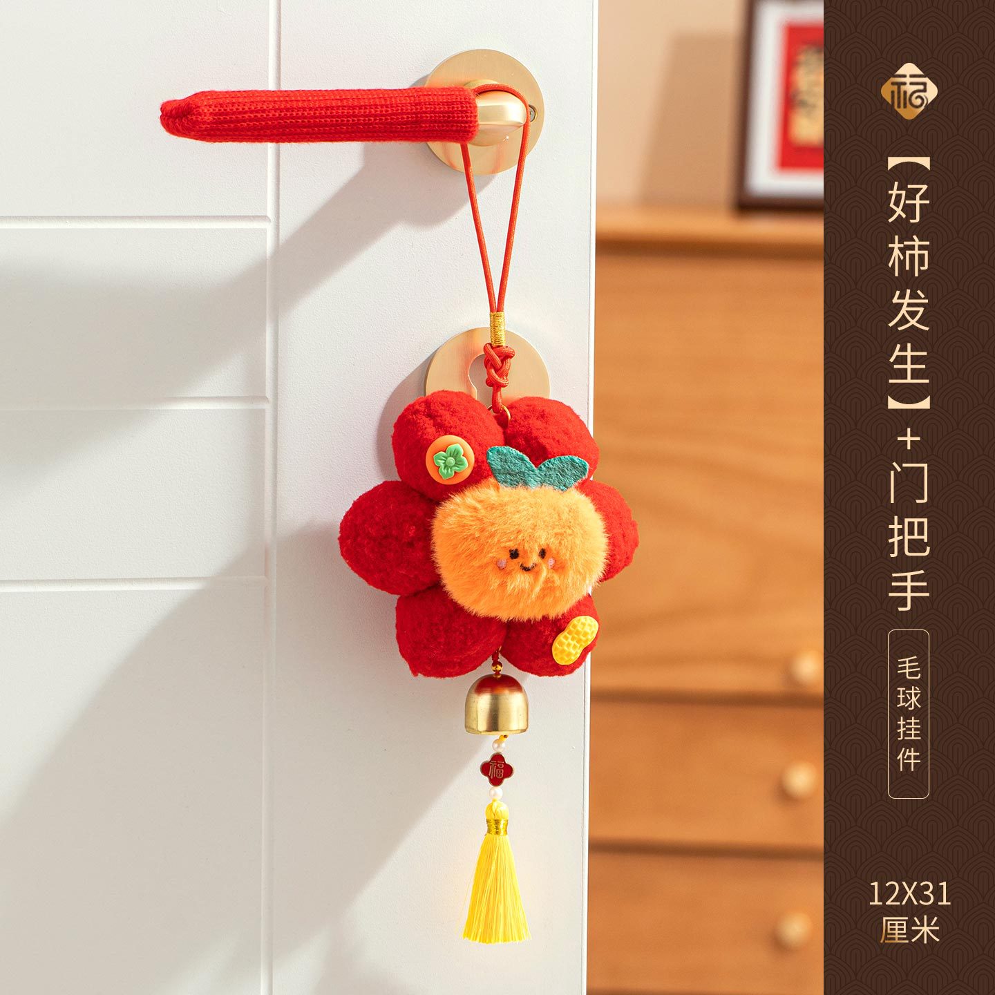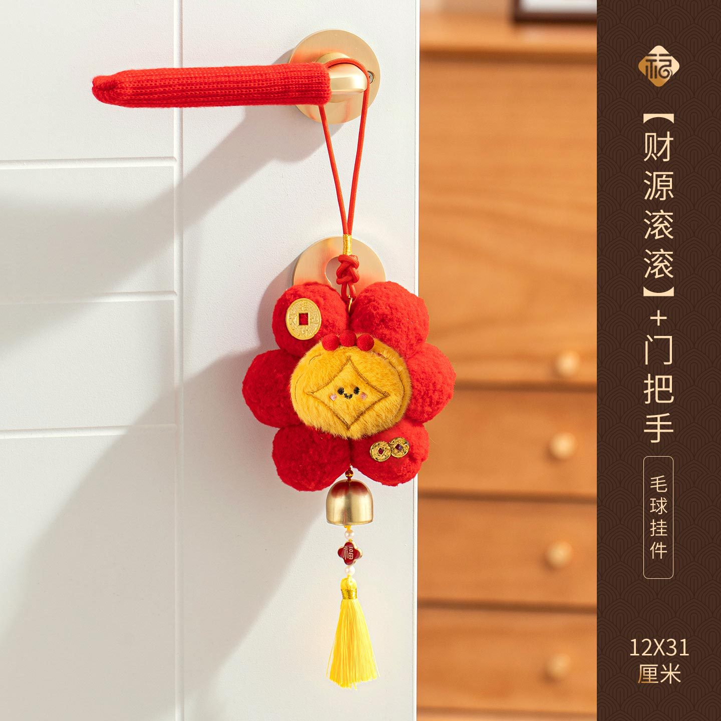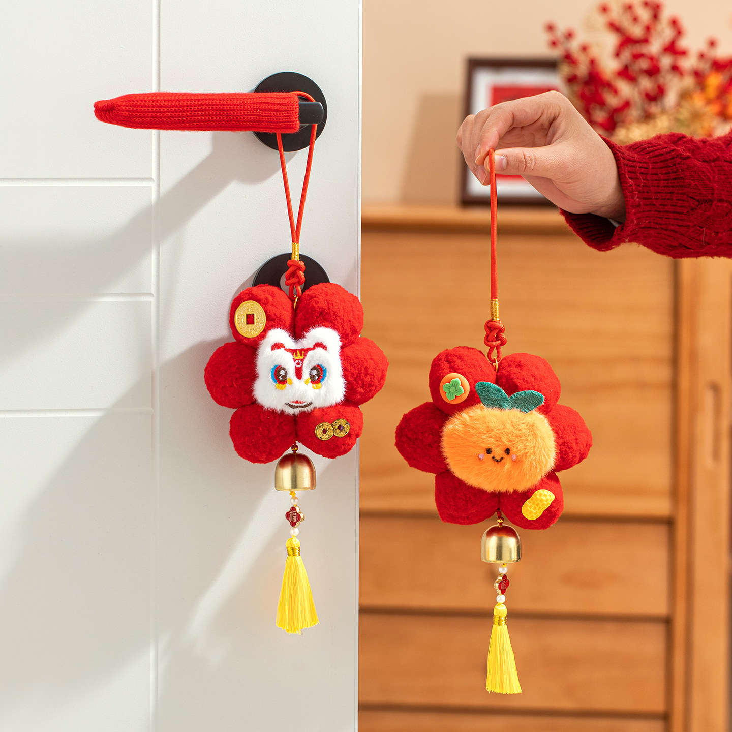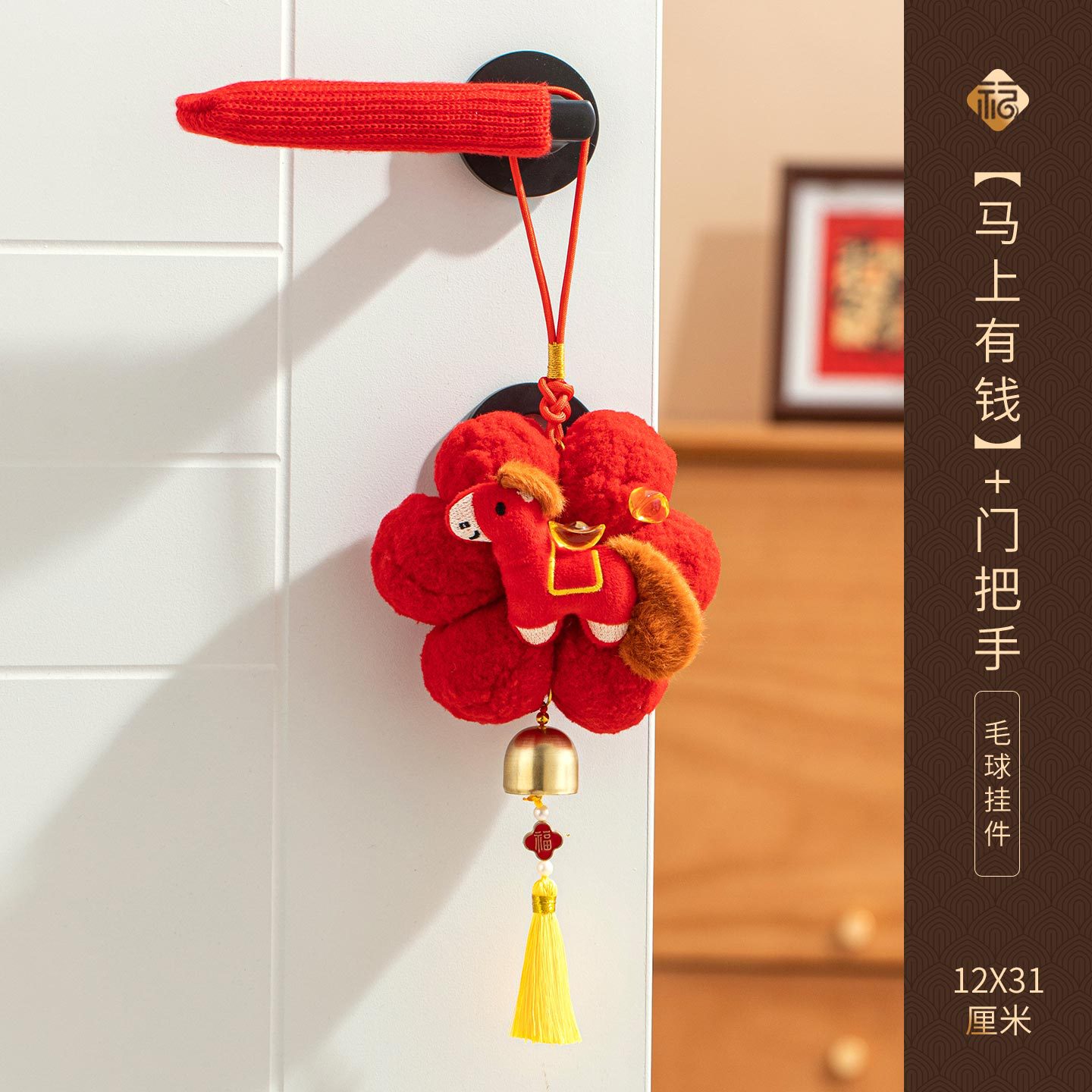 新年挂件创意小红花装饰品2026新款马年春节毛球喜庆门把手小挂饰