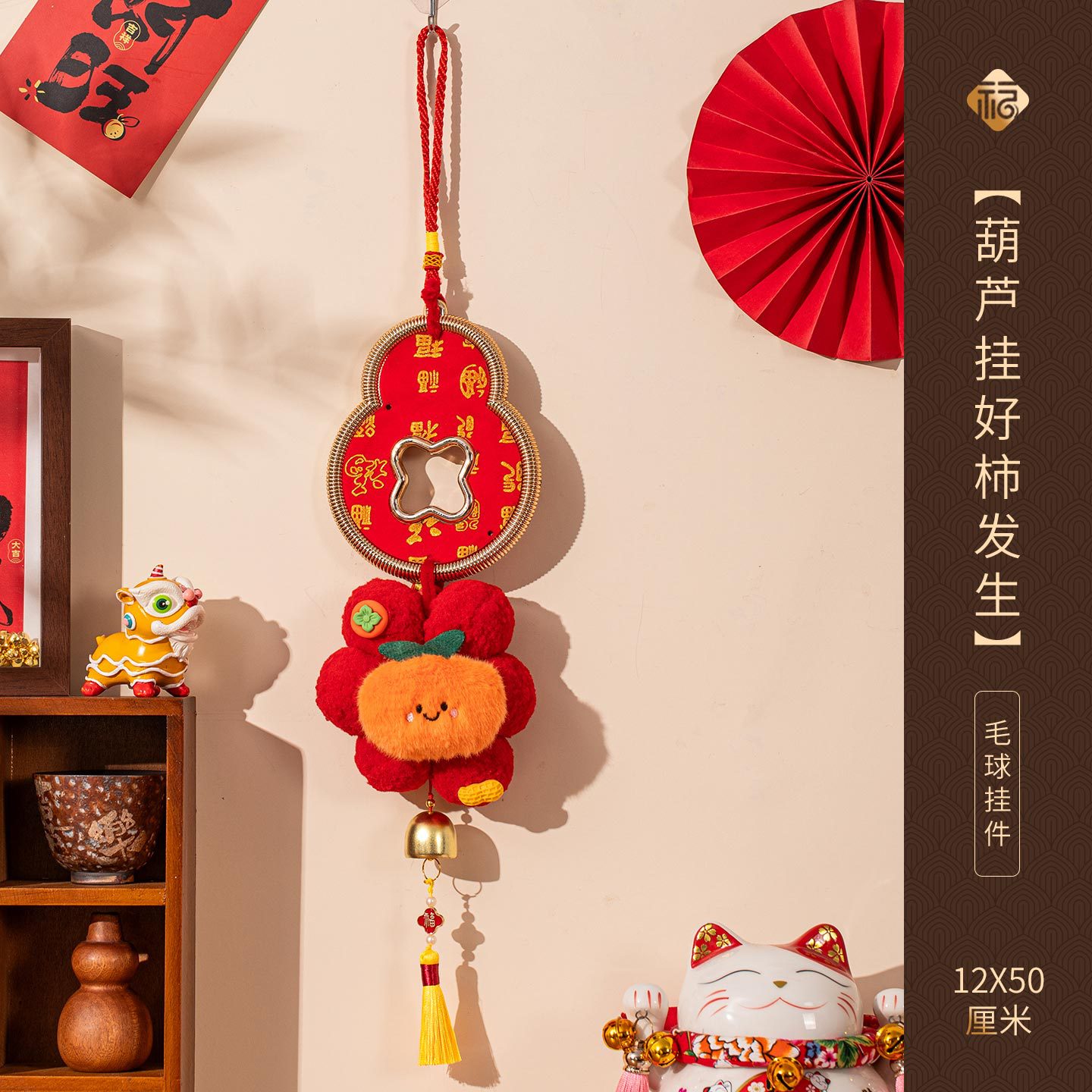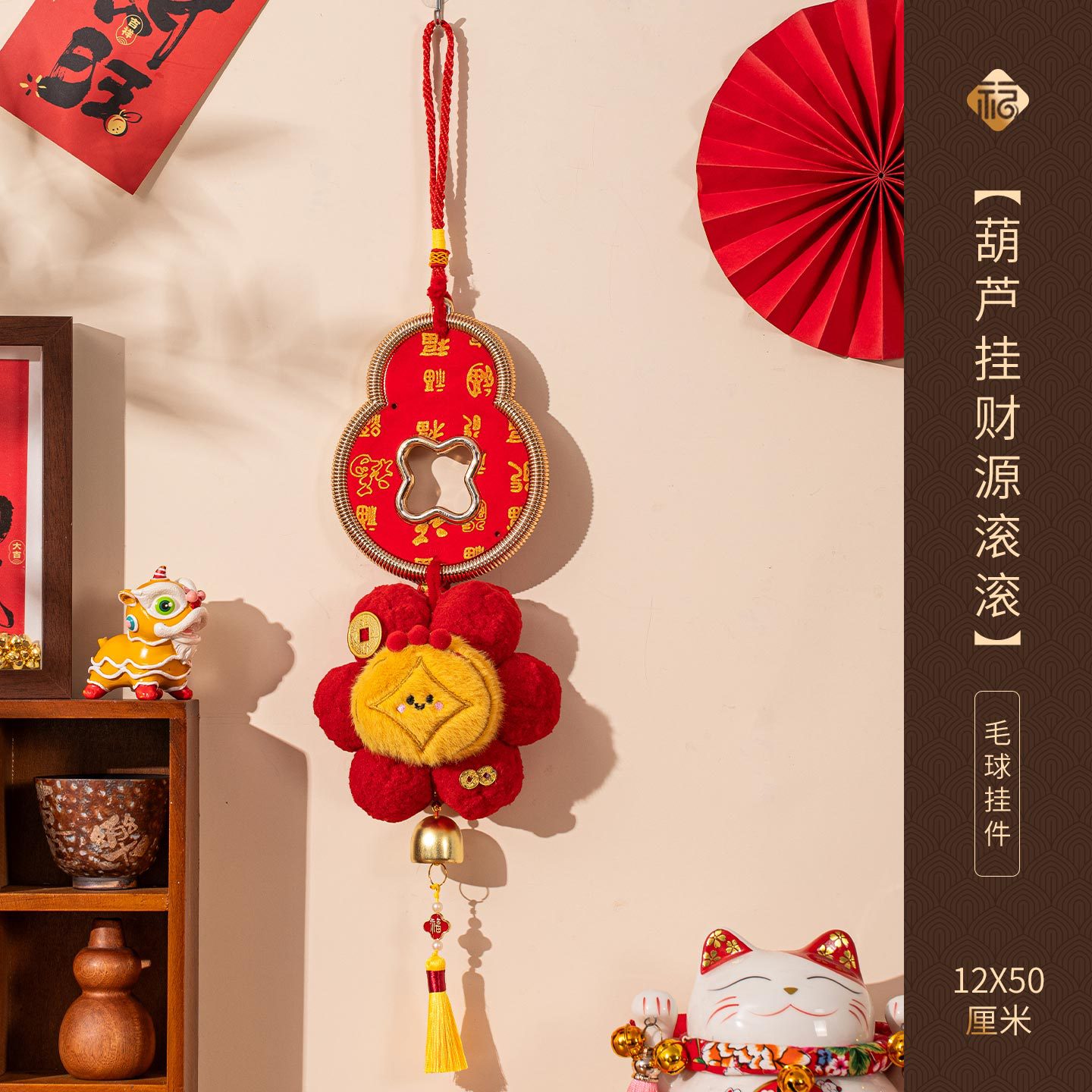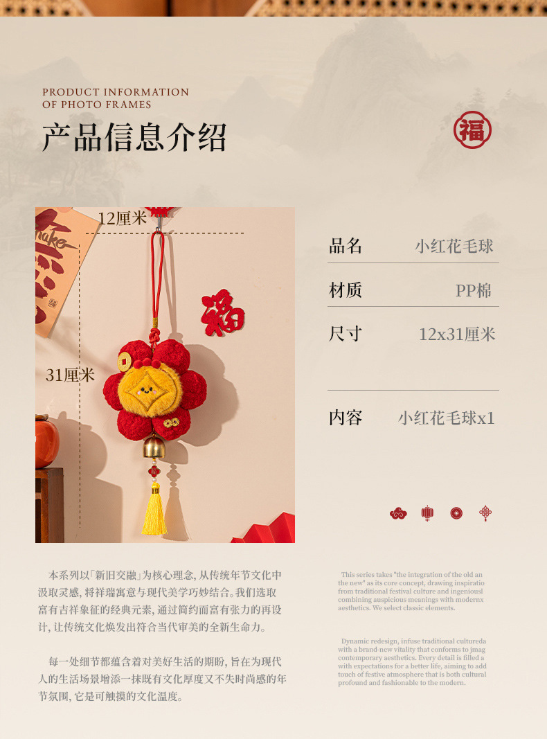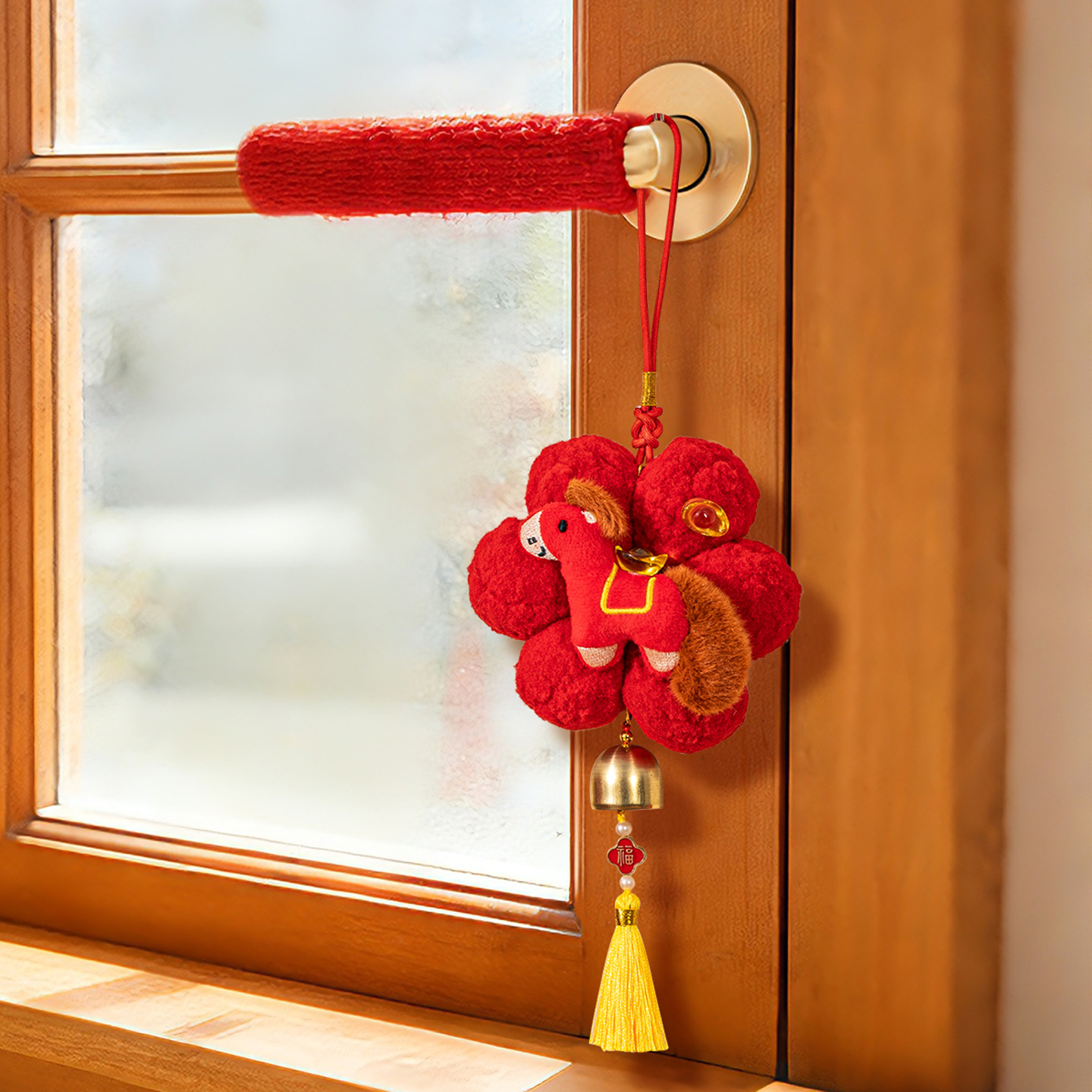 新年挂件创意小红花装饰品2026新款马年春节毛球喜庆门把手小挂饰