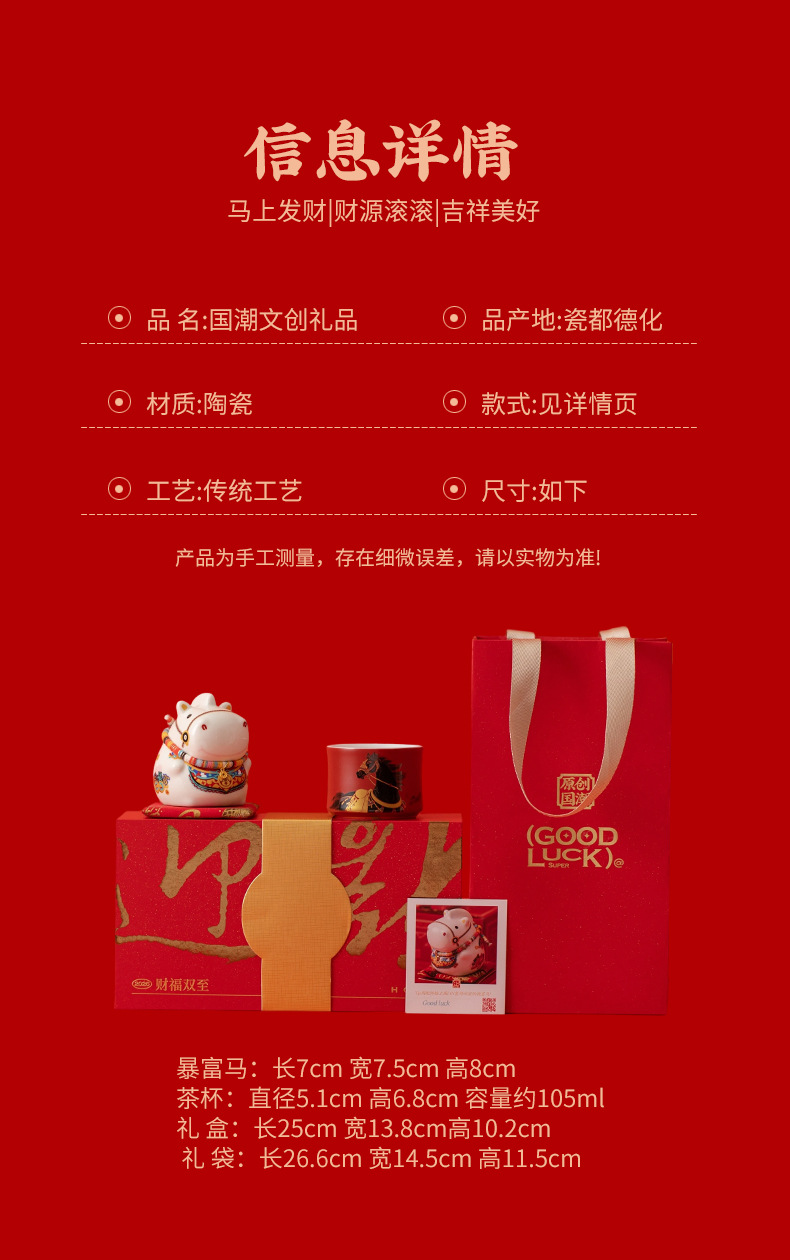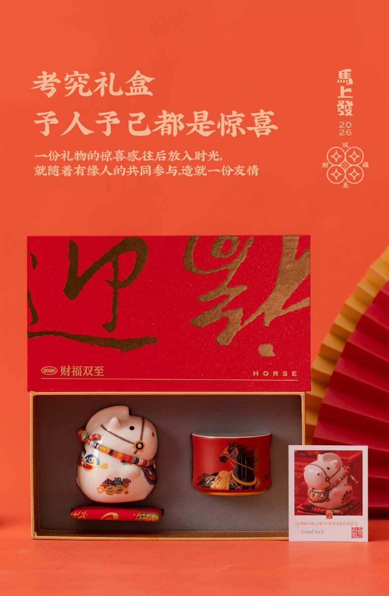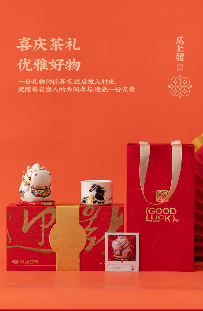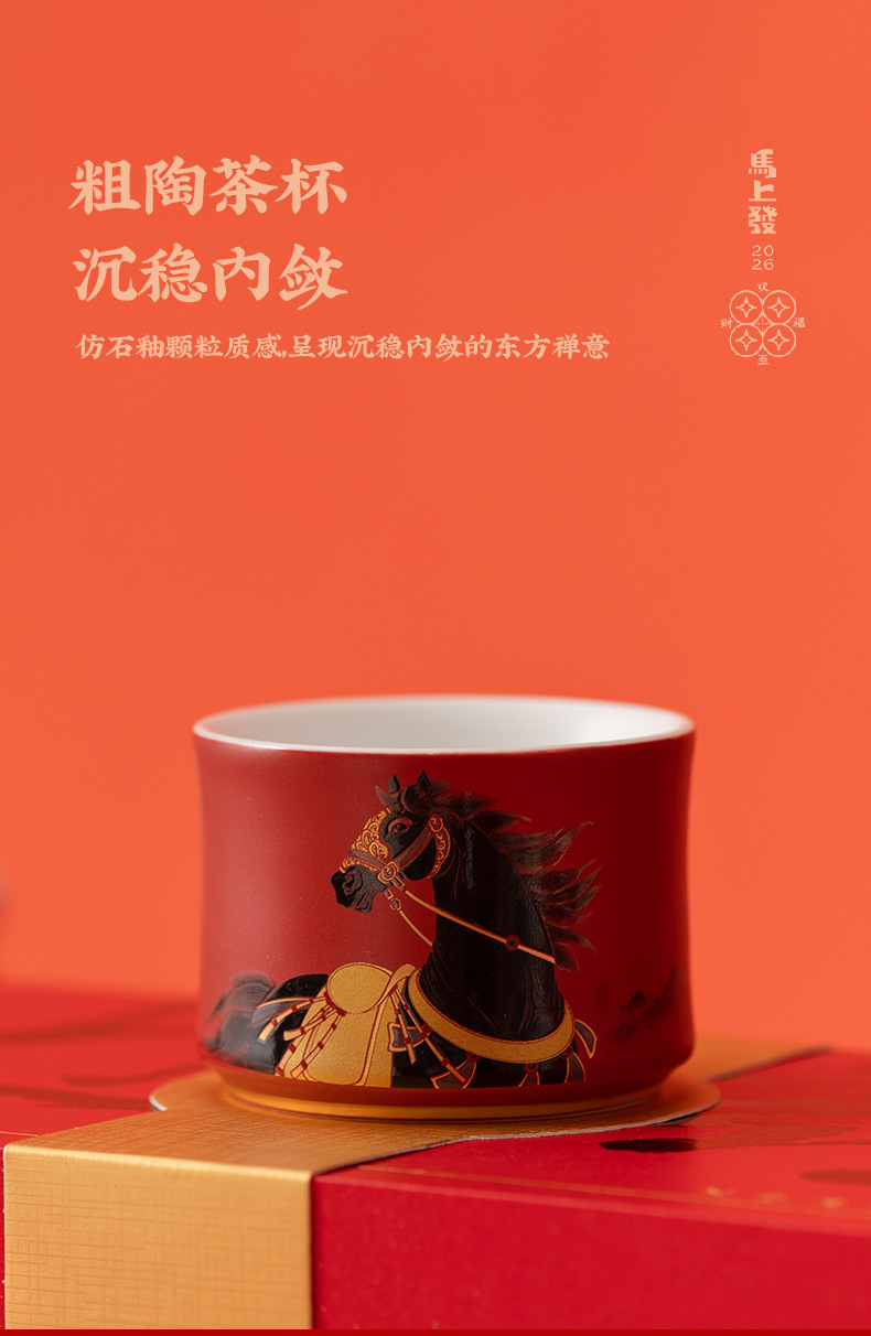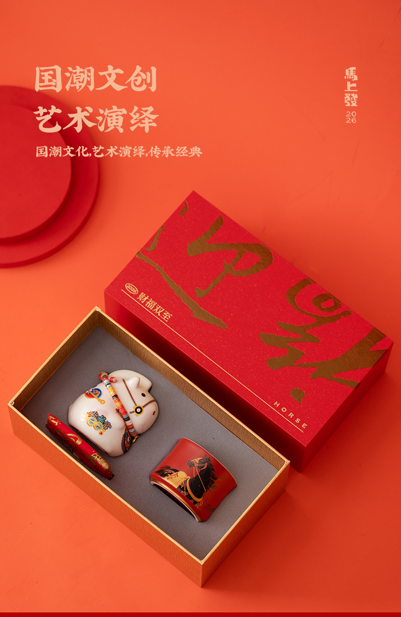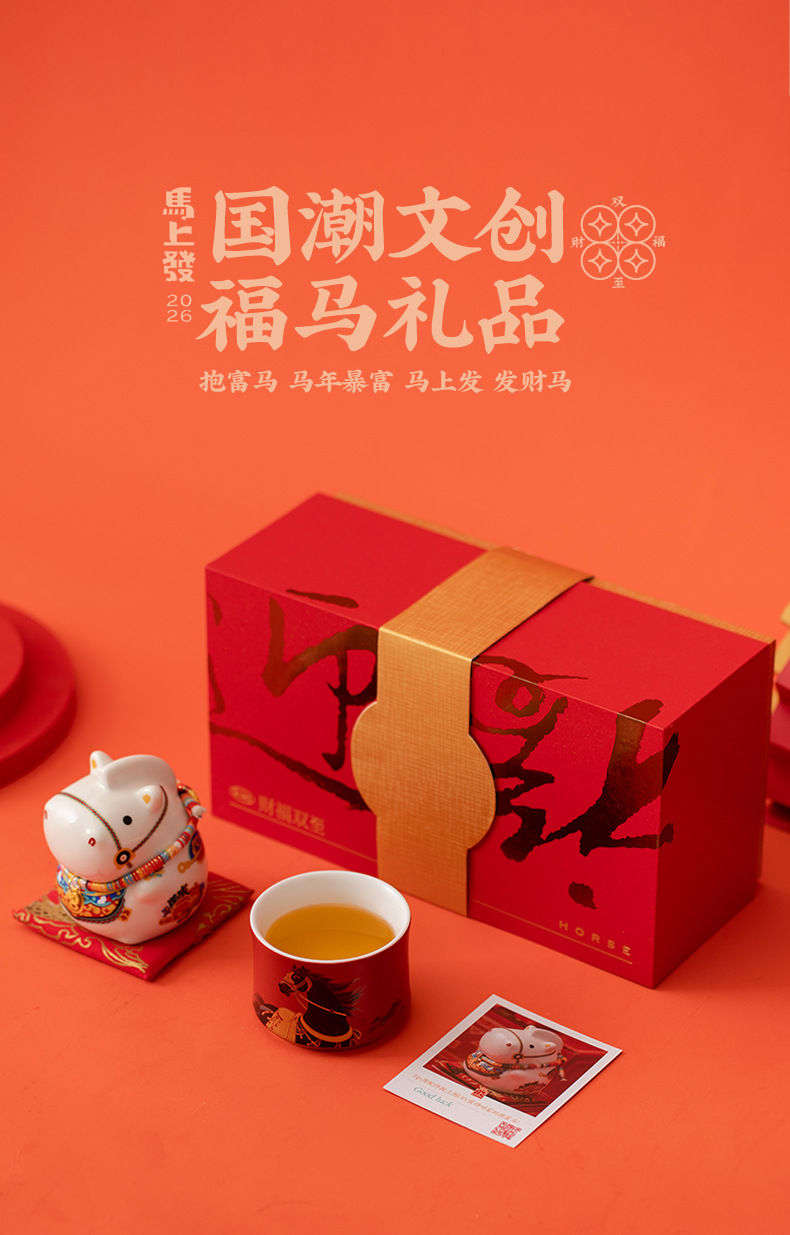 马年文创茶杯主人杯福马摆件礼盒年会新年商务礼品送客户伴手礼物