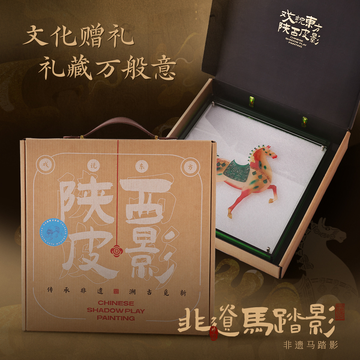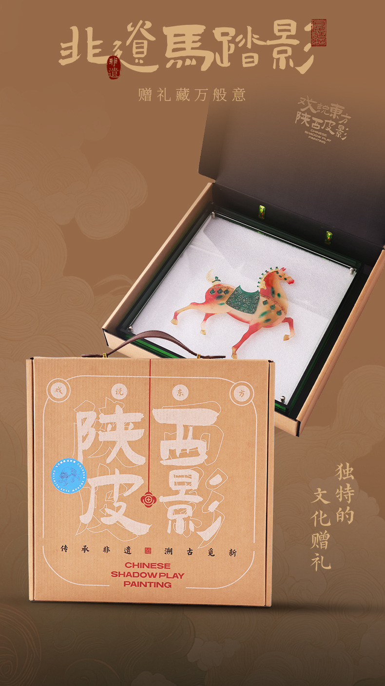 马年年会商务伴手礼中国风唐马陕西高端皮影摆件中国特色礼品送老