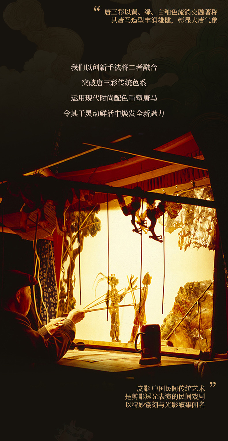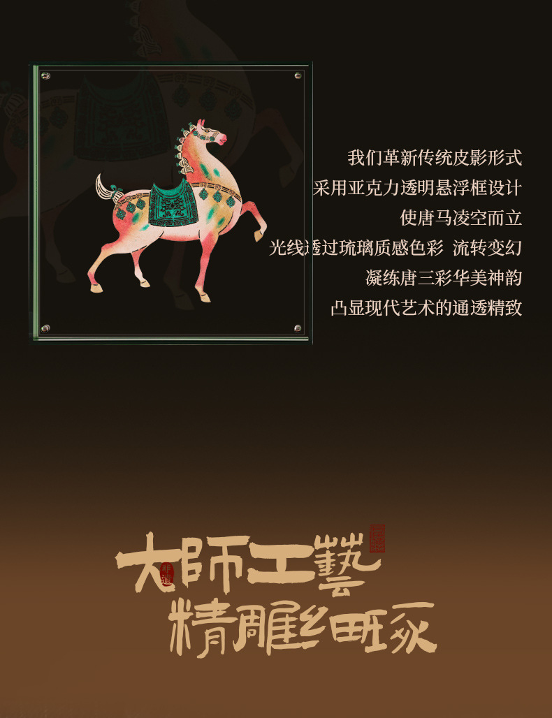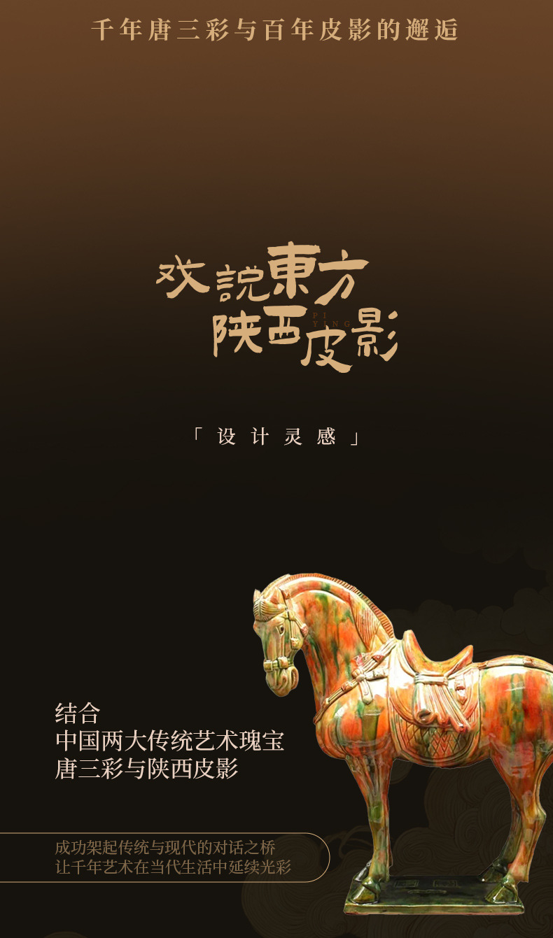 | shannxi shadow play-tricolor tangma [legend of light and shadow is unique]](陕西皮影-三彩唐马【光影传奇 非遗双绝】) | USD $0.0 | 89 piece available |