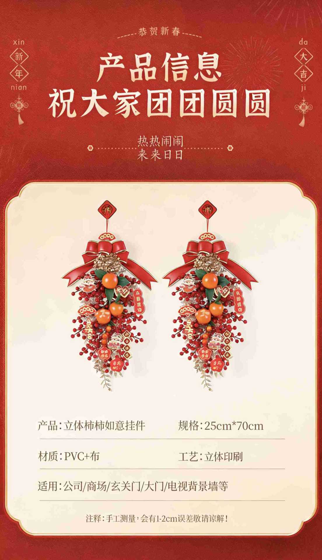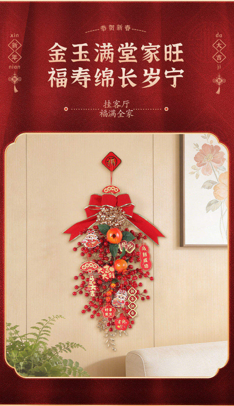 2026马年装饰挂串新年场景布置挂件过年装扮发财红果挂饰喜庆用品