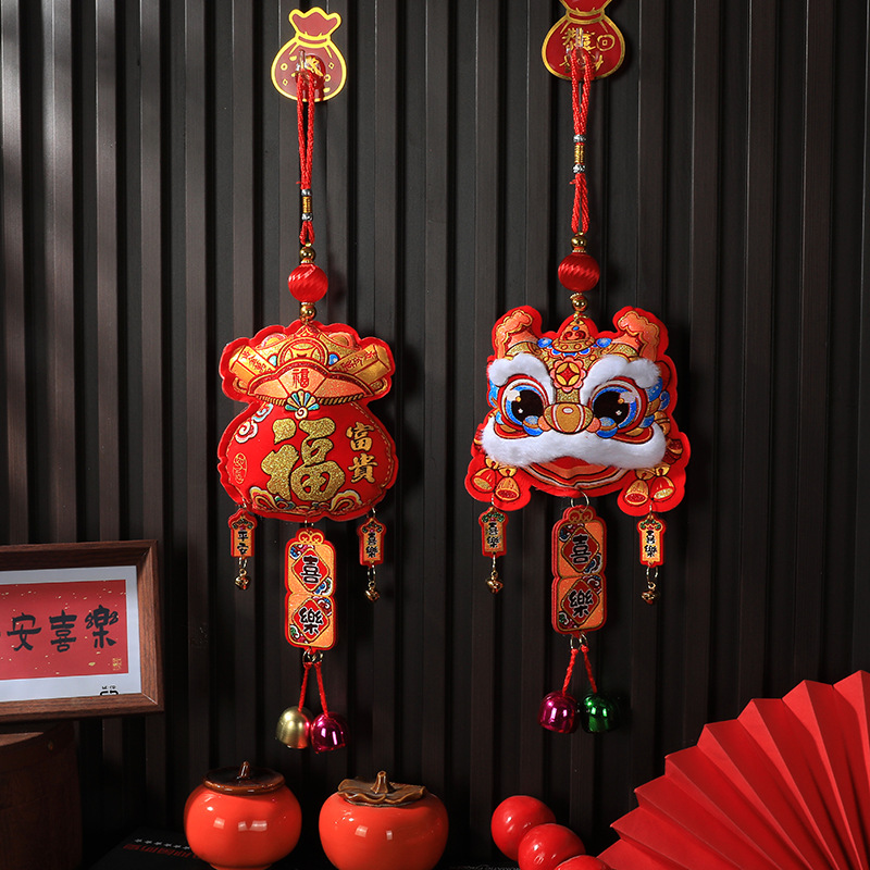 马年2026新年挂饰客厅福包铃铛过年装饰醒狮春节挂件喜庆场景布置