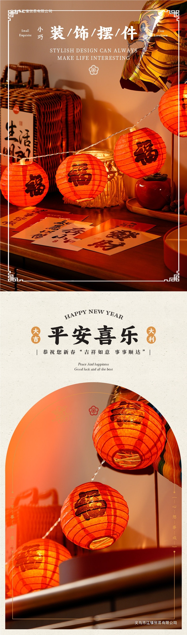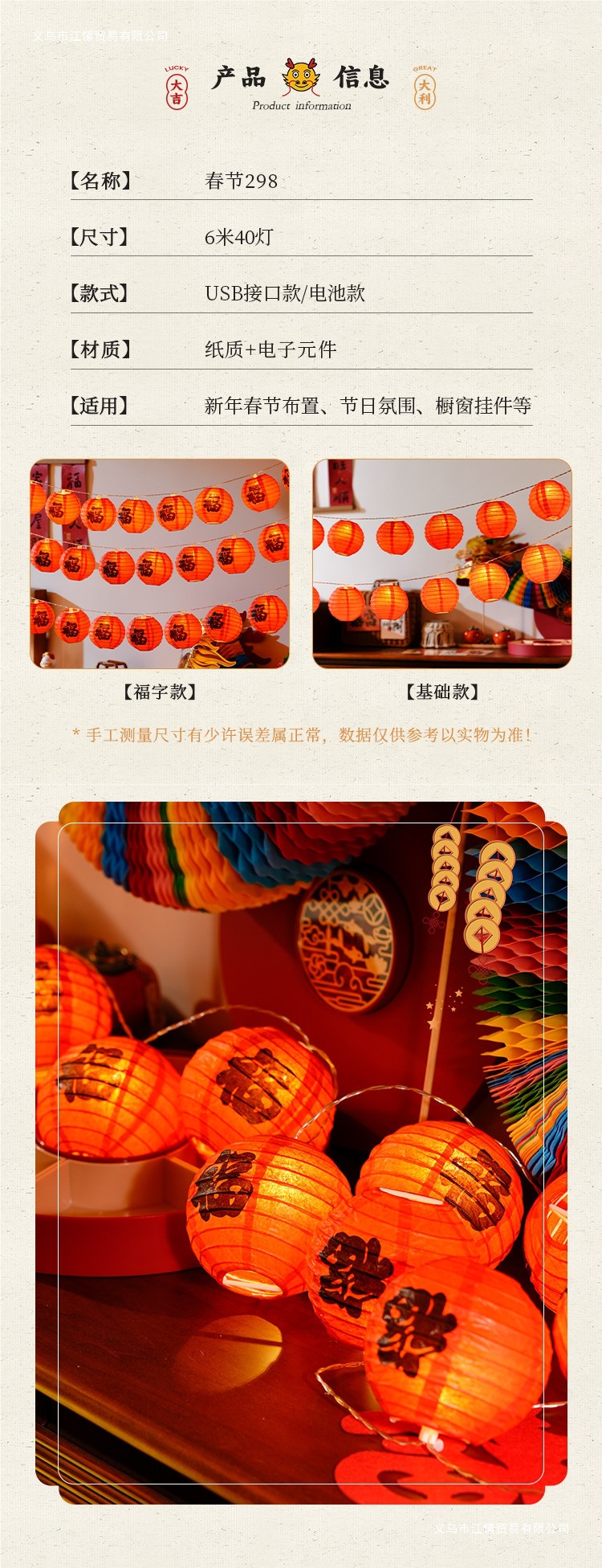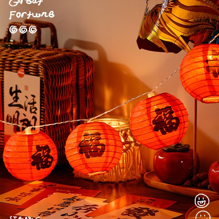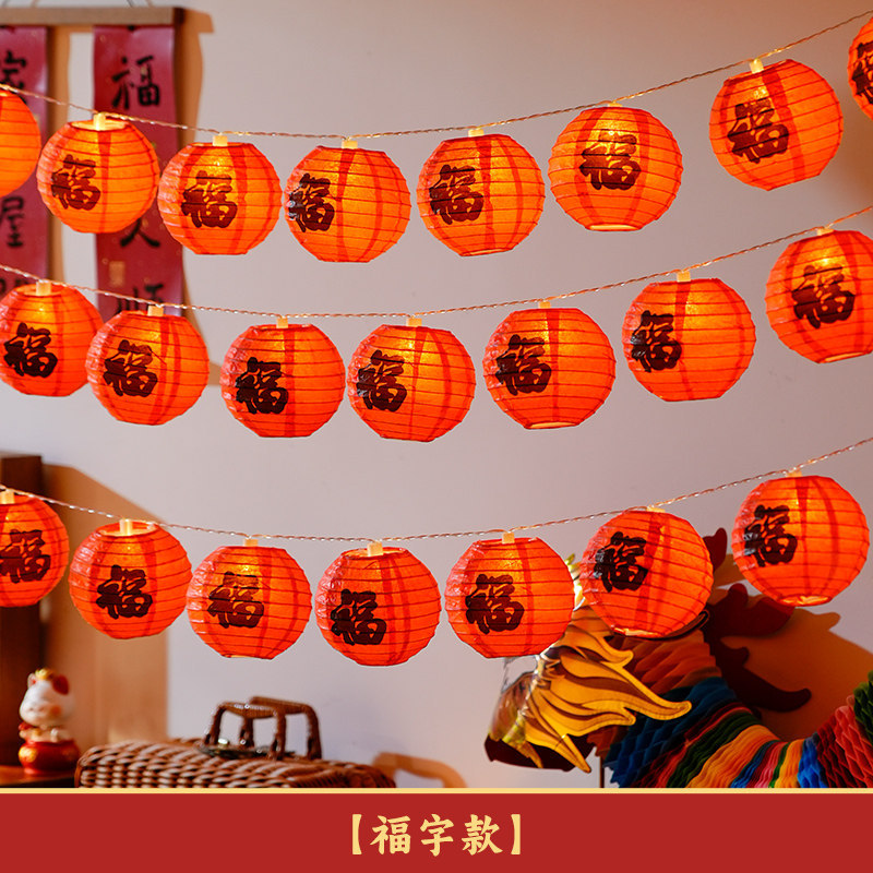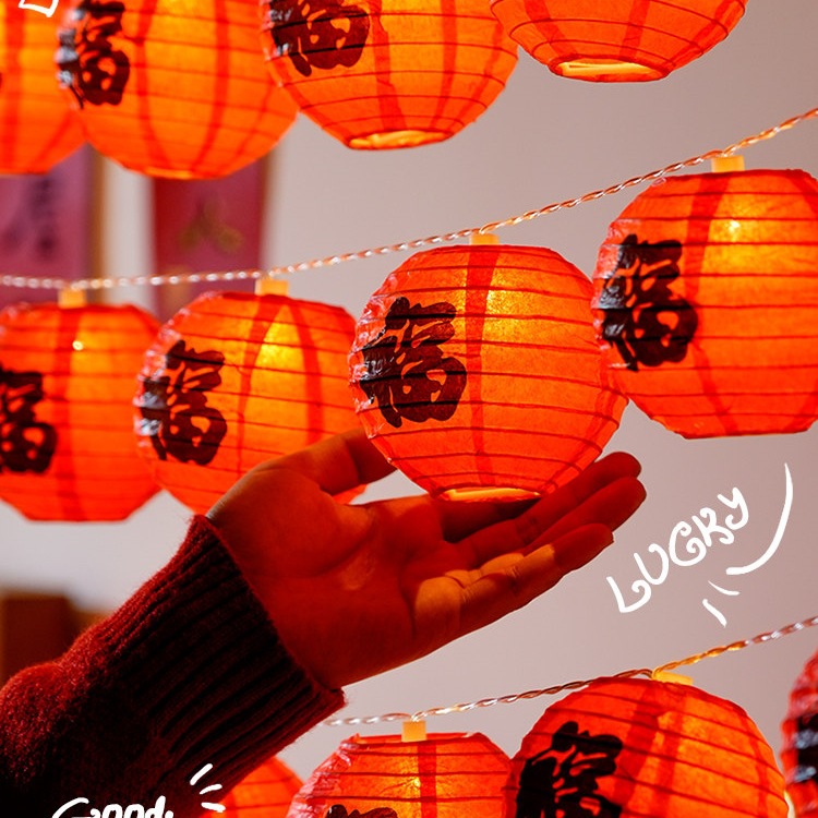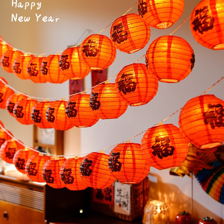 2026新款春节福字纸小红灯笼串挂饰新年马年过年装饰阳台喜庆布置