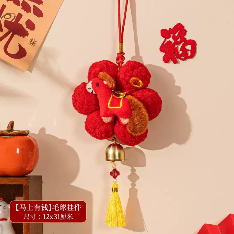 2026马年新年装饰挂件新款毛绒客厅喜庆氛围布置春节入户门小挂饰