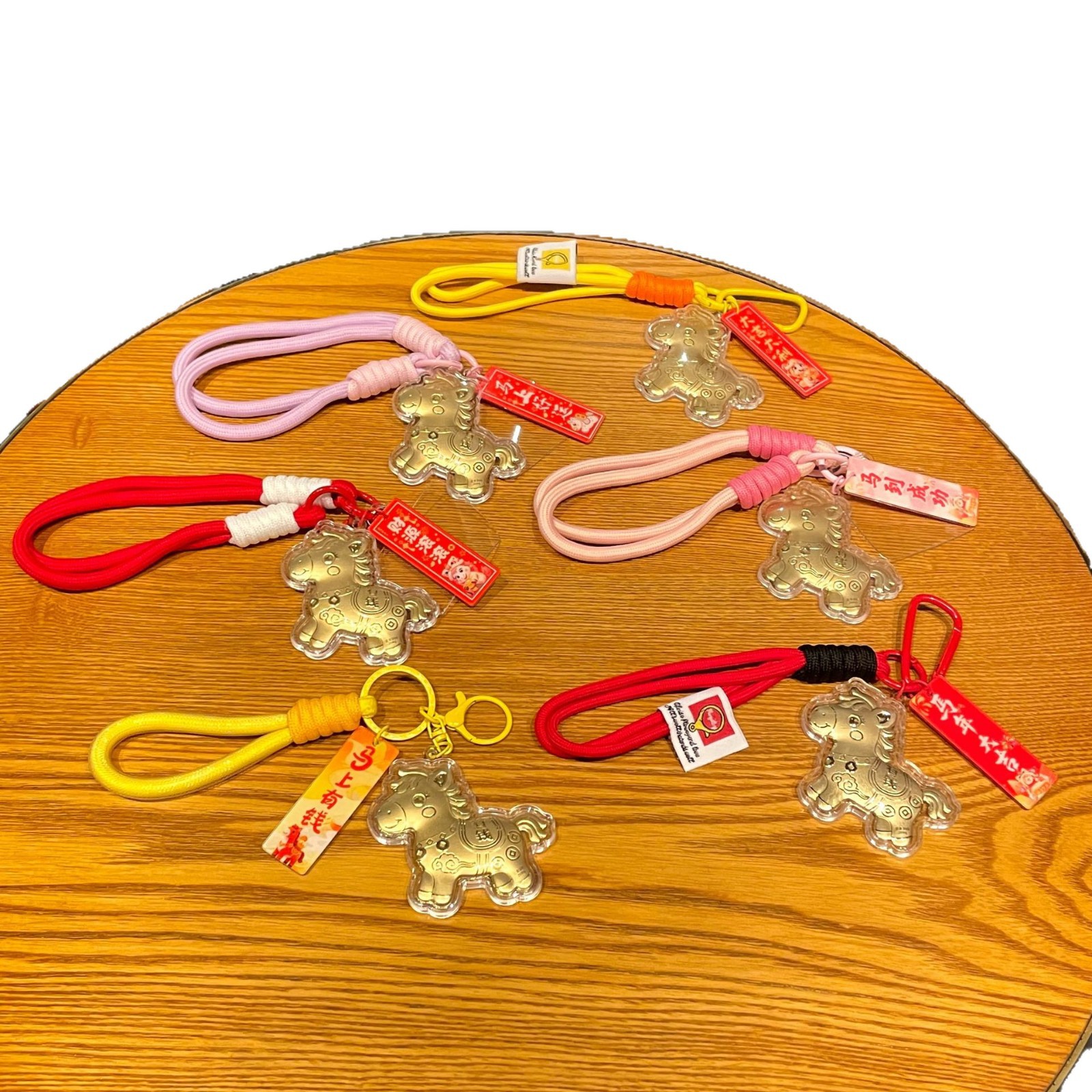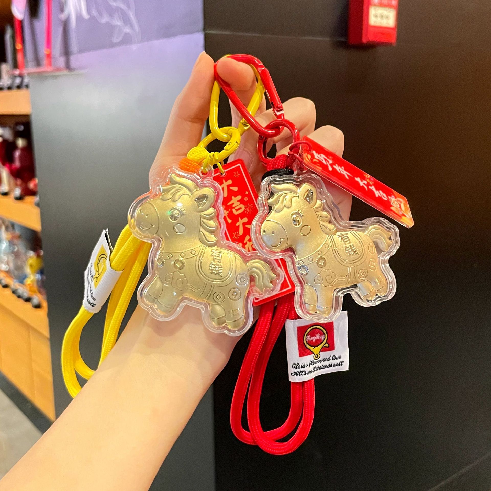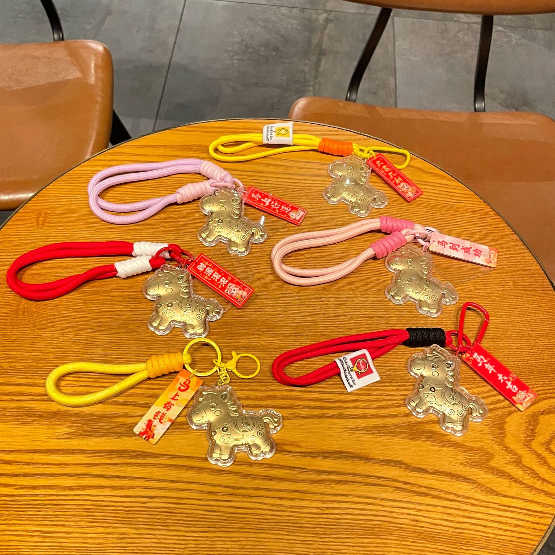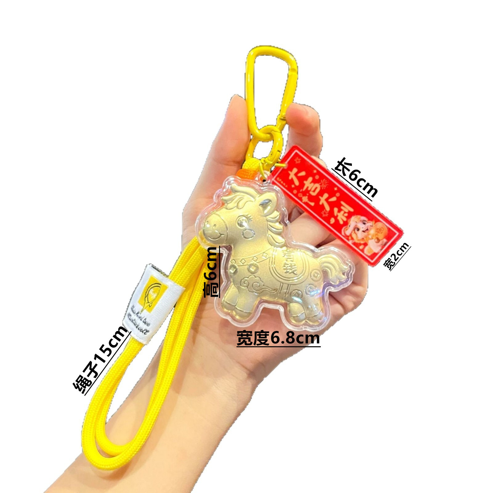 新年礼物金色塑箔马上有钱钥匙扣包包挂件马年精致祝福手机链挂绳