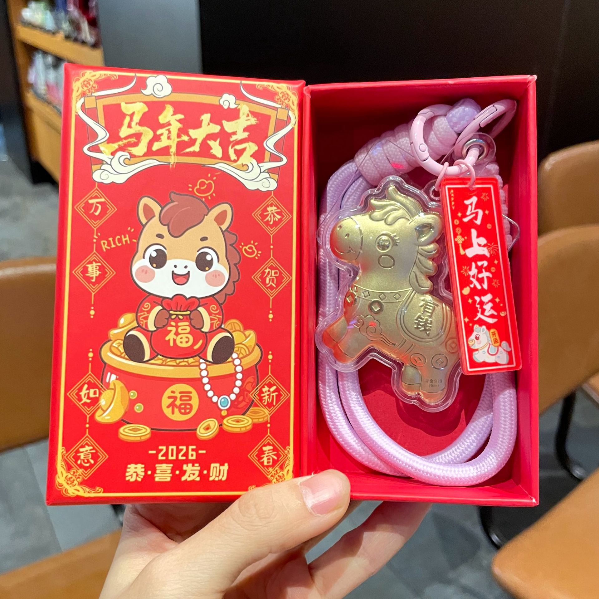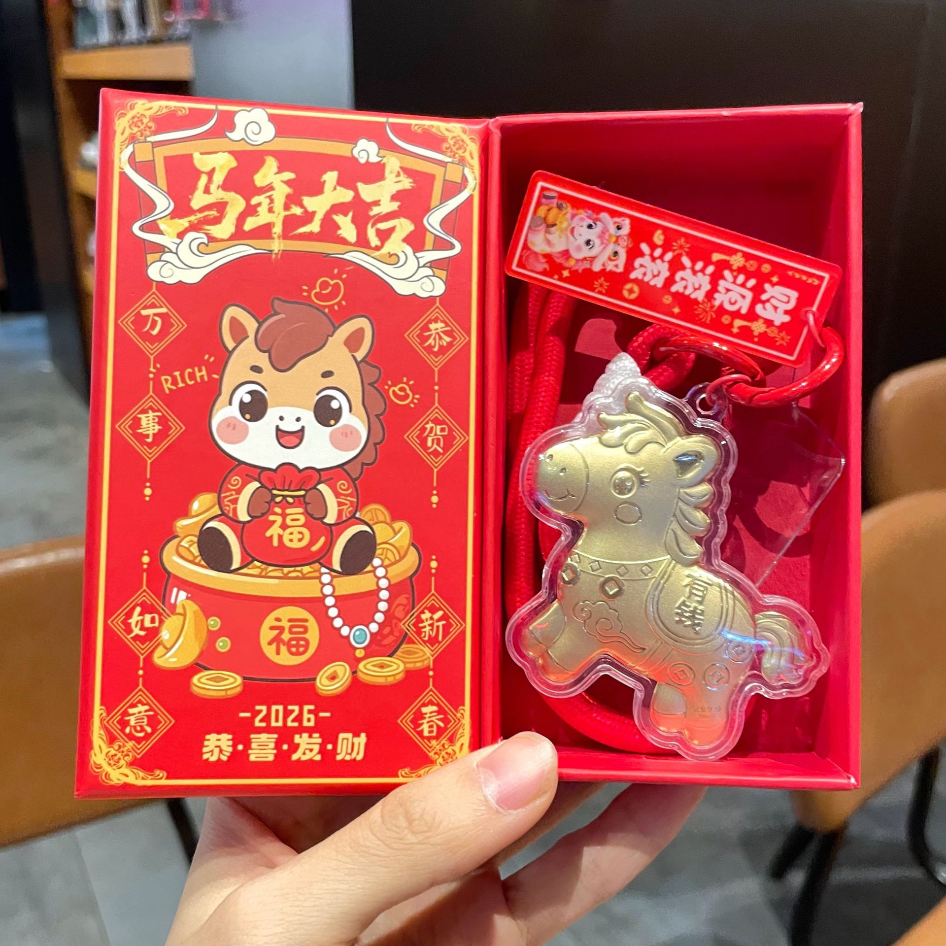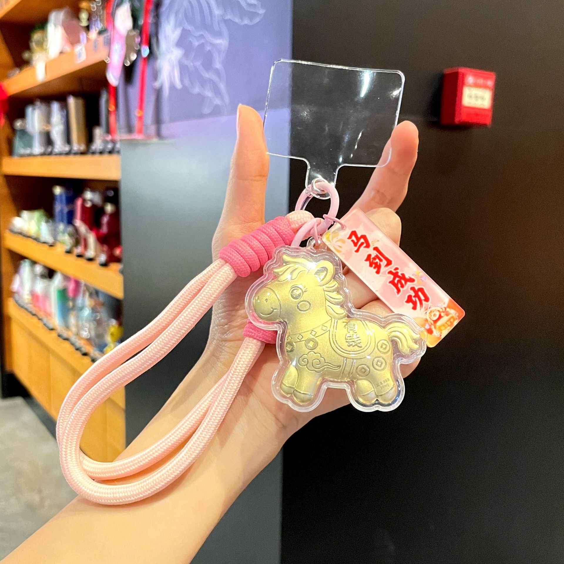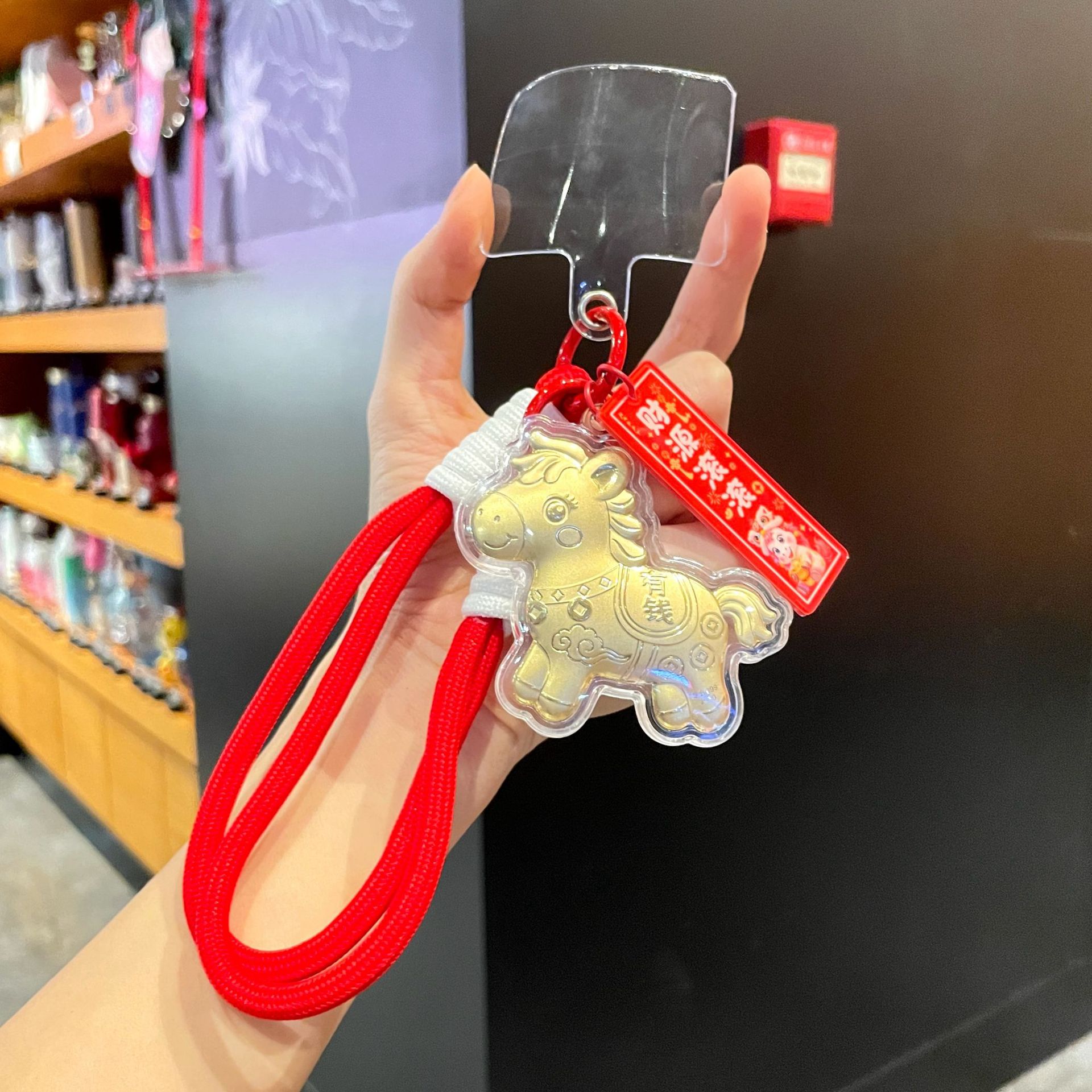 新年礼物金色塑箔马上有钱钥匙扣包包挂件马年精致祝福手机链挂绳