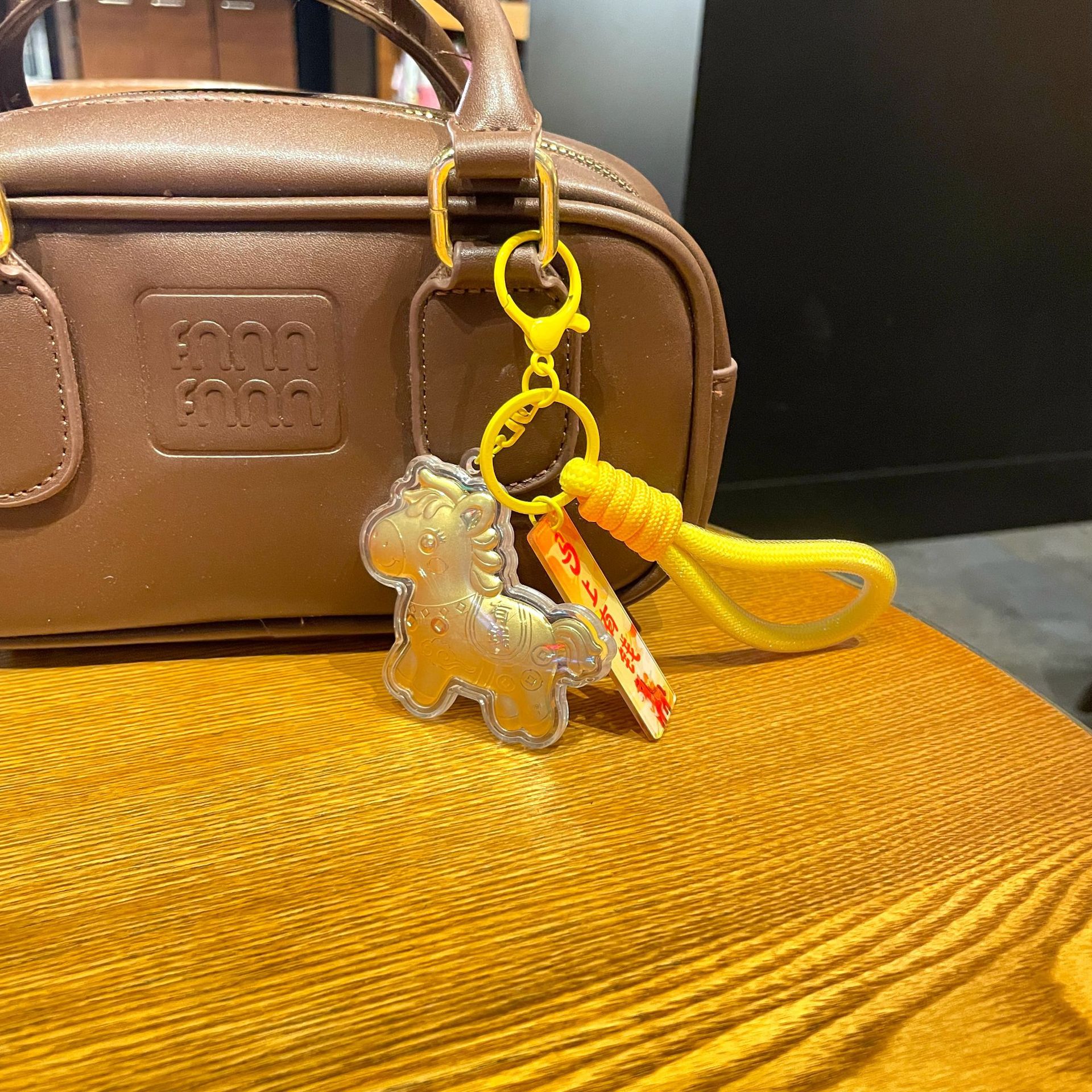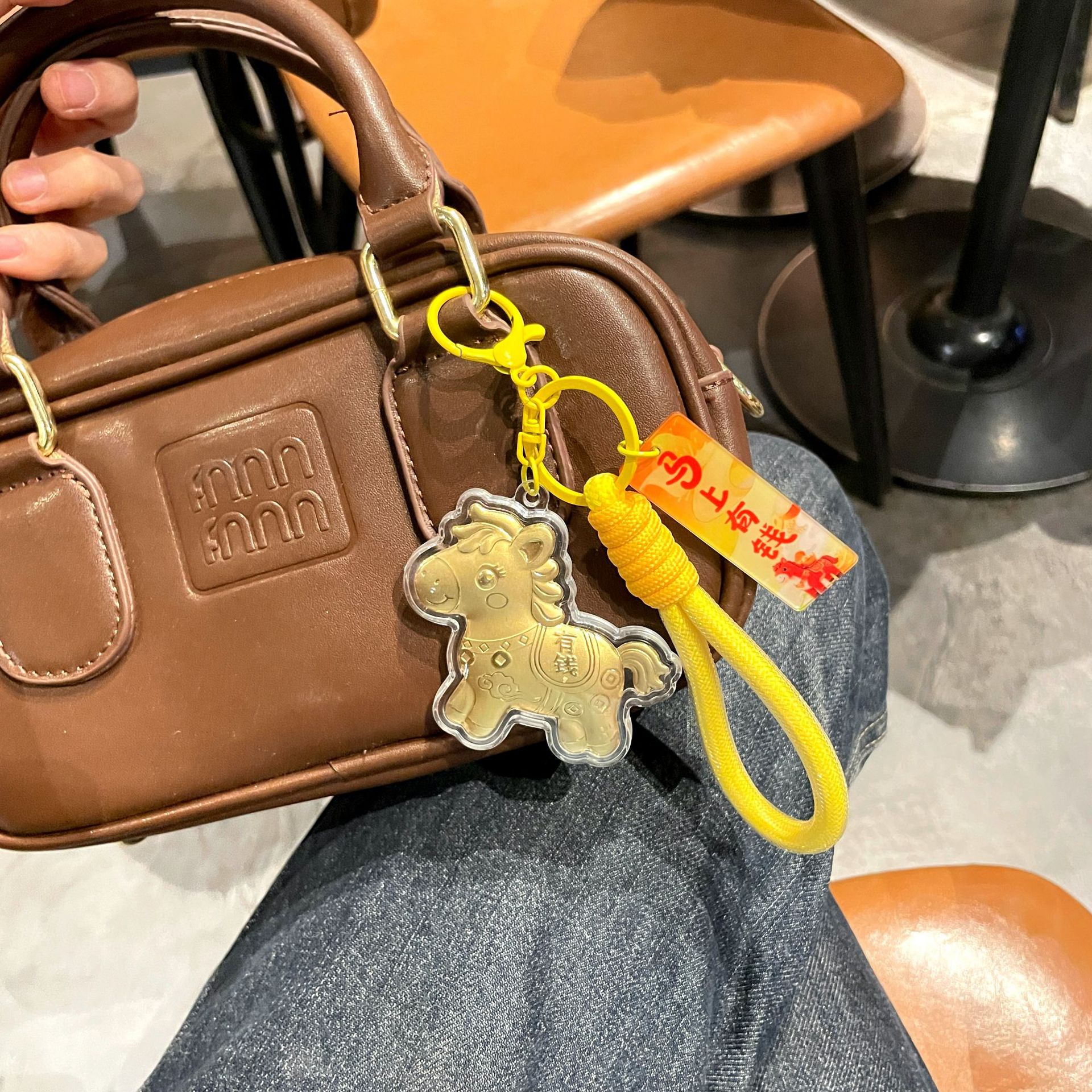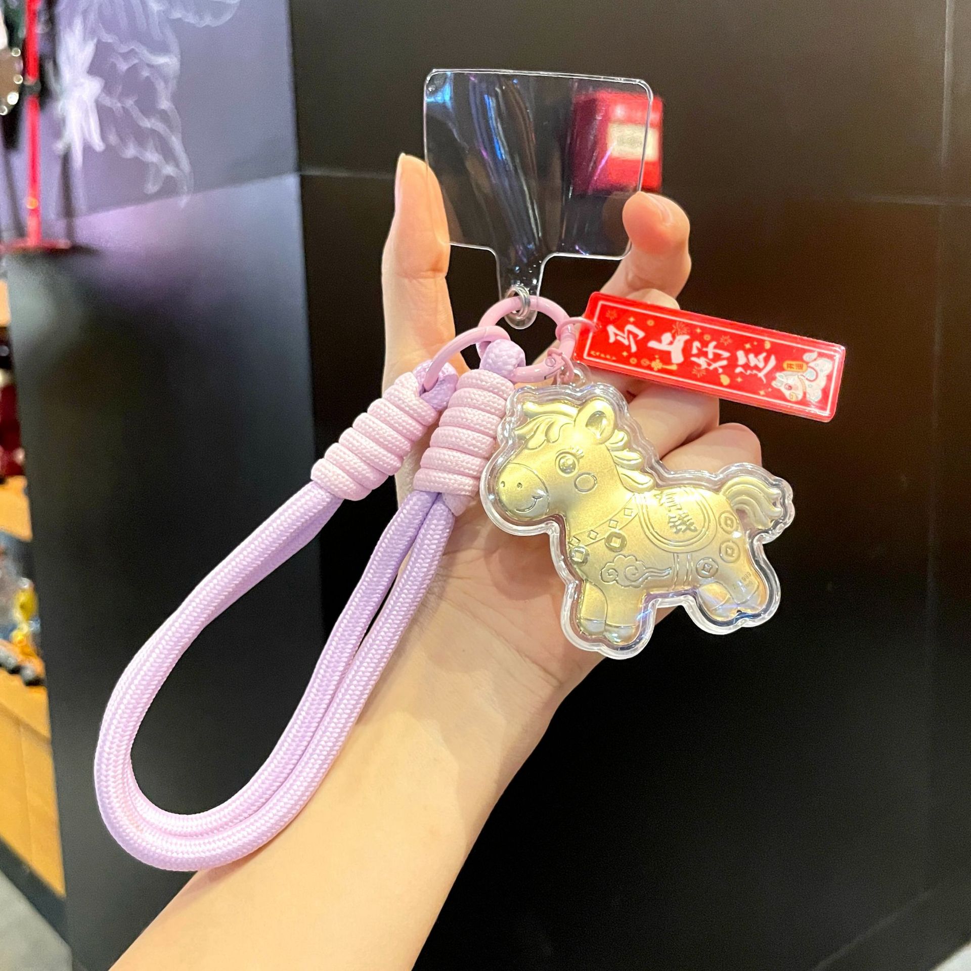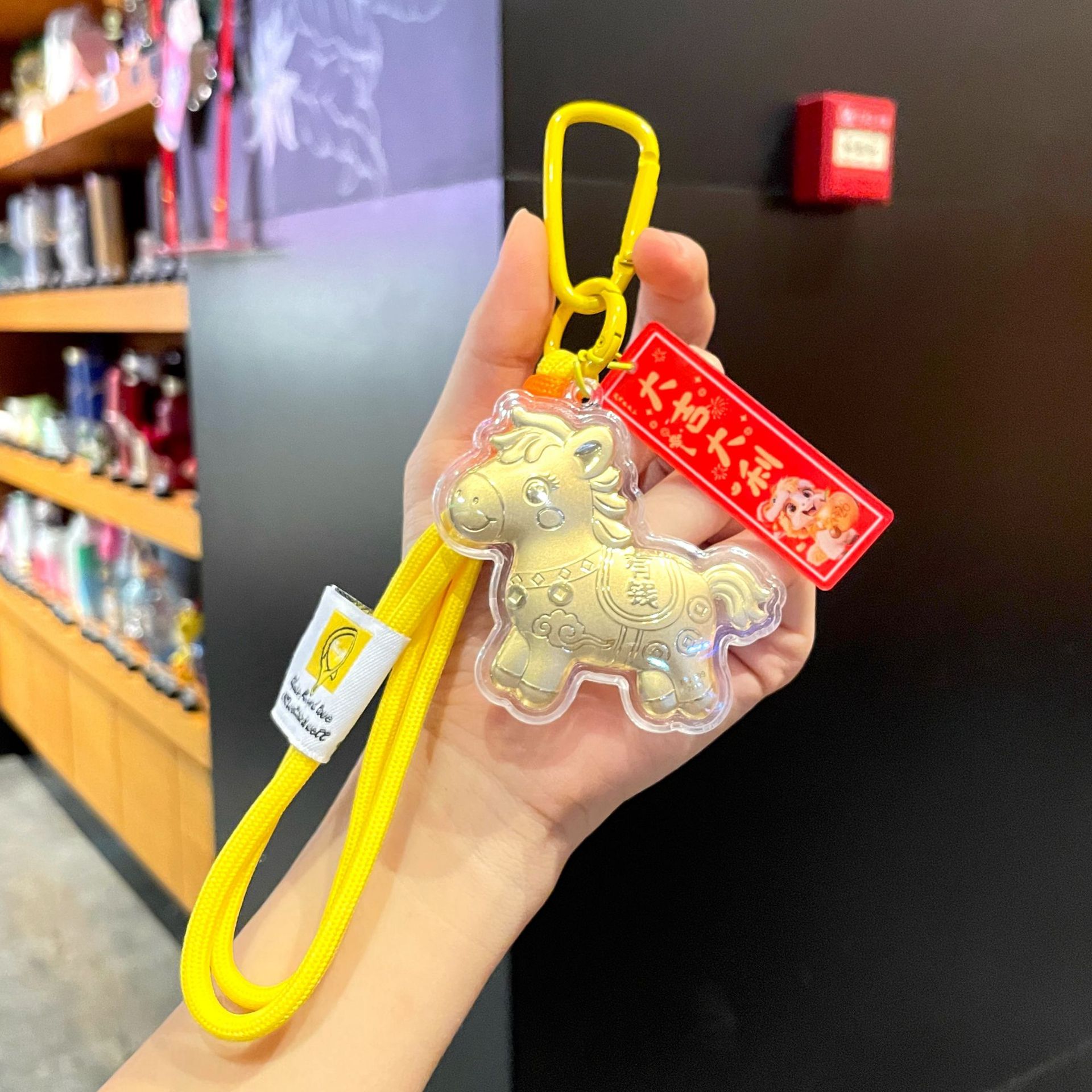 新年礼物金色塑箔马上有钱钥匙扣包包挂件马年精致祝福手机链挂绳