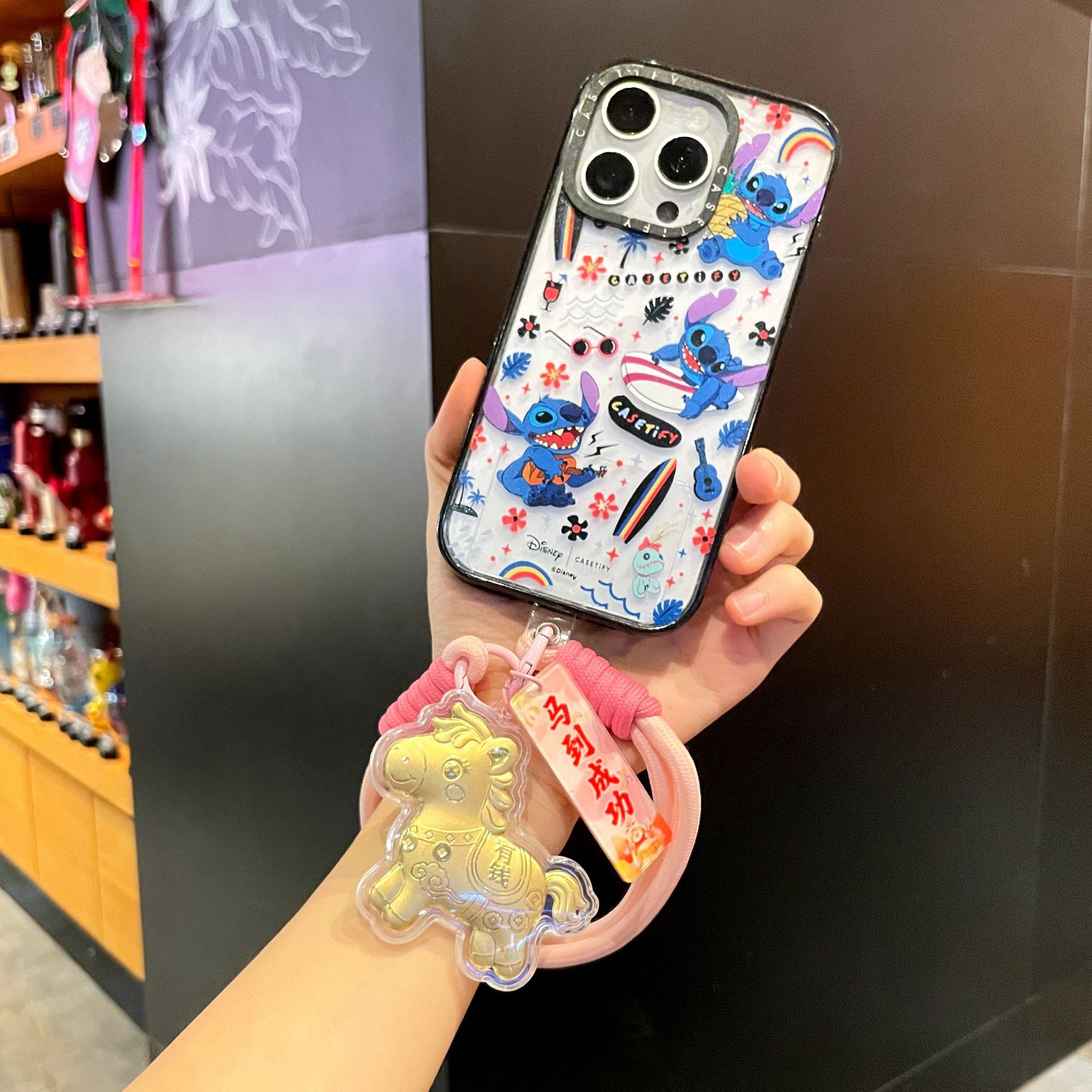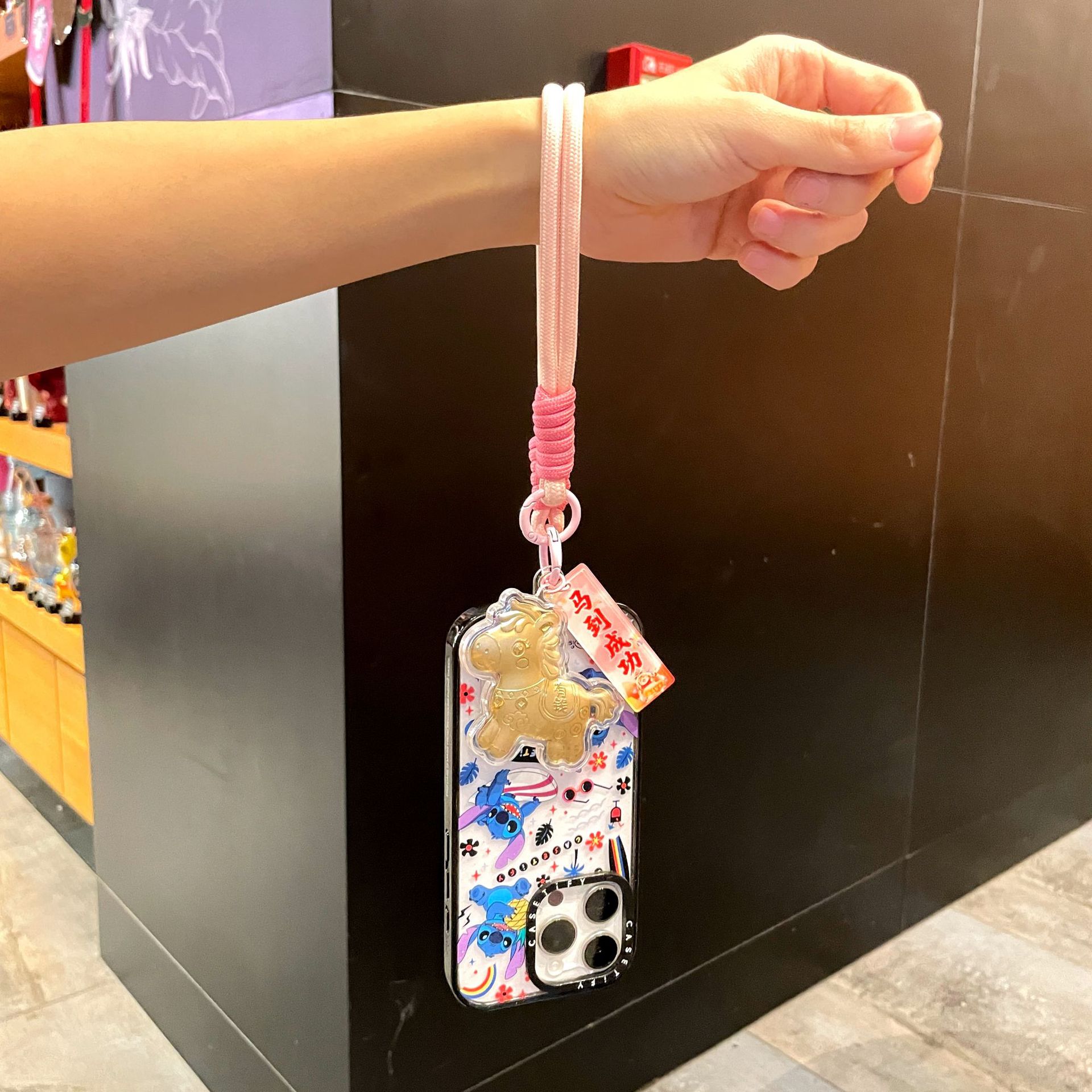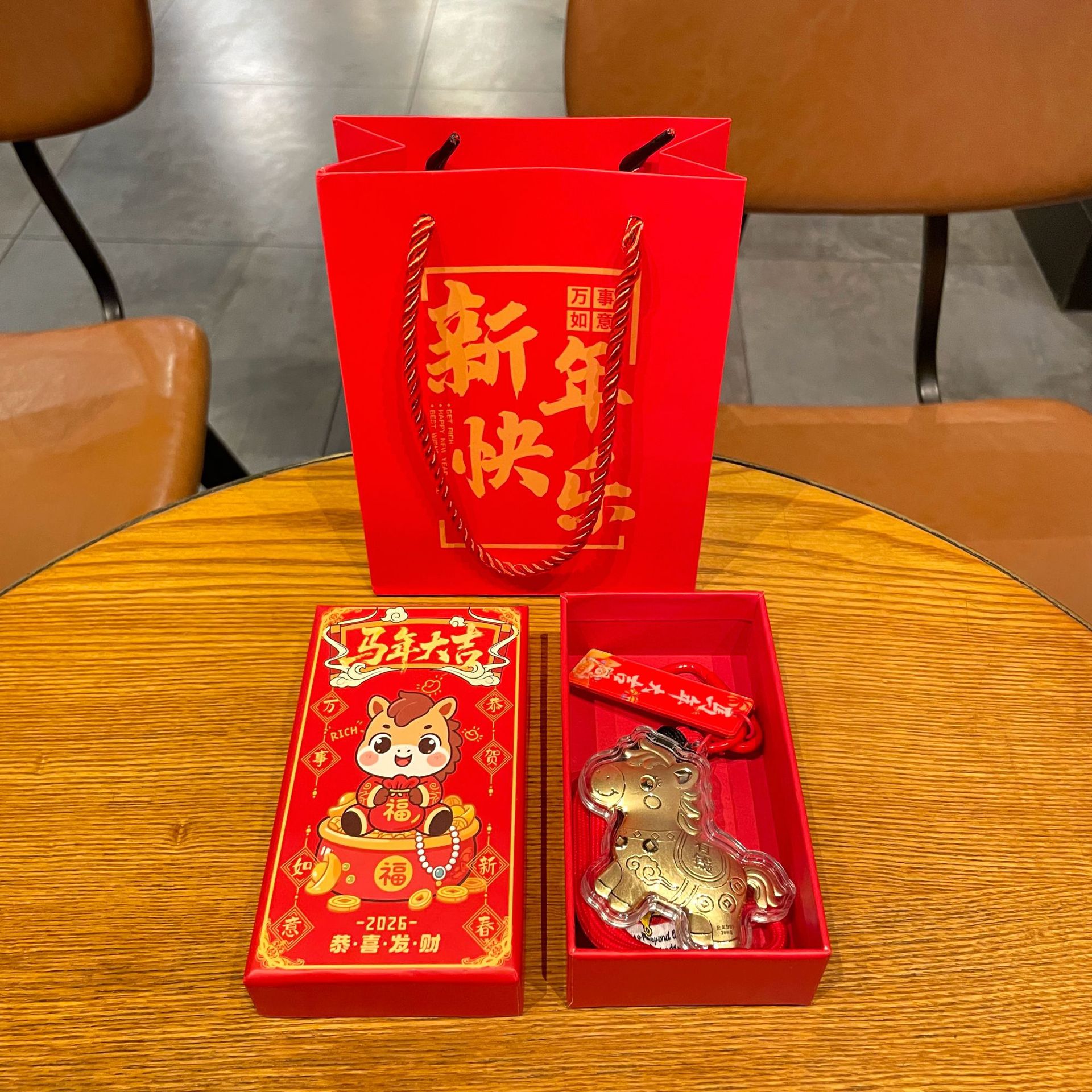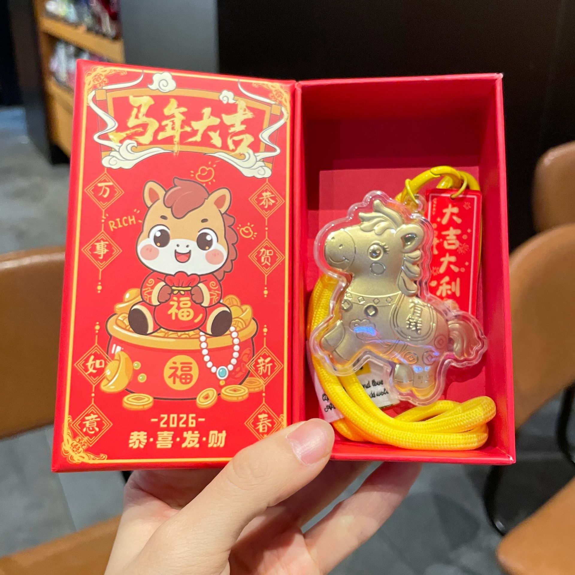 新年礼物金色塑箔马上有钱钥匙扣包包挂件马年精致祝福手机链挂绳