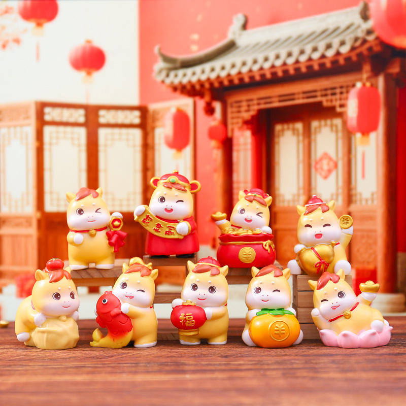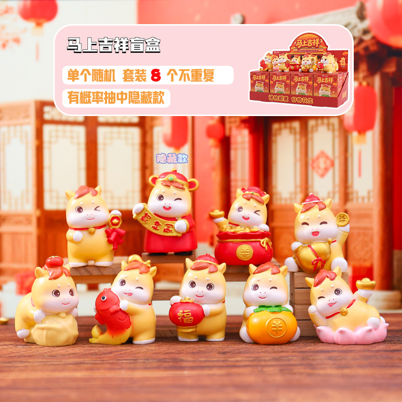 热卖马上吉祥盲盒桌面摆件创意生肖马家居玄关装饰品马年礼物批发