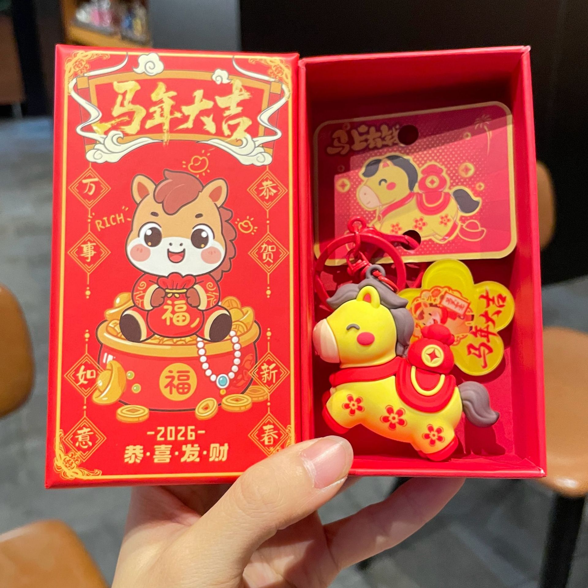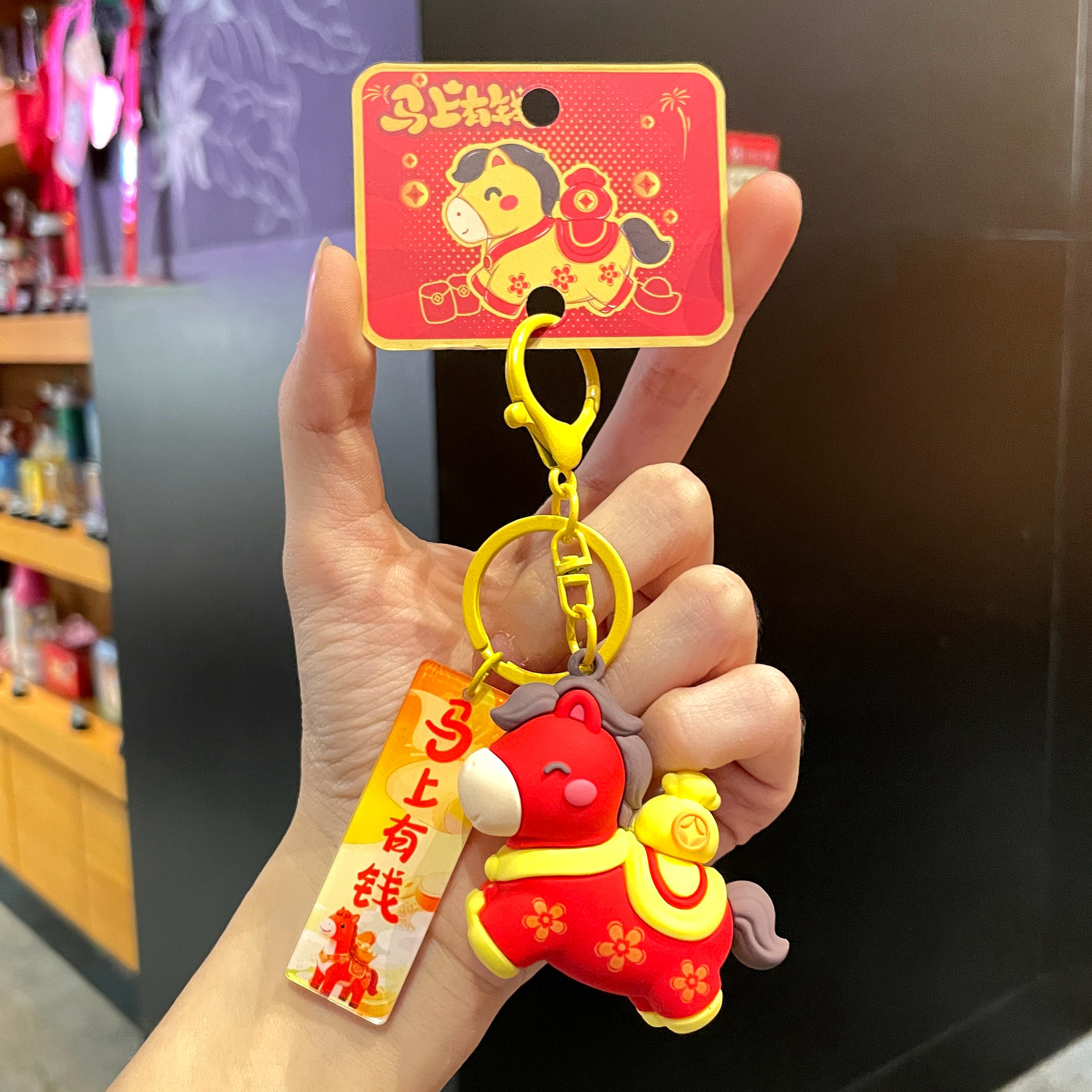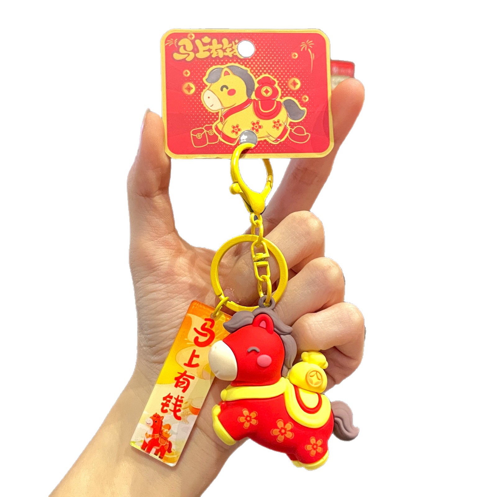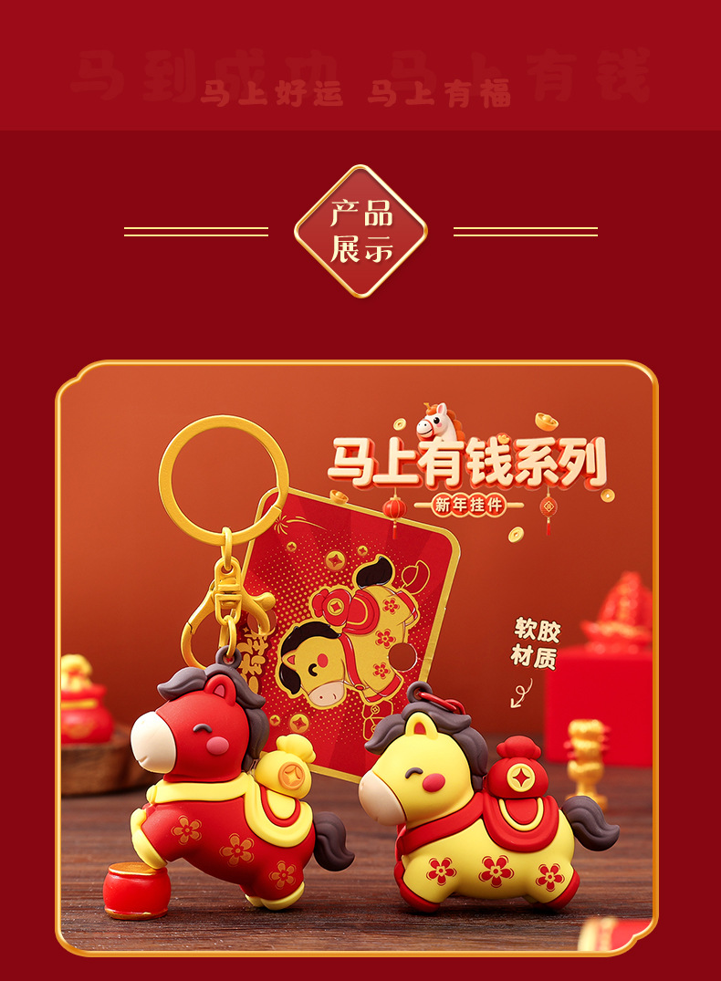 2026新年小马马上有钱卡通钥匙扣创意包包挂件装饰纪念品礼品批发