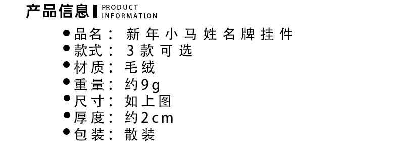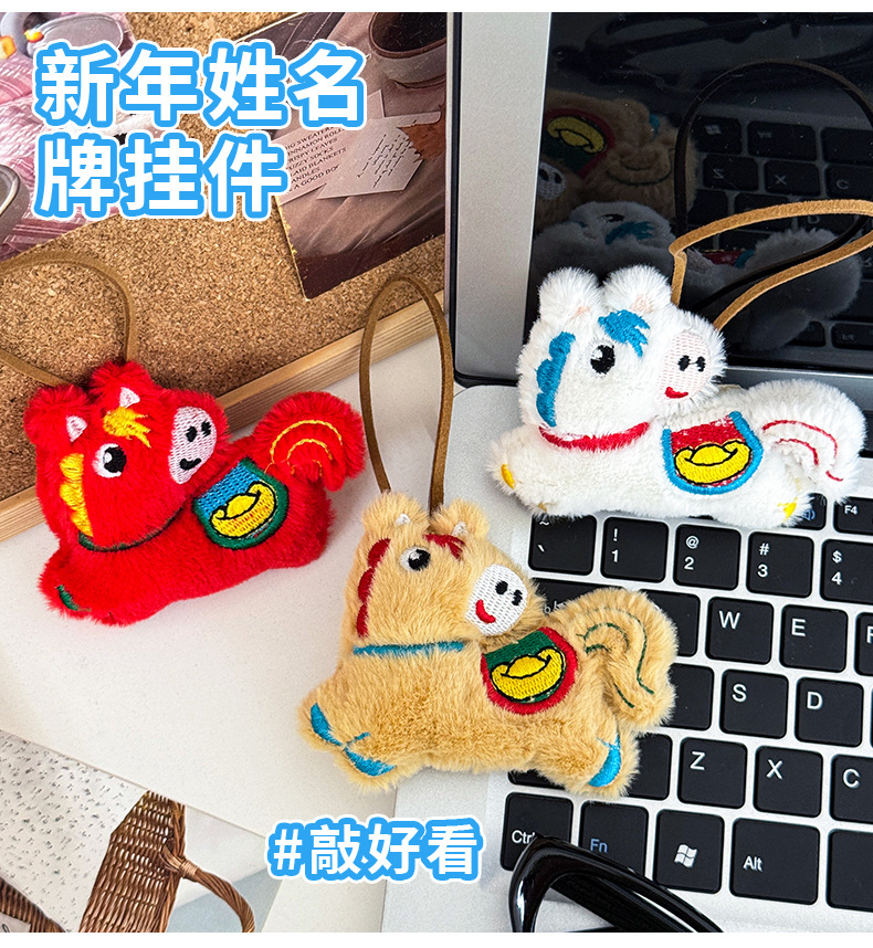 毛绒小马新年姓名挂件 可爱少女心马年创意挂饰礼品包包挂件装饰