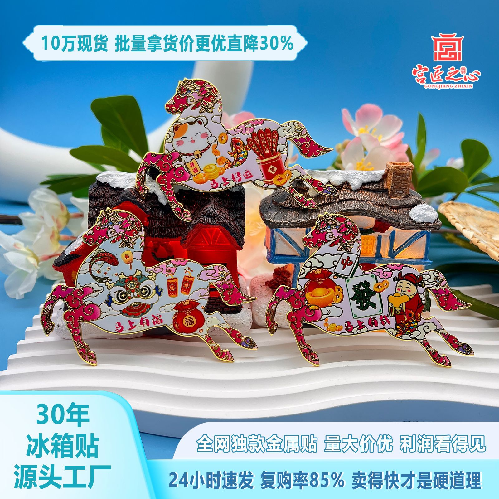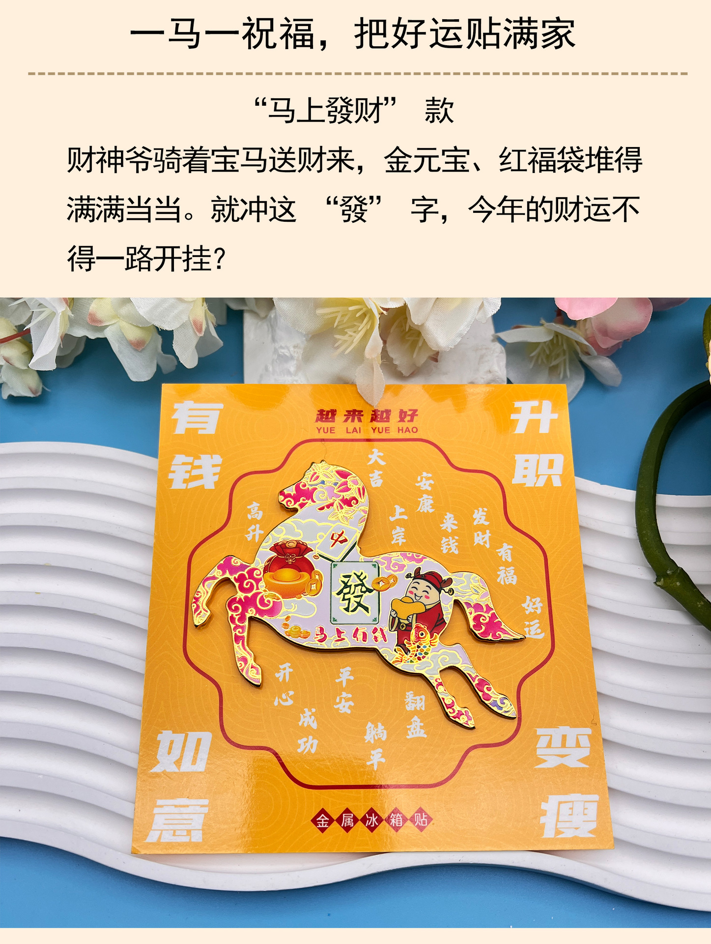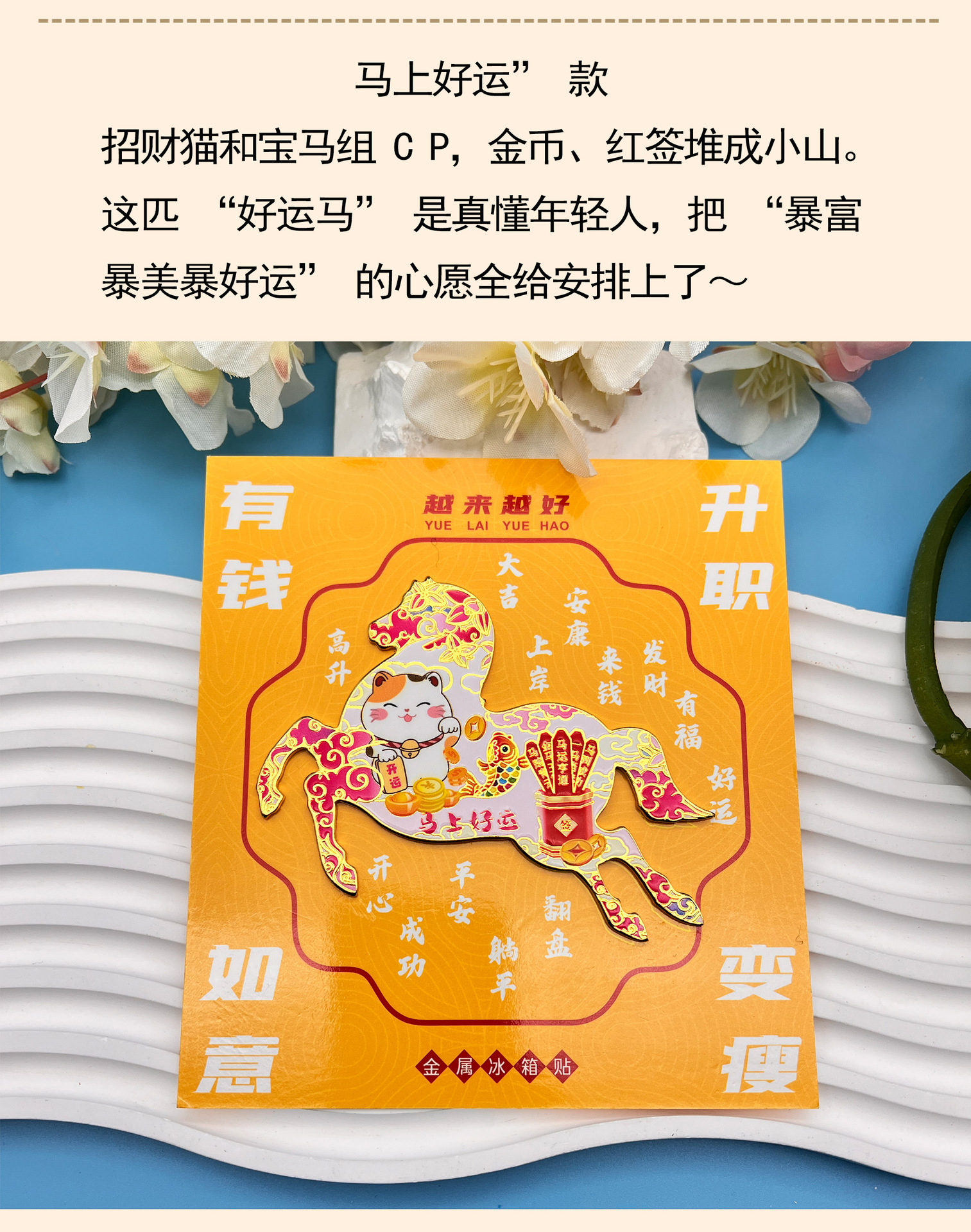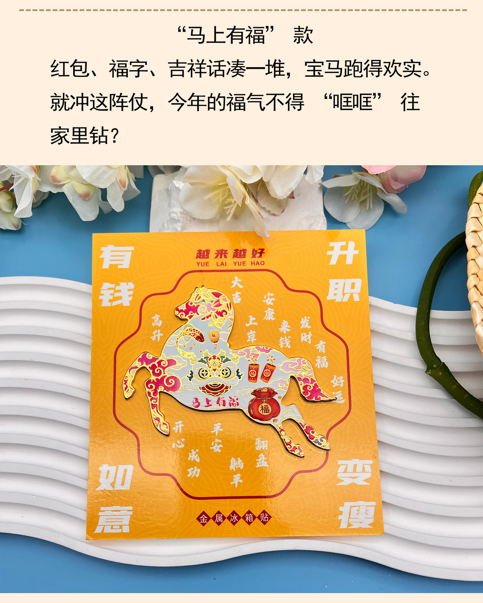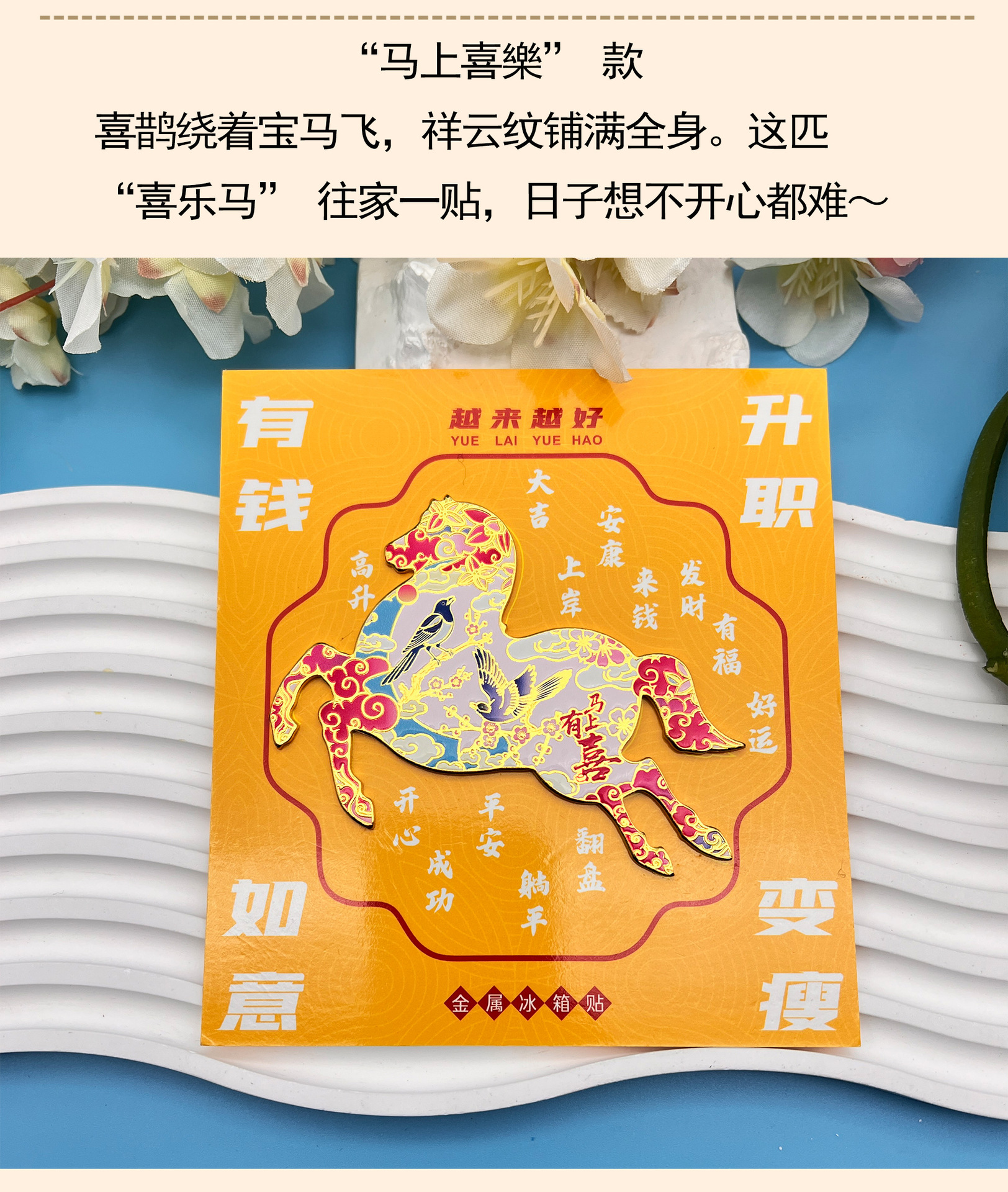 2026马年金属冰箱贴马上有钱喜气祝词磁吸纪念品国潮文创伴手礼品