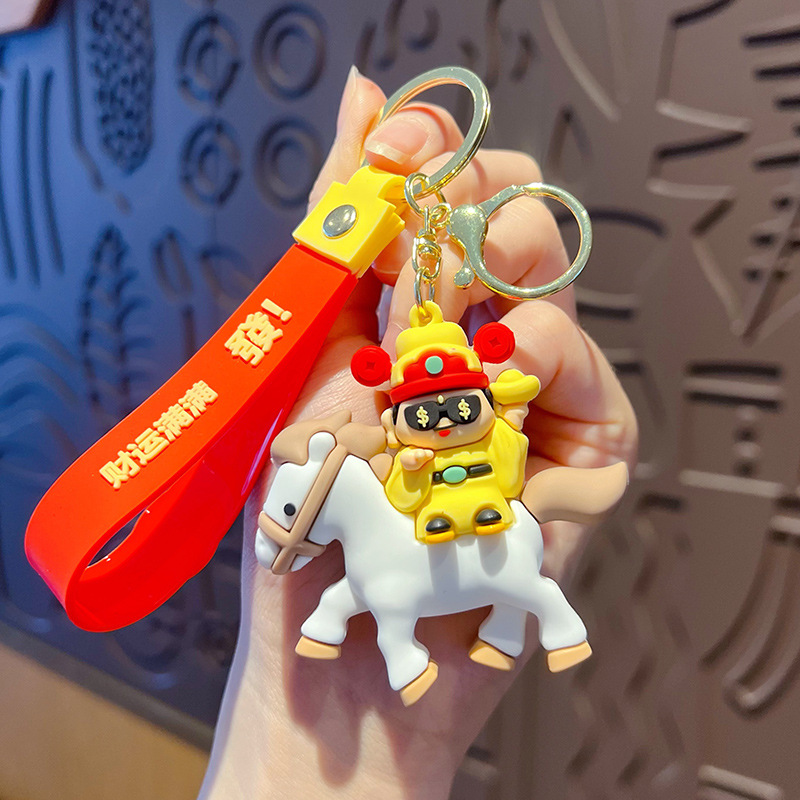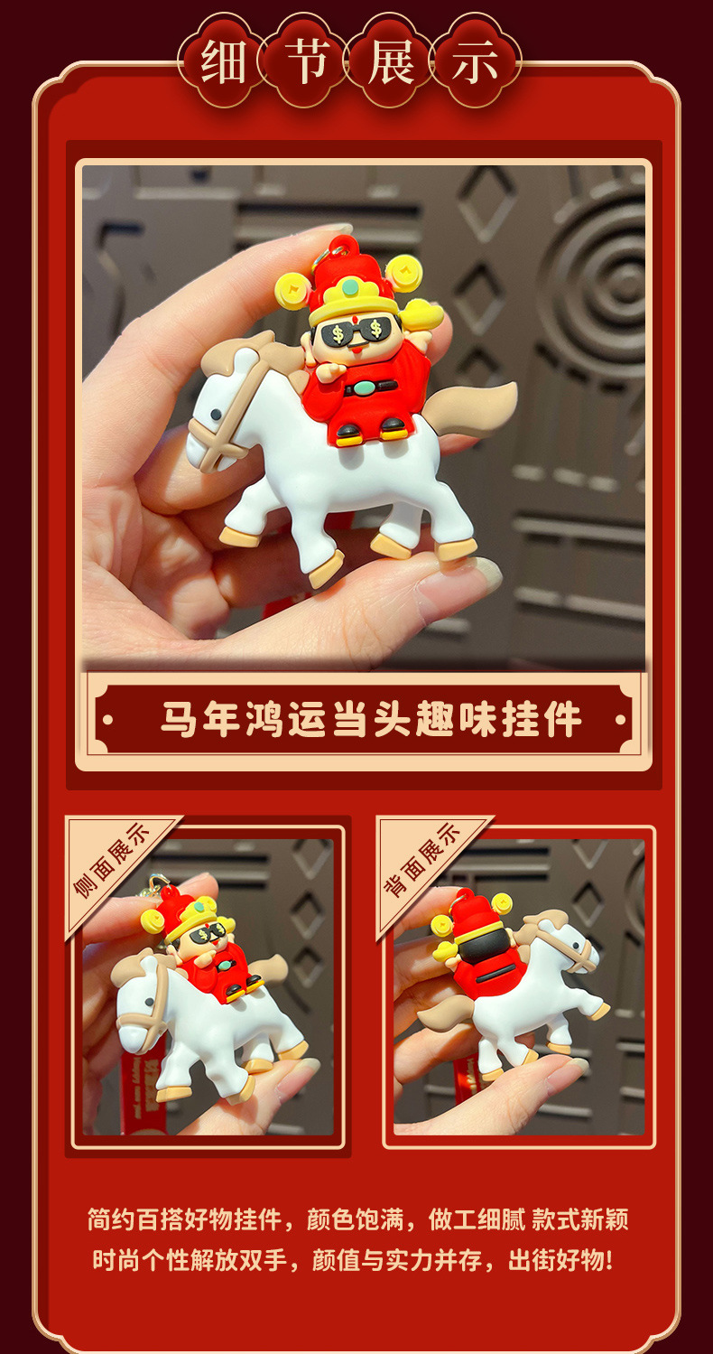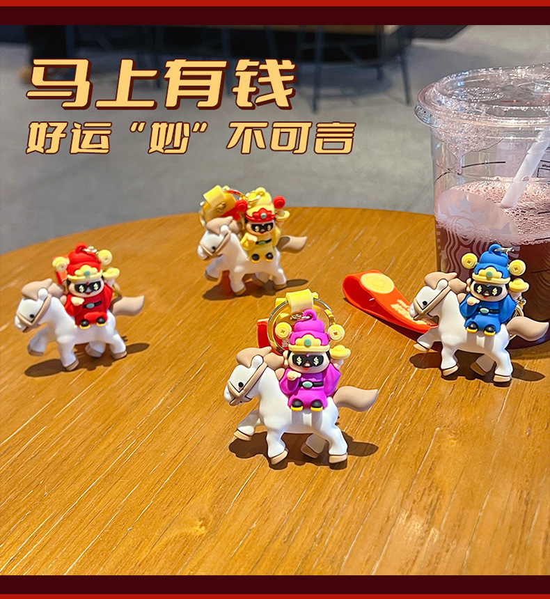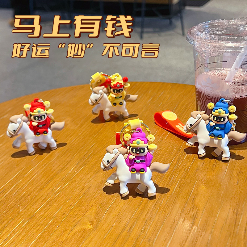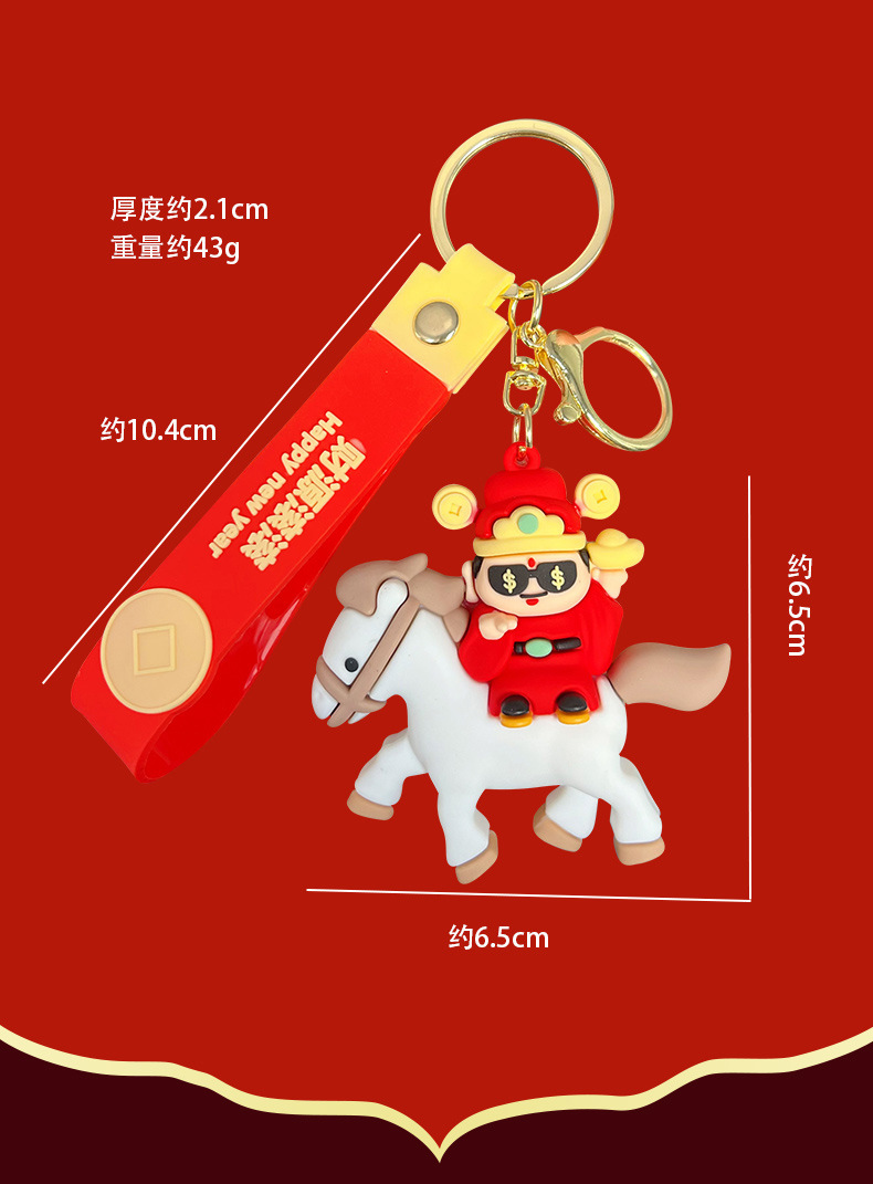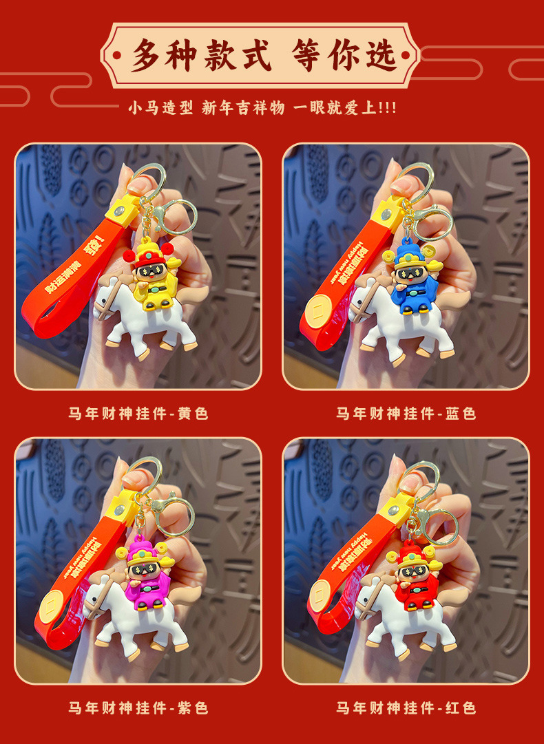 创意马年财神小马钥匙扣公仔挂件汽车包包钥匙链玩偶挂饰新年礼品