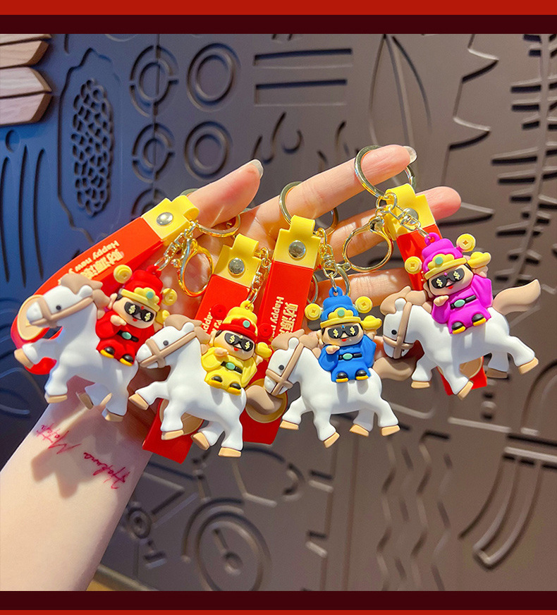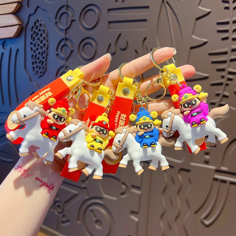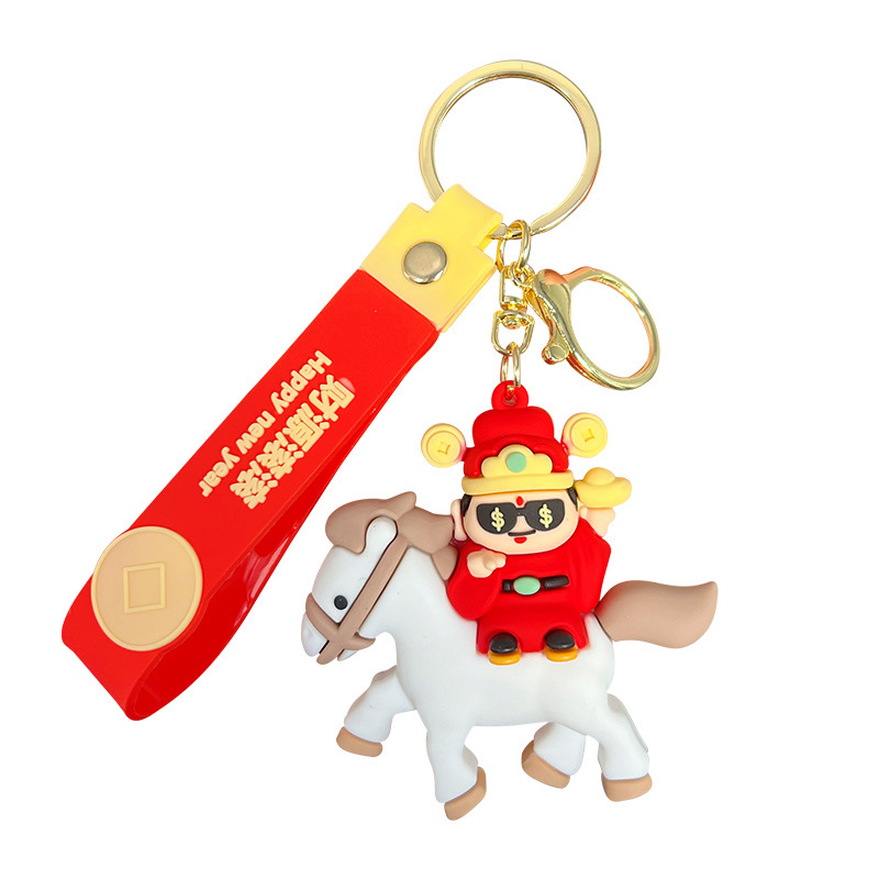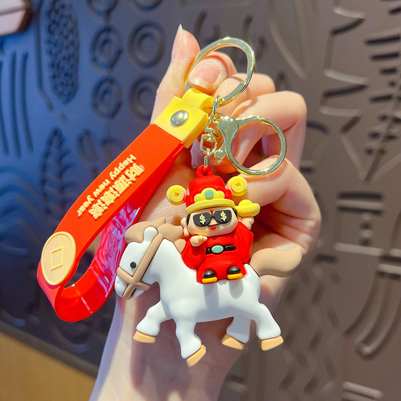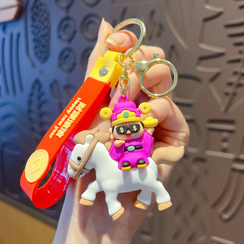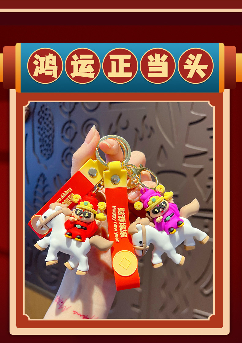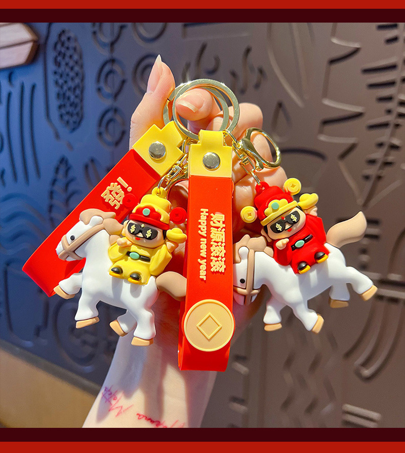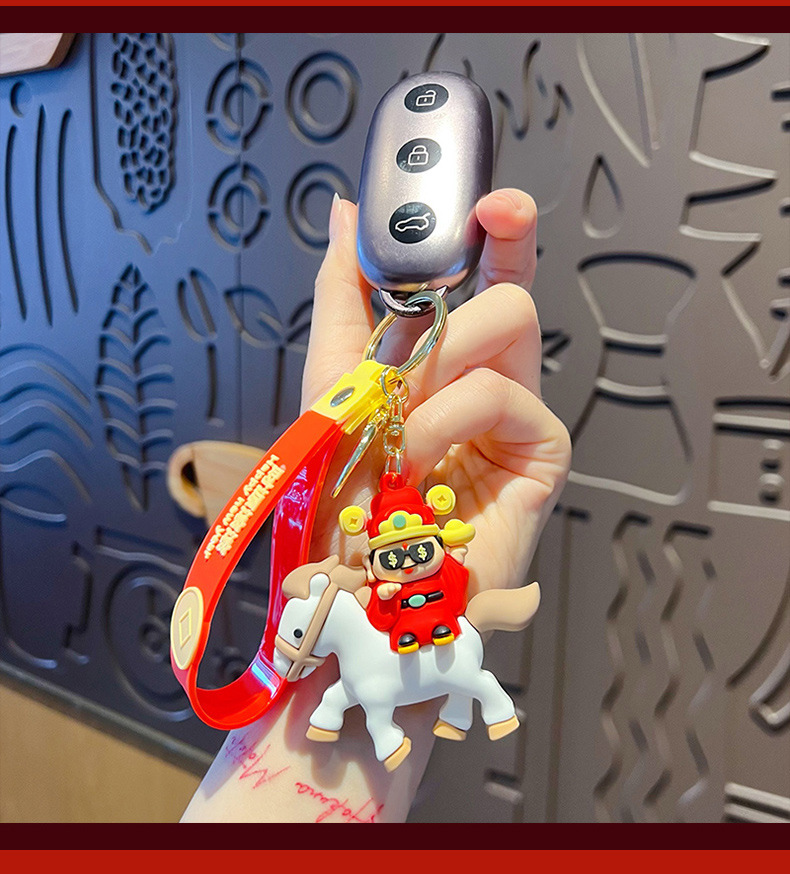 创意马年财神小马钥匙扣公仔挂件汽车包包钥匙链玩偶挂饰新年礼品