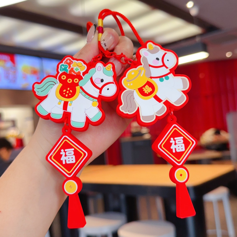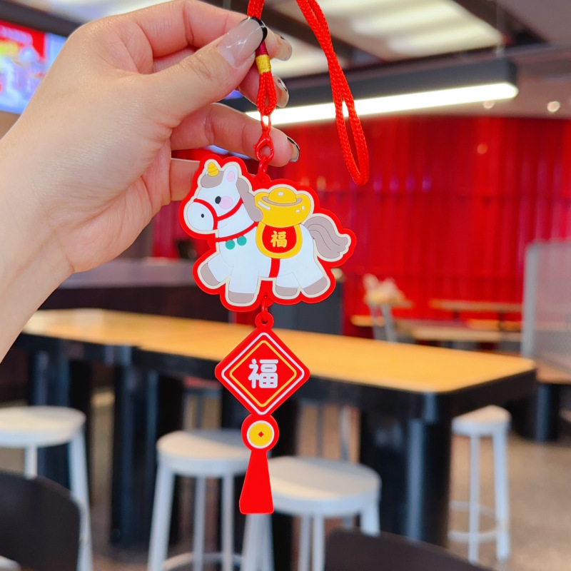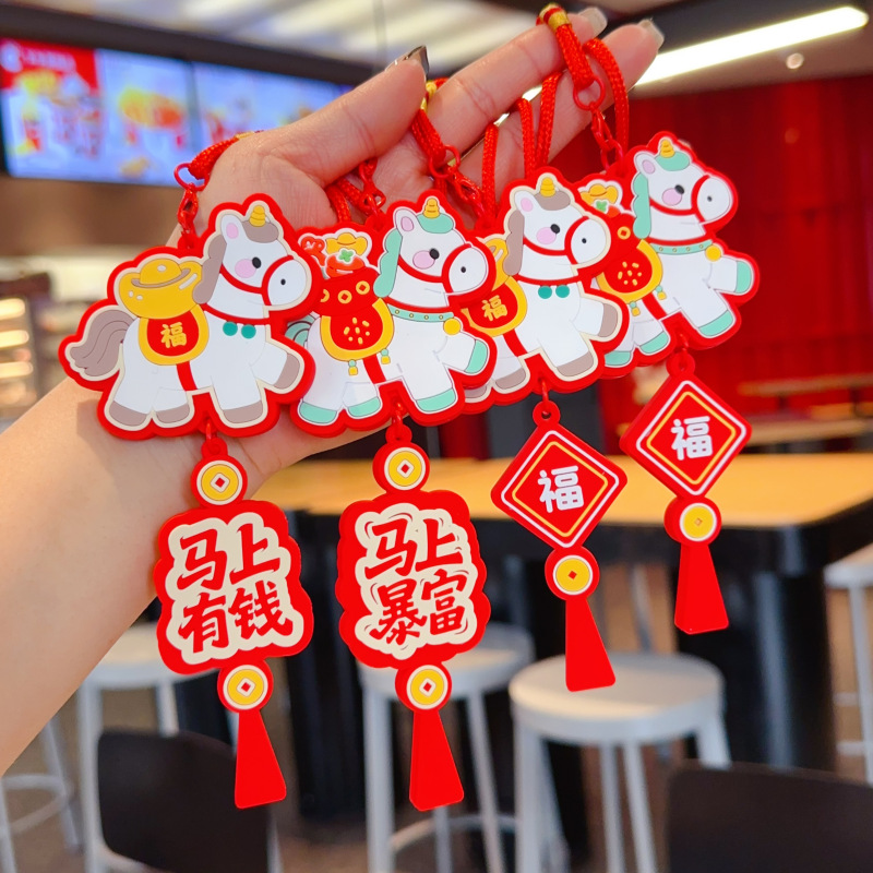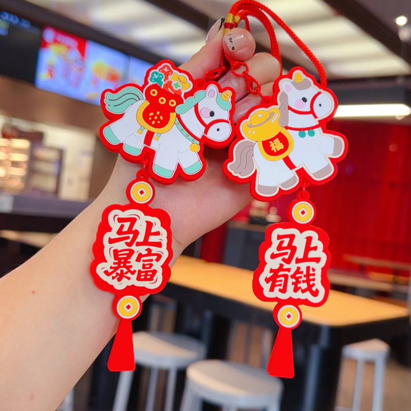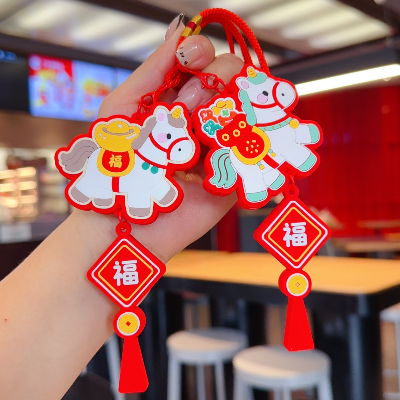 2026新款马年车载包包挂件吉祥物小马汽车钥匙扣挂饰新年礼物批发