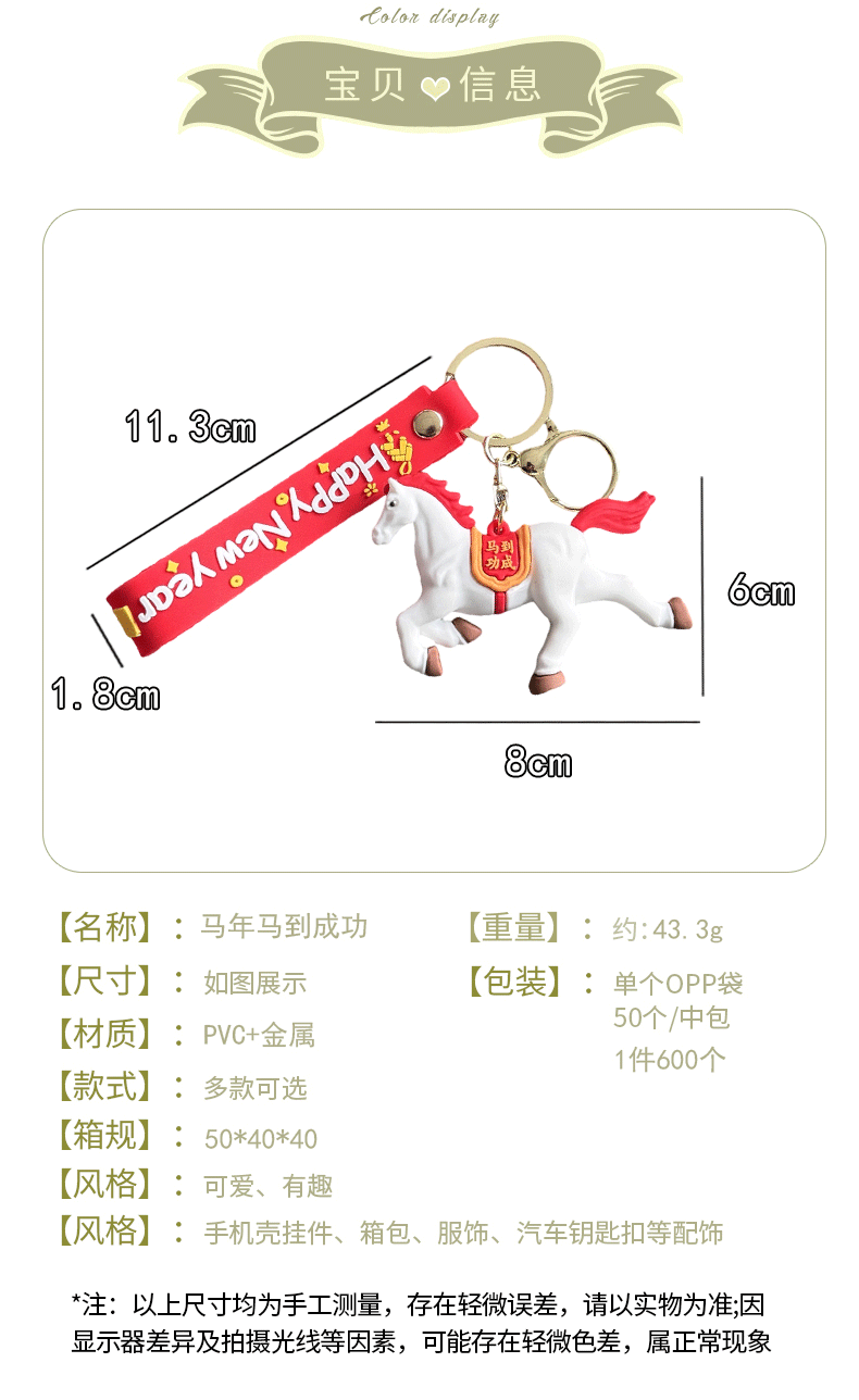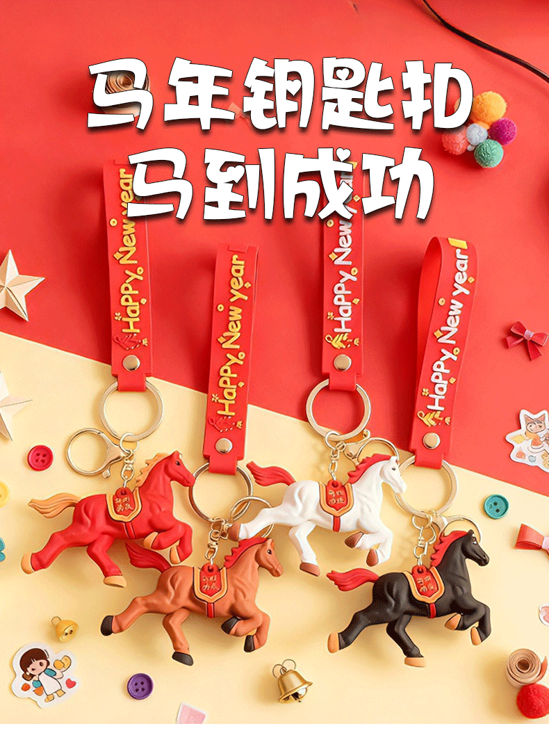 2026年新款可爱马年钥匙扣书包挂件礼品新年马到成功本命年吉祥物