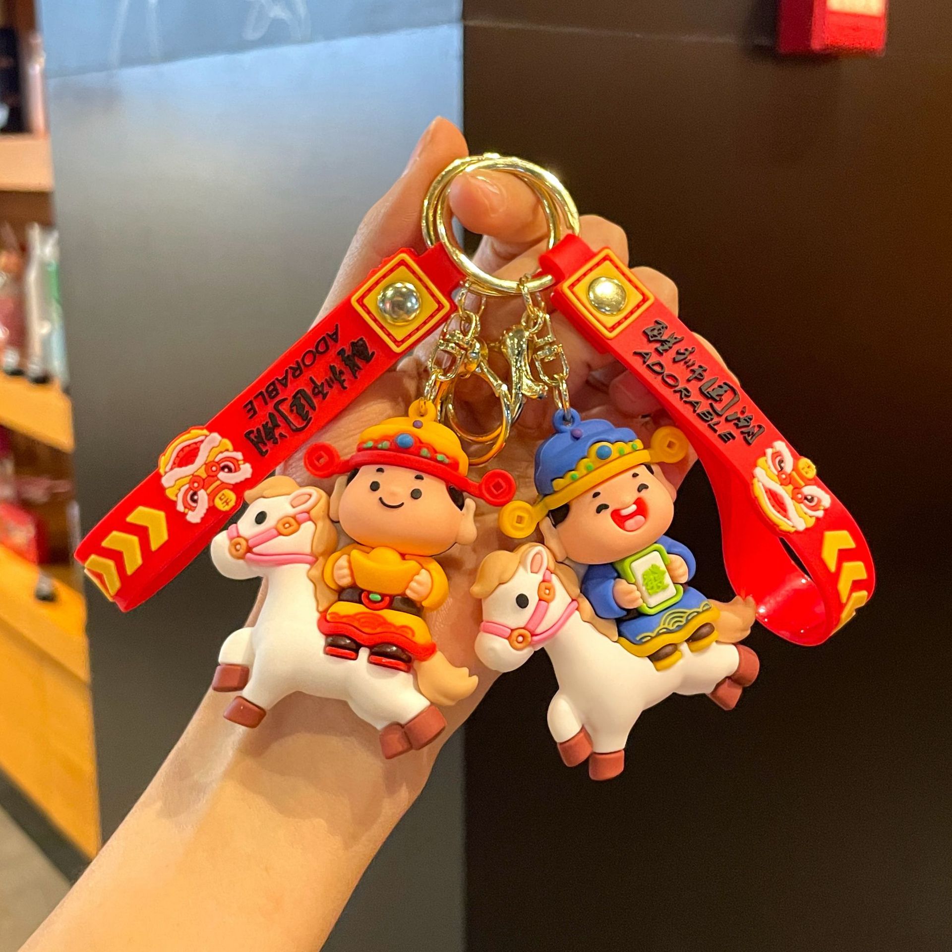 国潮财神小马钥匙扣挂件卡通马年吉祥物钥匙链娃娃机玩偶公仔批发