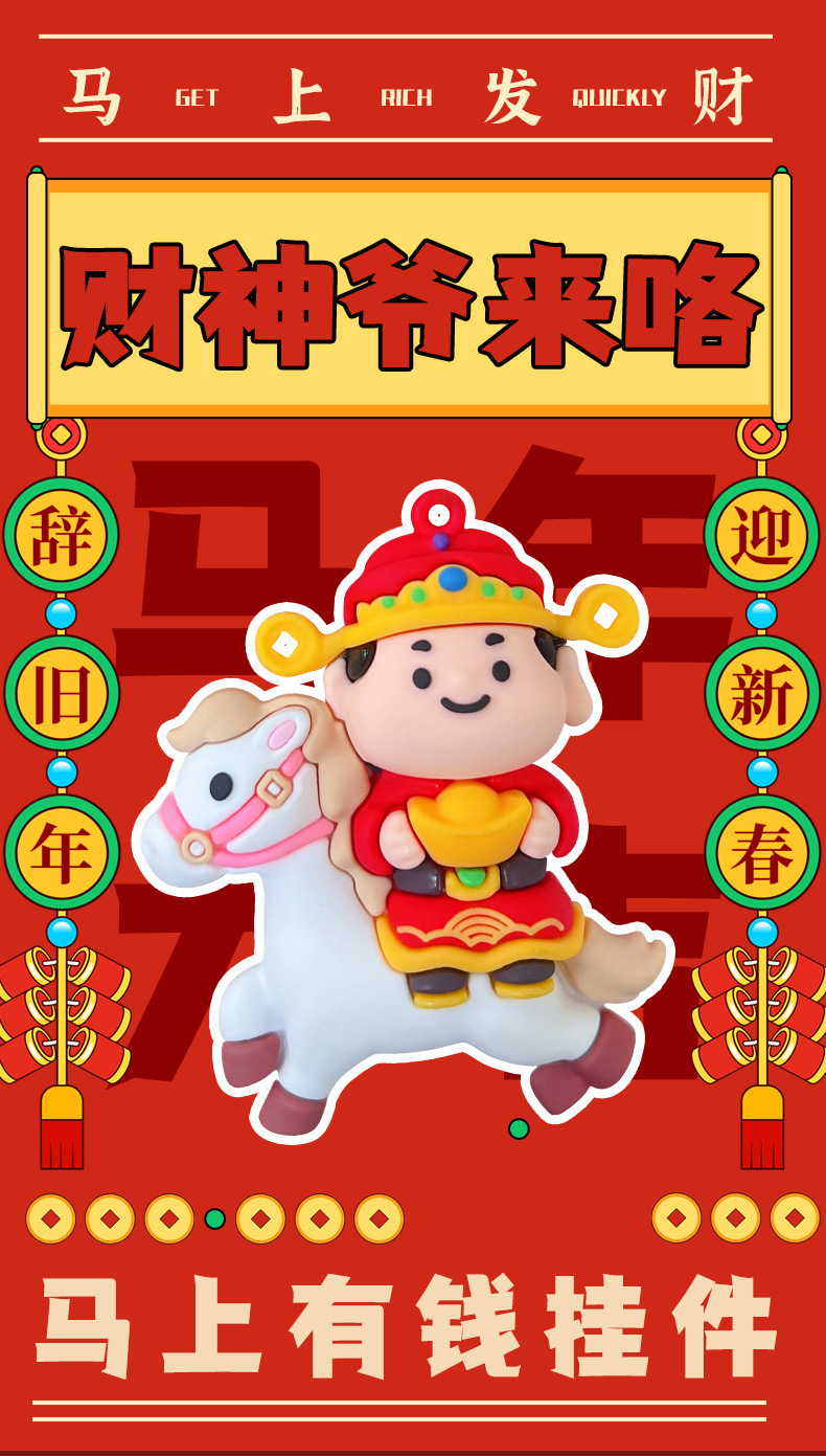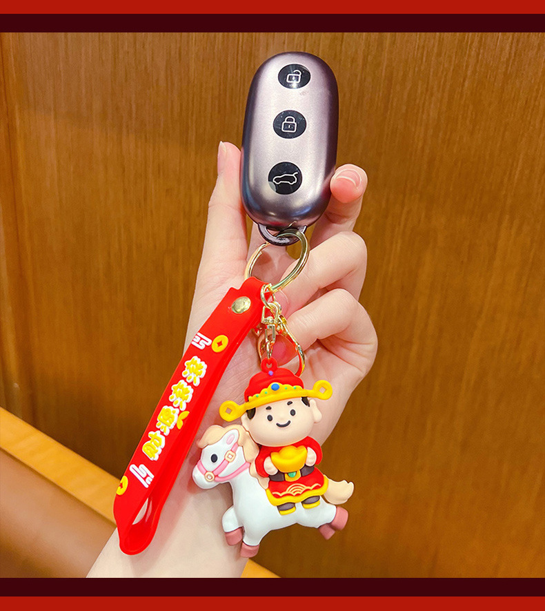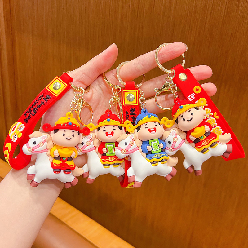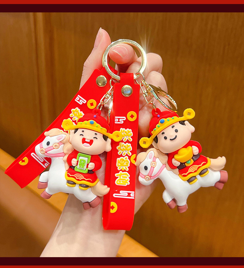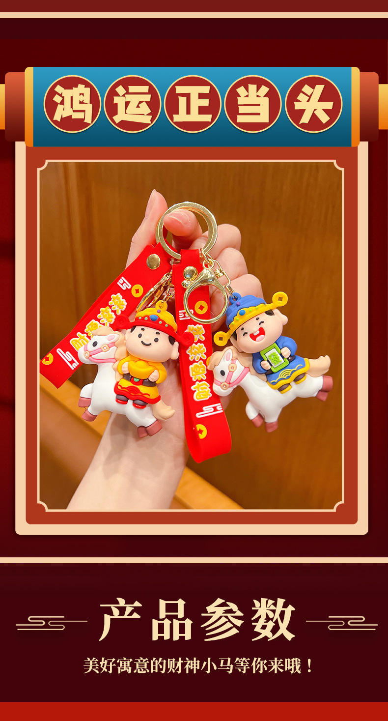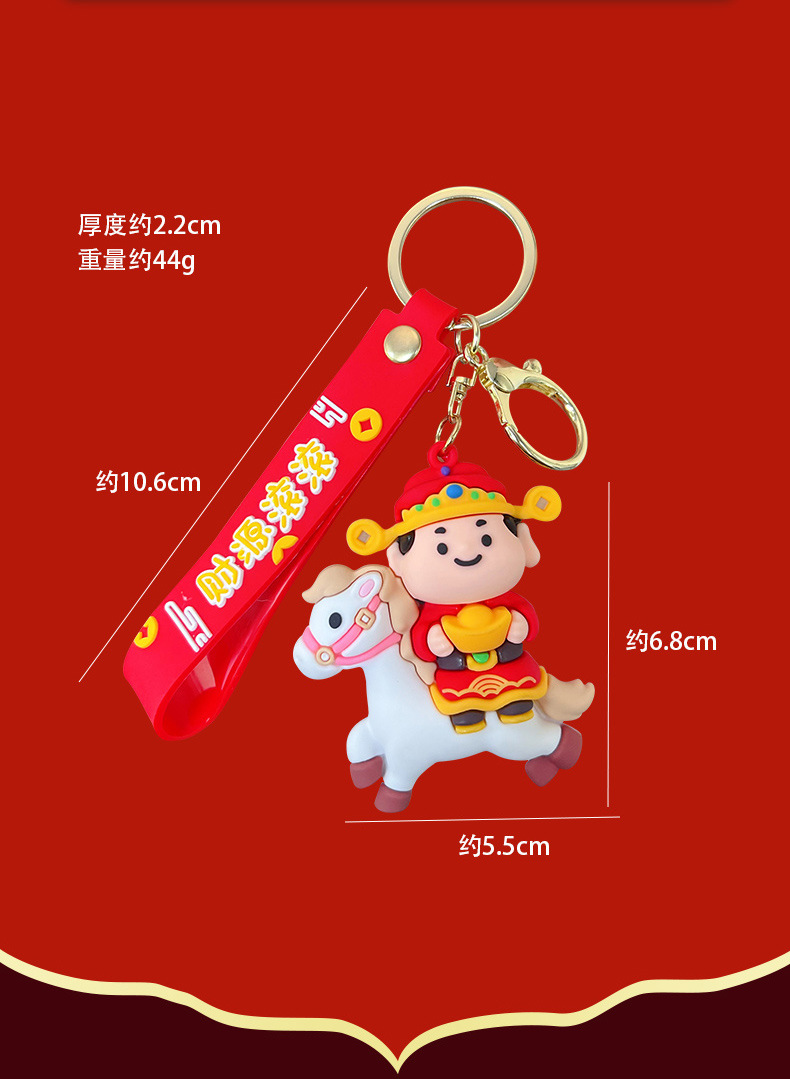 国潮新年马上有钱财神钥匙扣挂件情侣包包钥匙链公仔挂饰马年礼品
