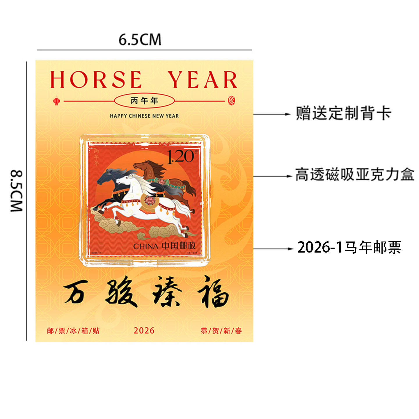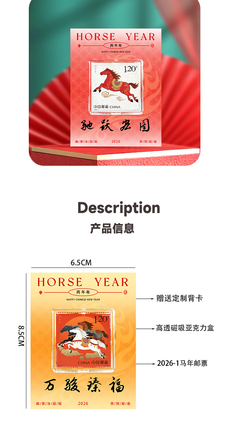 中国邮政马年生肖冰箱贴 马年新年礼物 邮票 收藏礼品 新年伴手