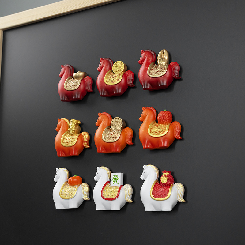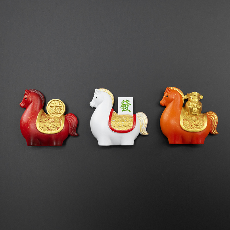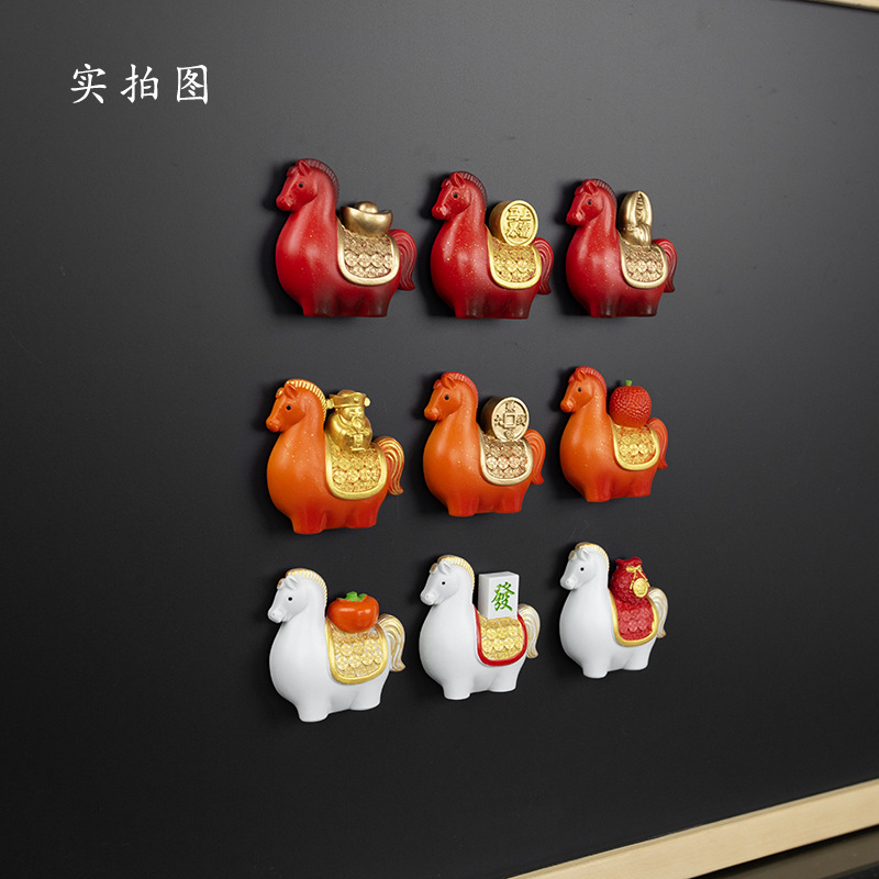 创意国潮马年冰箱贴马年树脂摆件办公室装饰品桌面解压生肖礼品