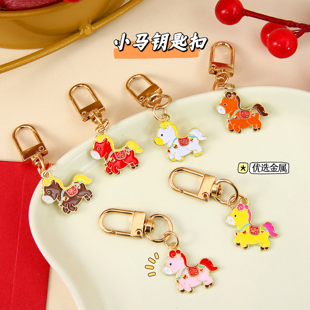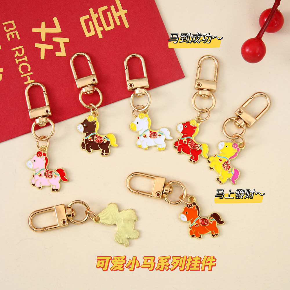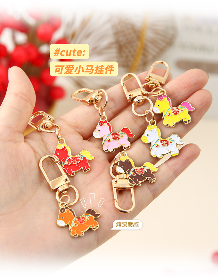 马上有钱钥匙扣挂件中国风可爱生肖小马新年祝福金属挂饰礼品批发