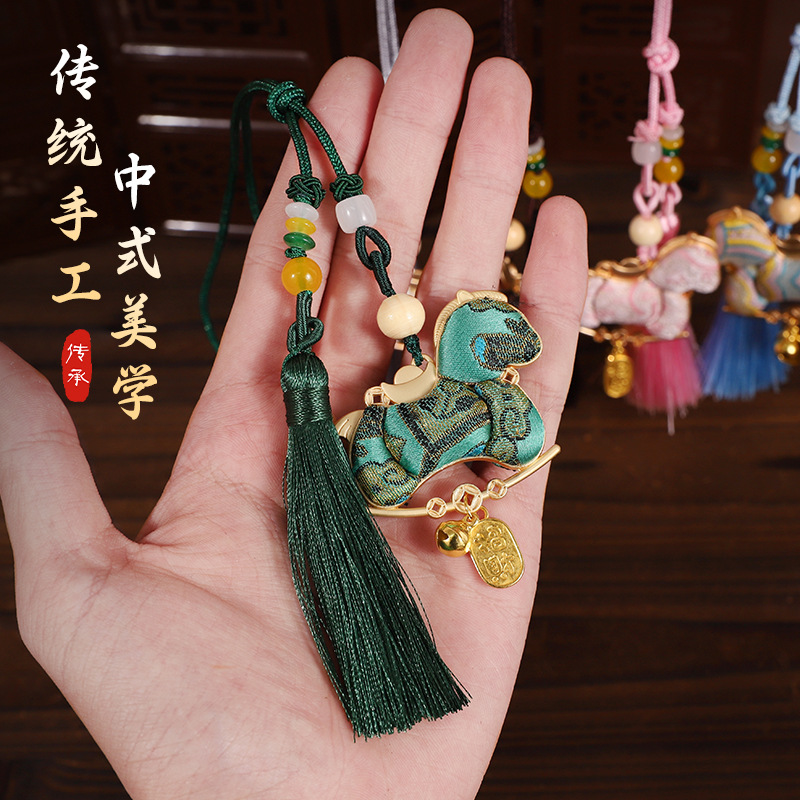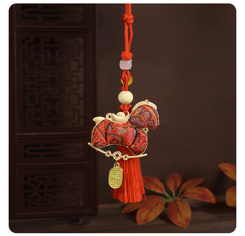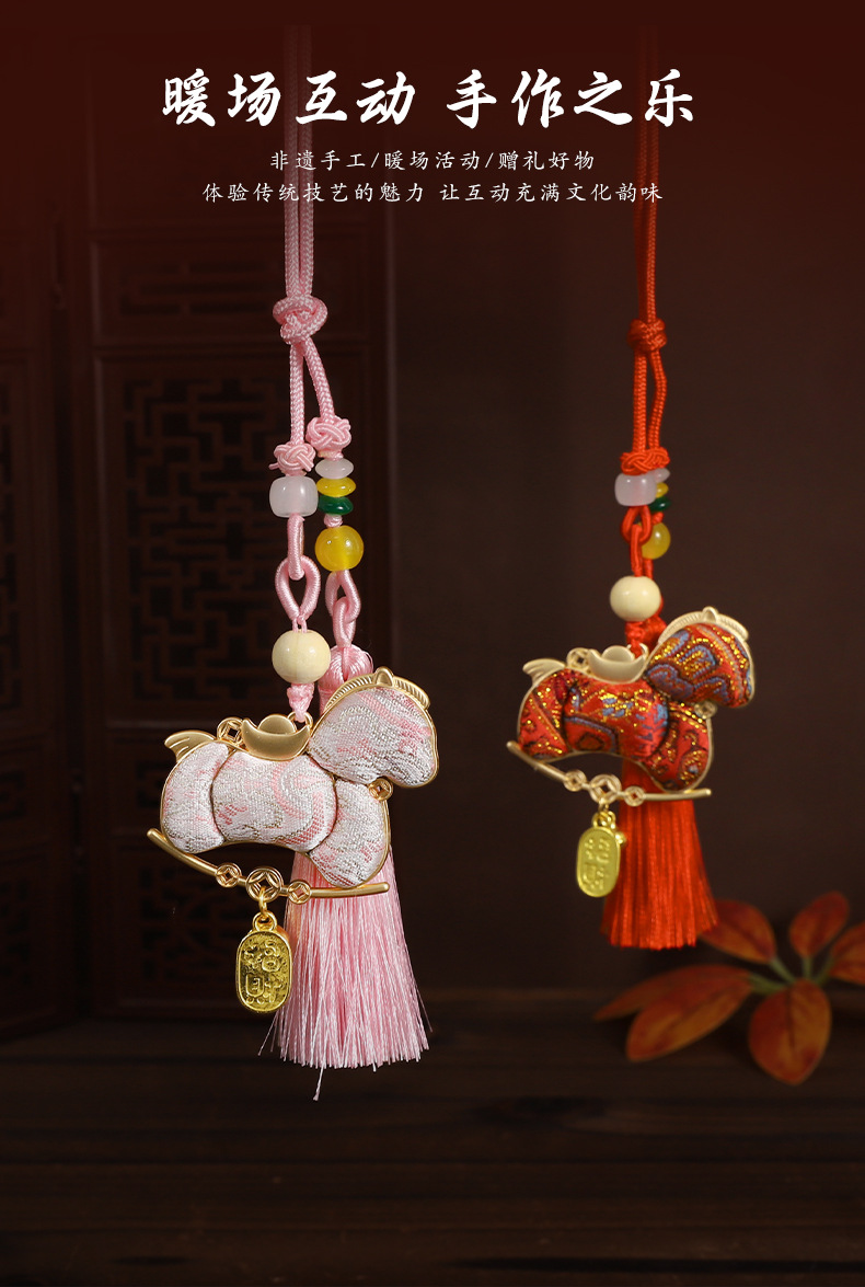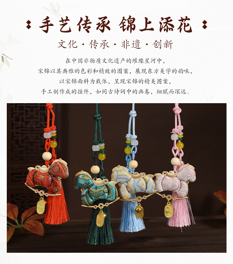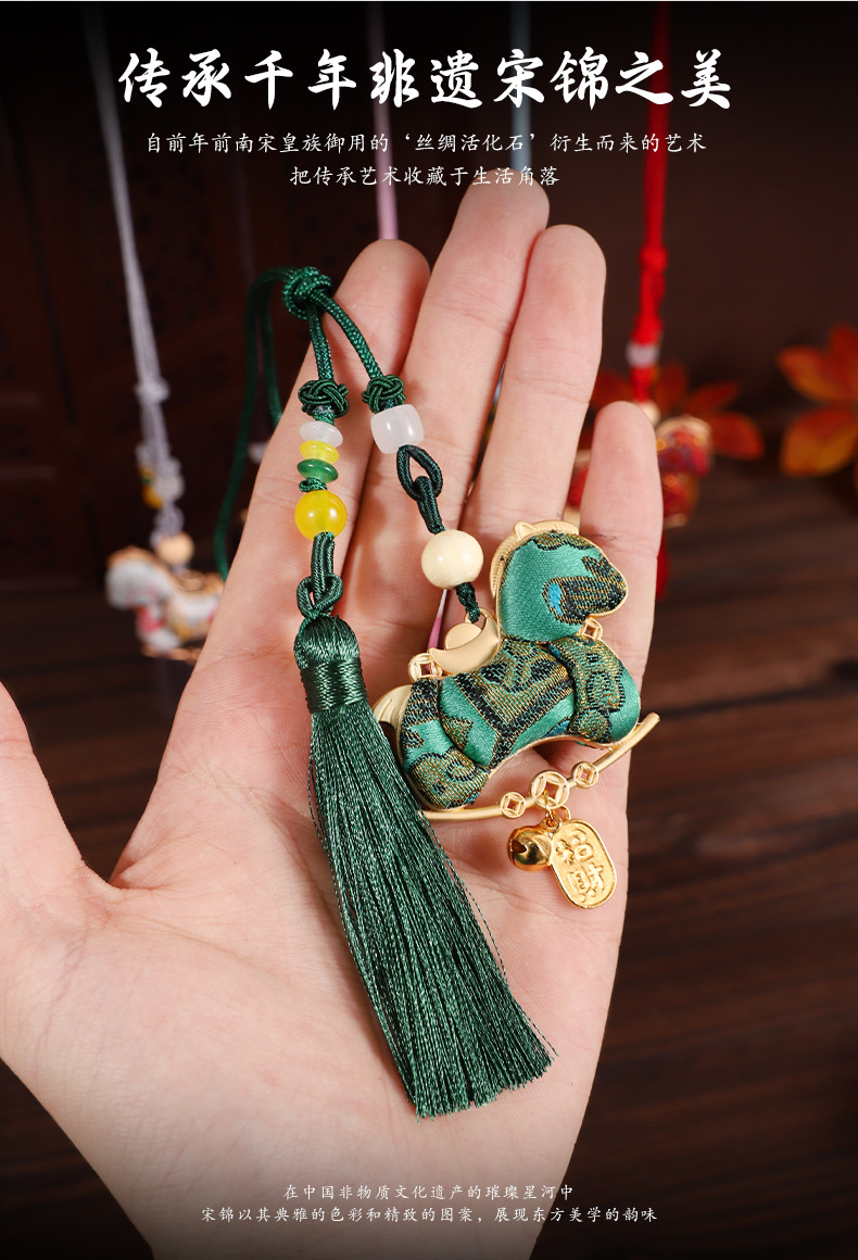 【成品】宋锦马上暴富纯手工挂件新中式国风流苏车挂2026马年礼品