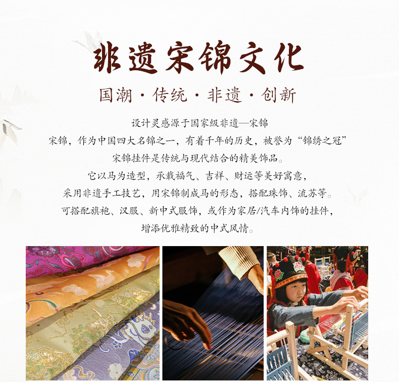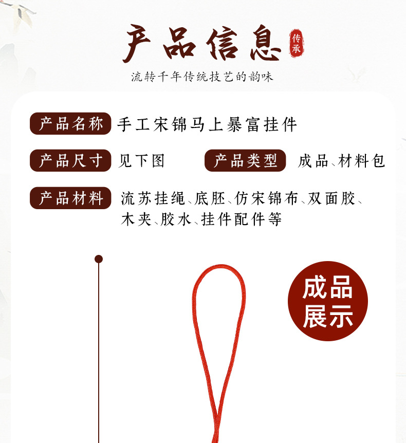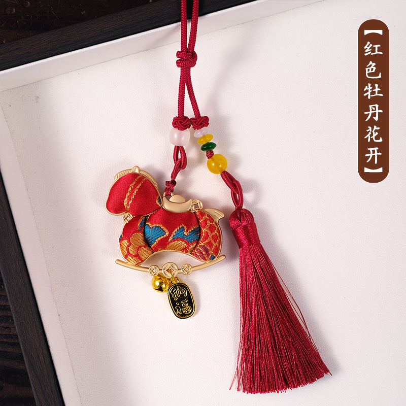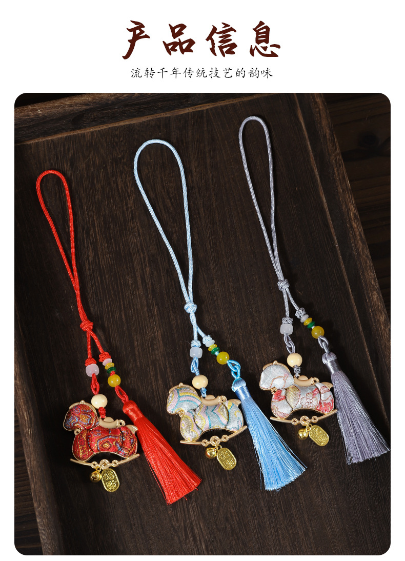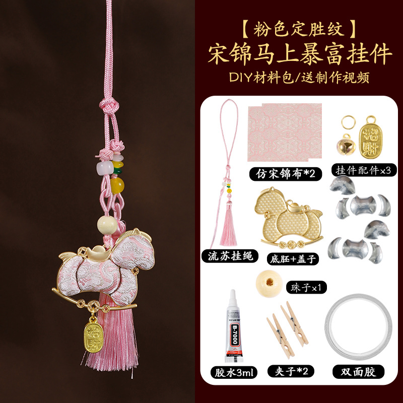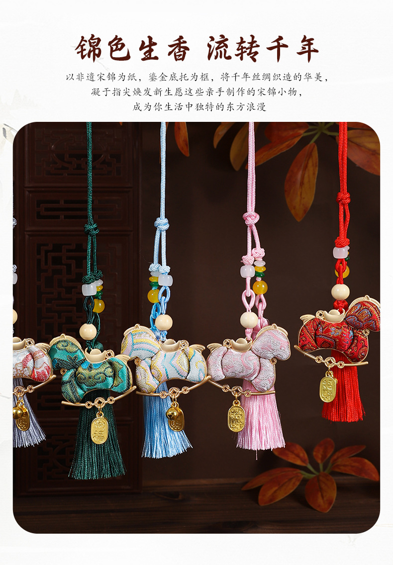 【成品】宋锦马上暴富纯手工挂件新中式国风流苏车挂2026马年礼品