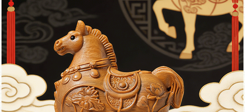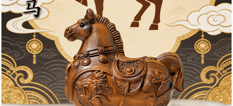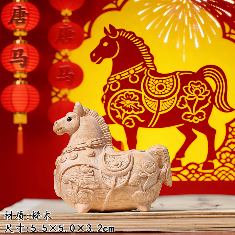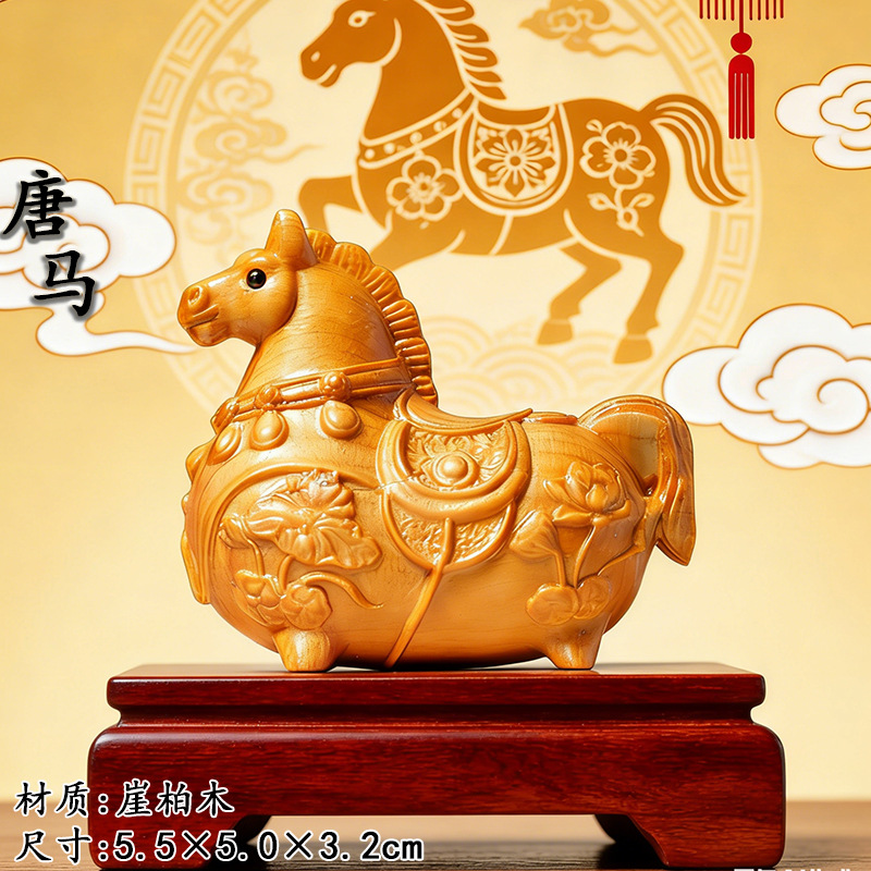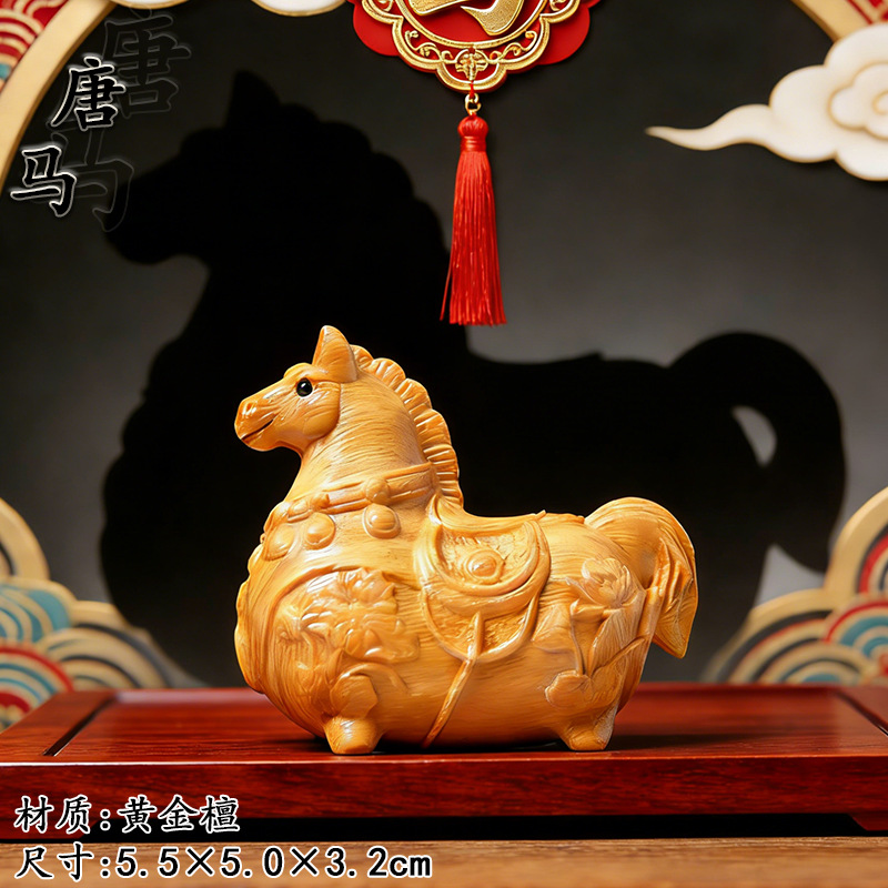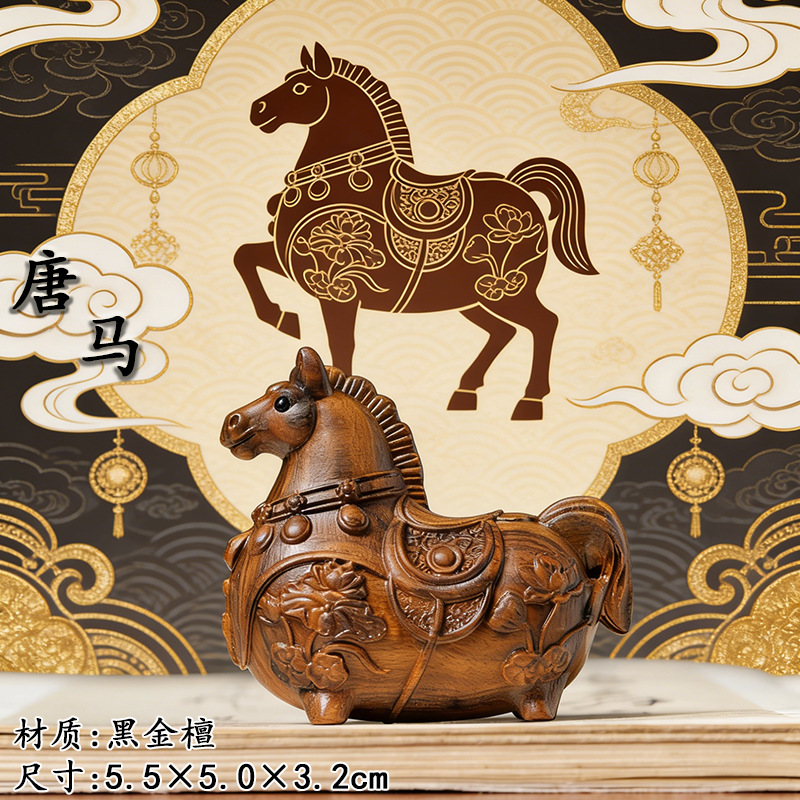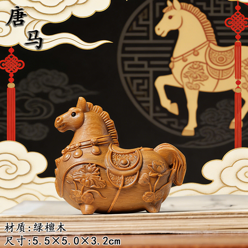 马到成功崖柏绿檀木唐马摆件创意马年礼物可爱桌面摆饰饰品礼品