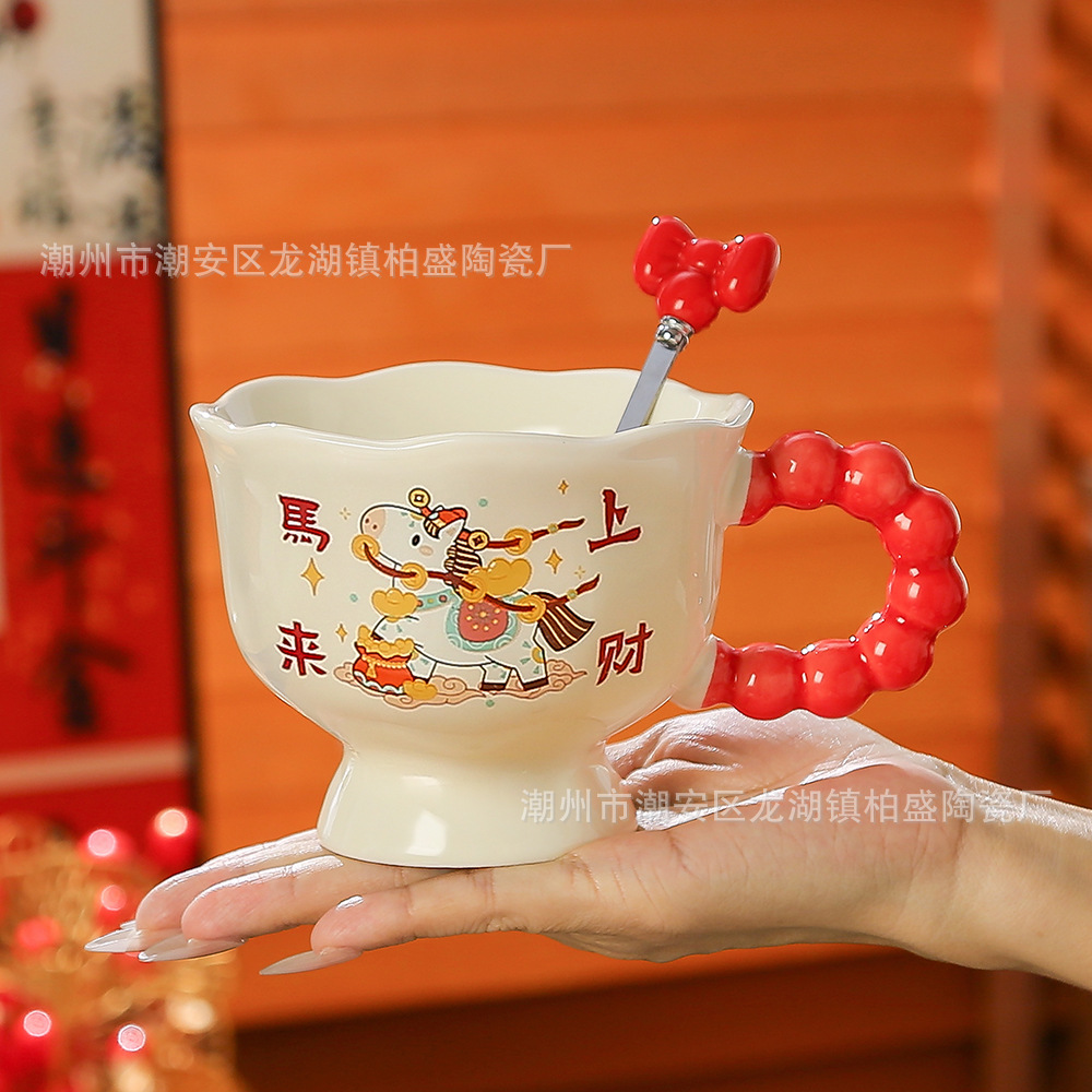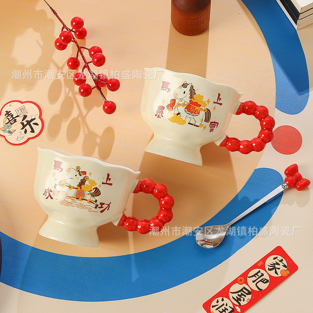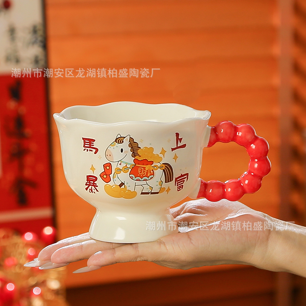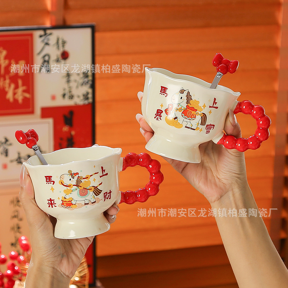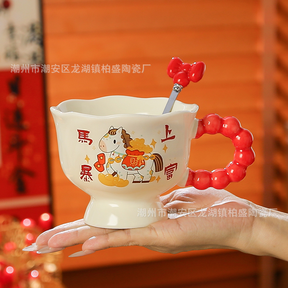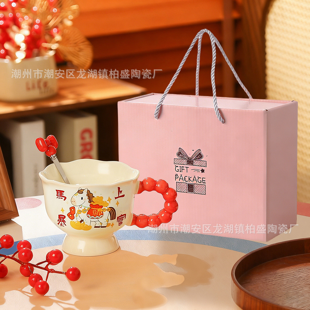马年新款可爱创意杯子新年礼品马上暴富陶瓷杯马克杯伴手礼高颜值