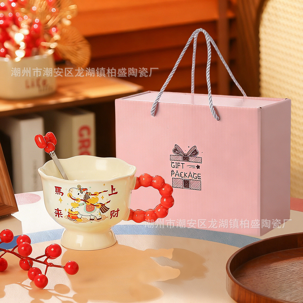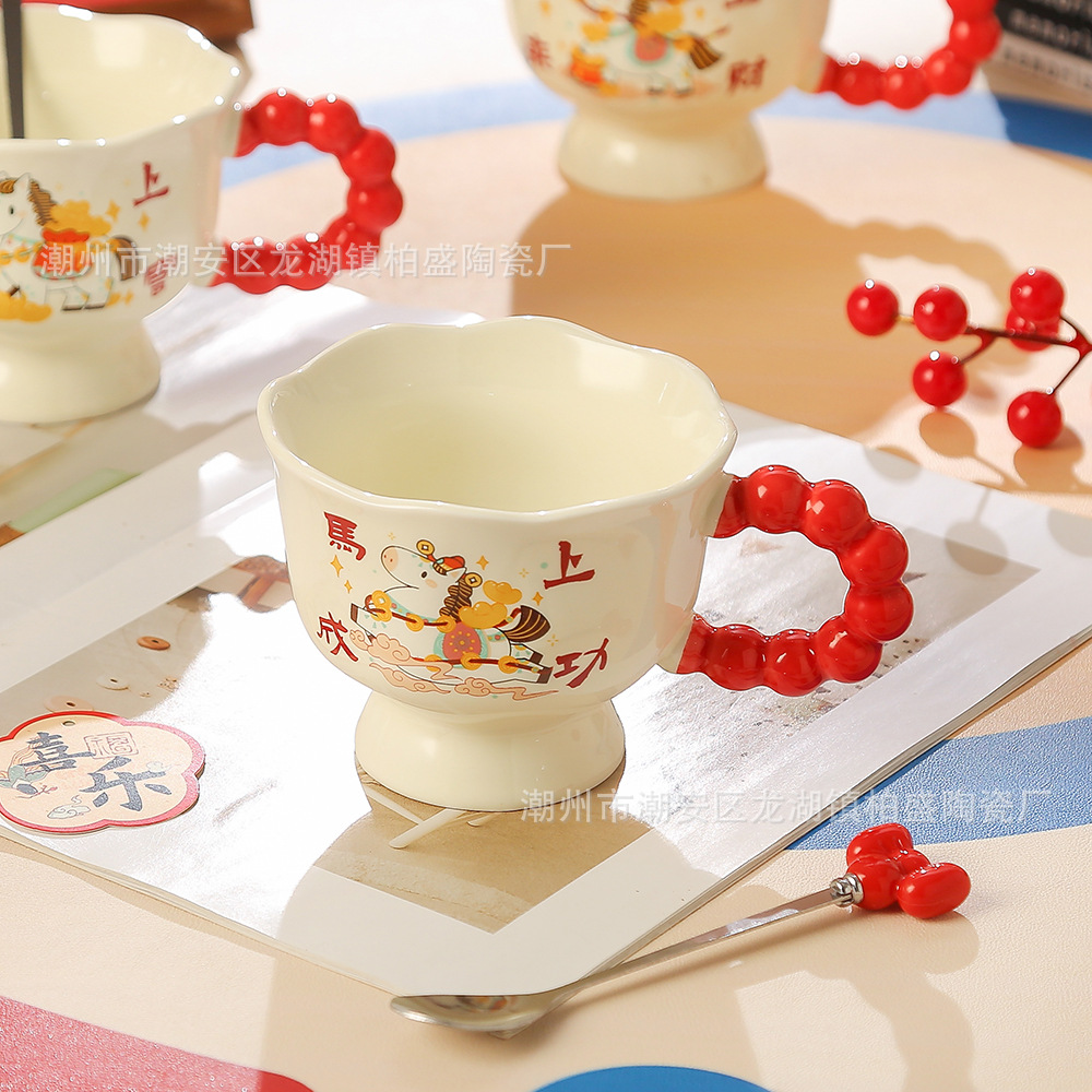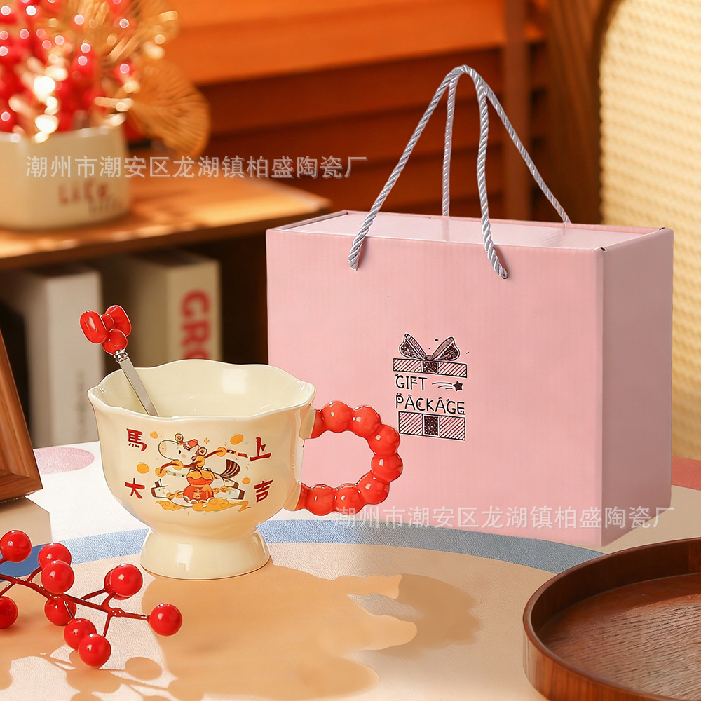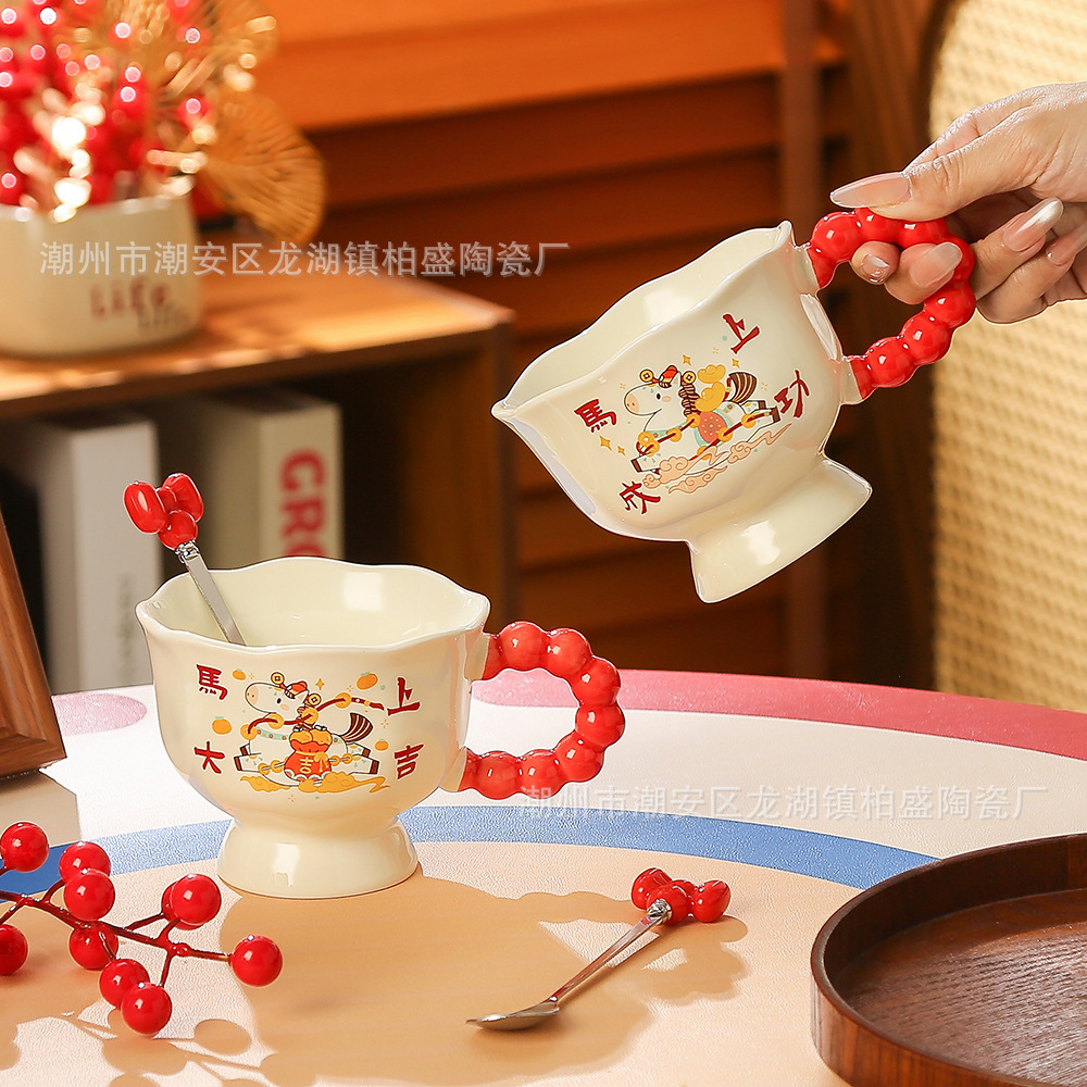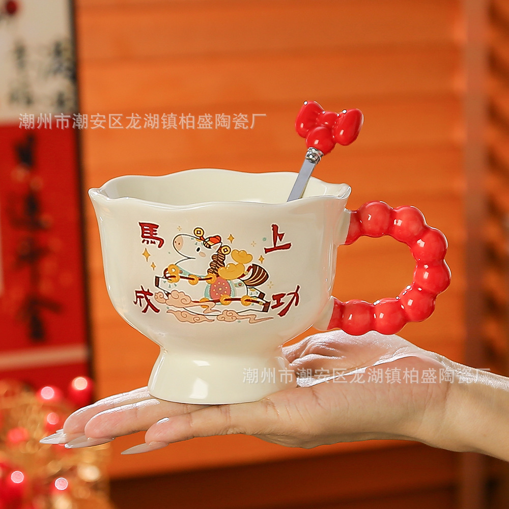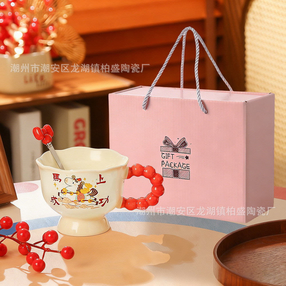 马年新款可爱创意杯子新年礼品马上暴富陶瓷杯马克杯伴手礼高颜值