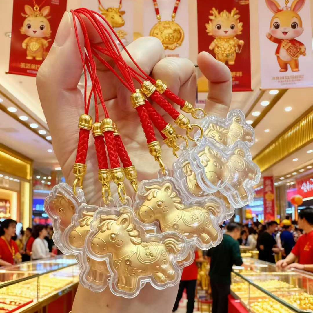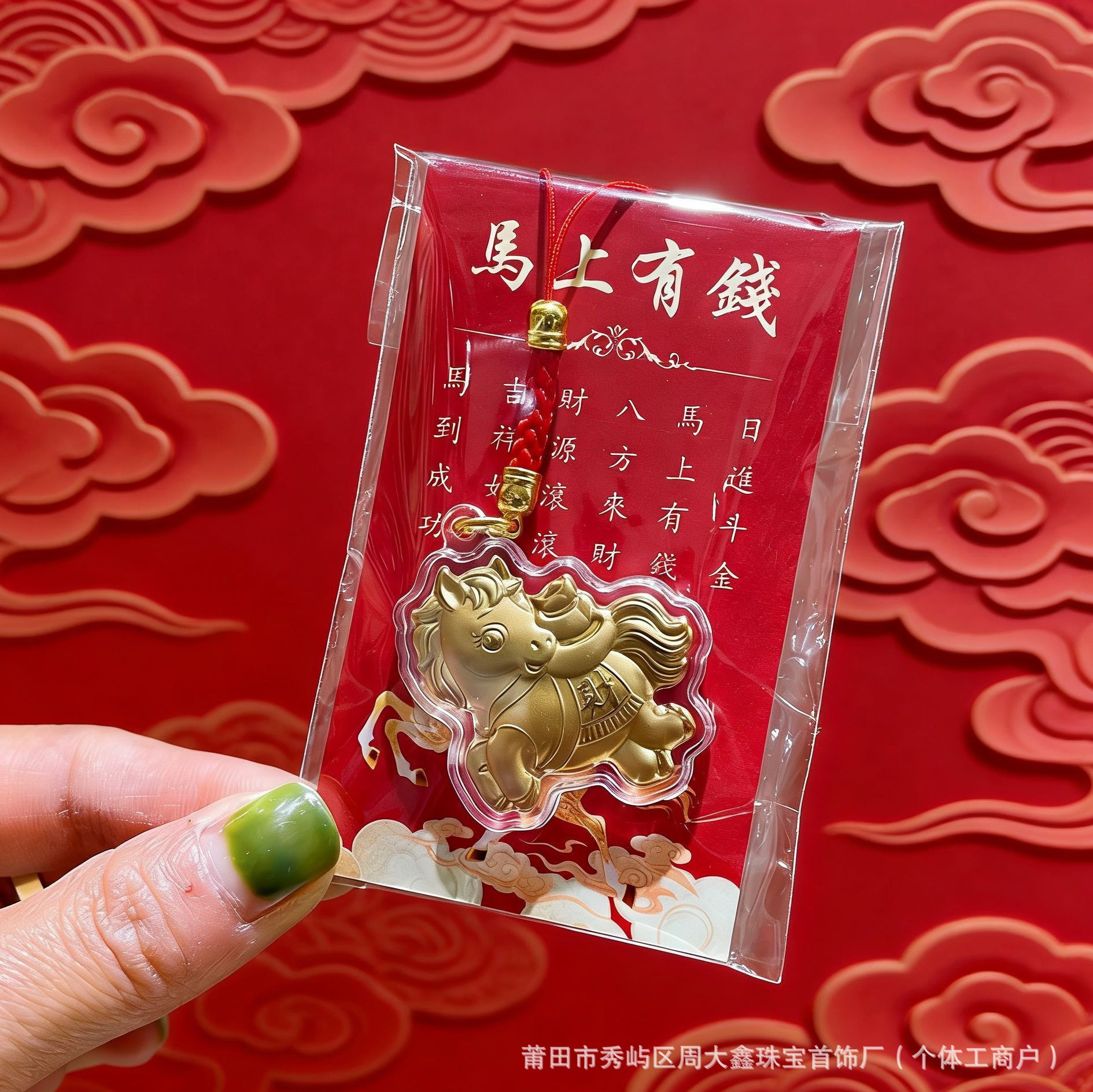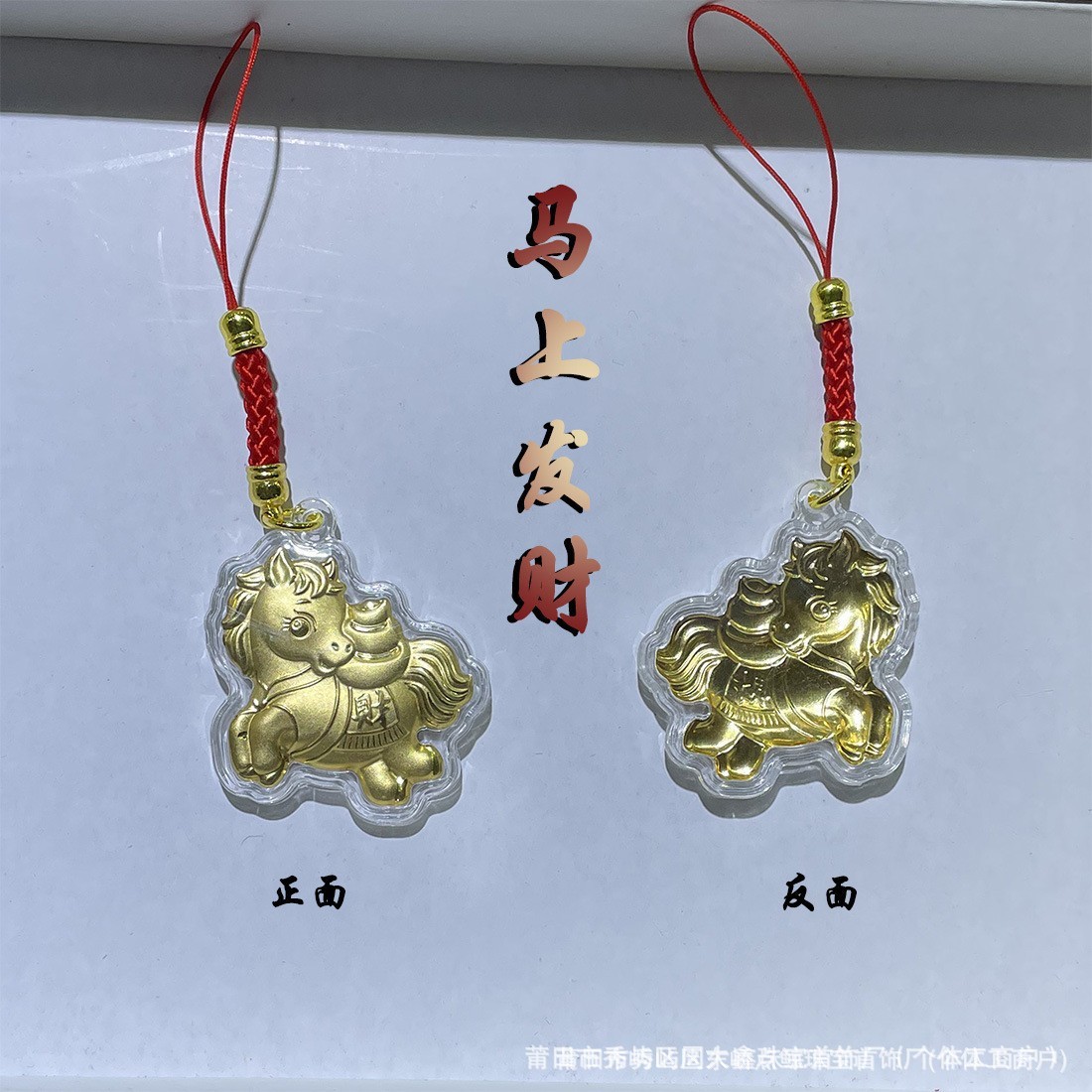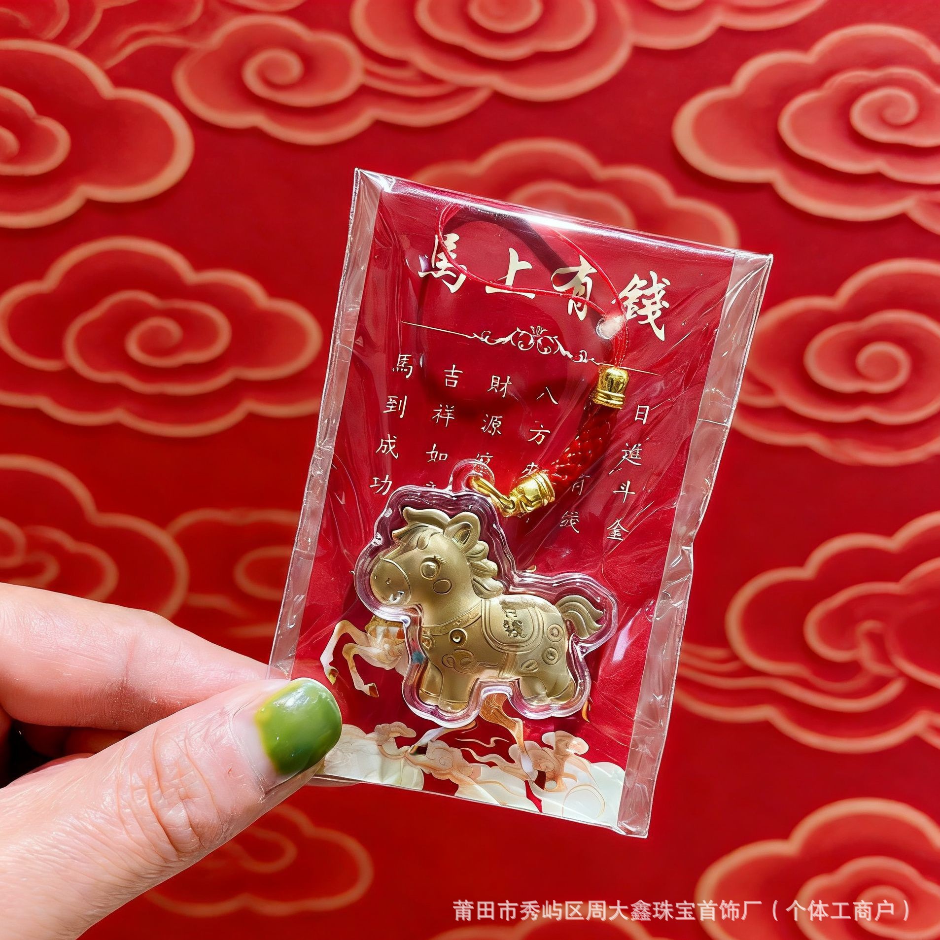 2026马年水贝同款马上有钱手机链钥匙扣挂件可爱卡通小马礼品批发