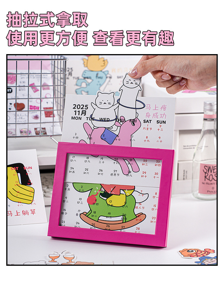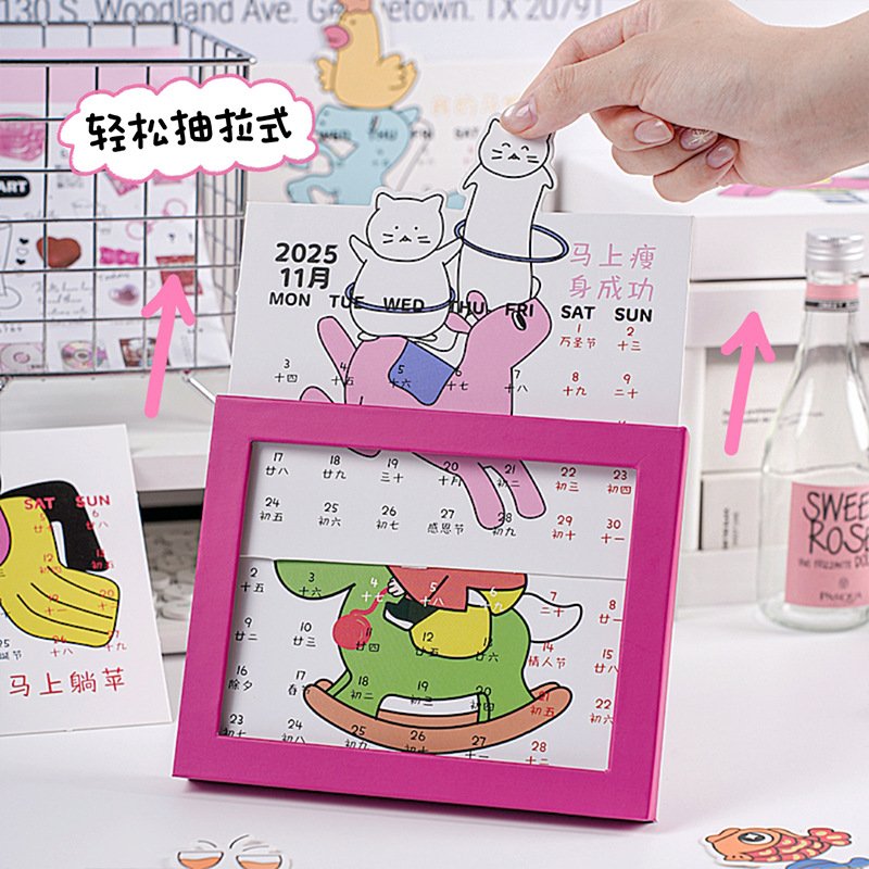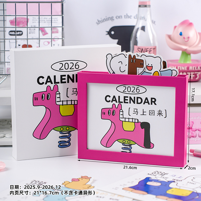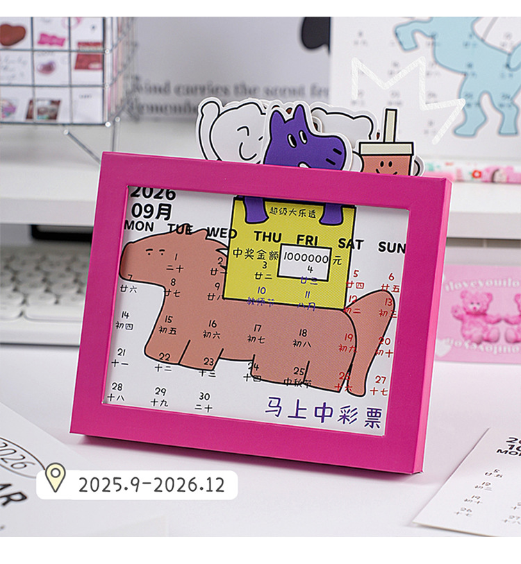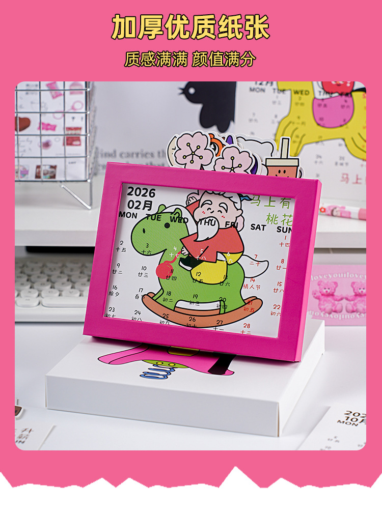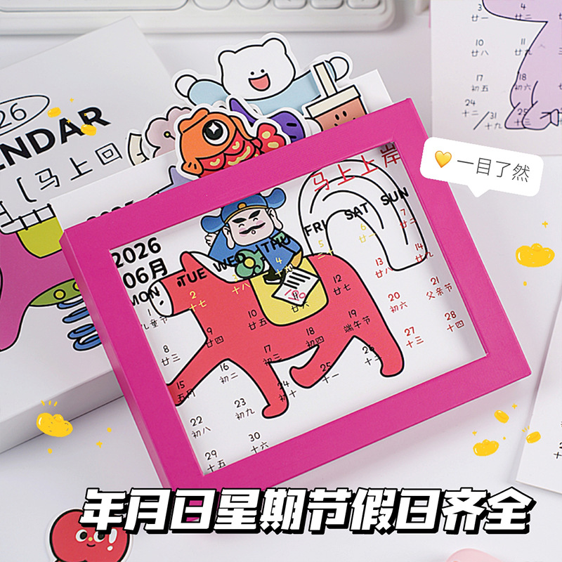 2026马年创意相框式台历办公室桌面摆件月历盒装学生趣味日历礼物