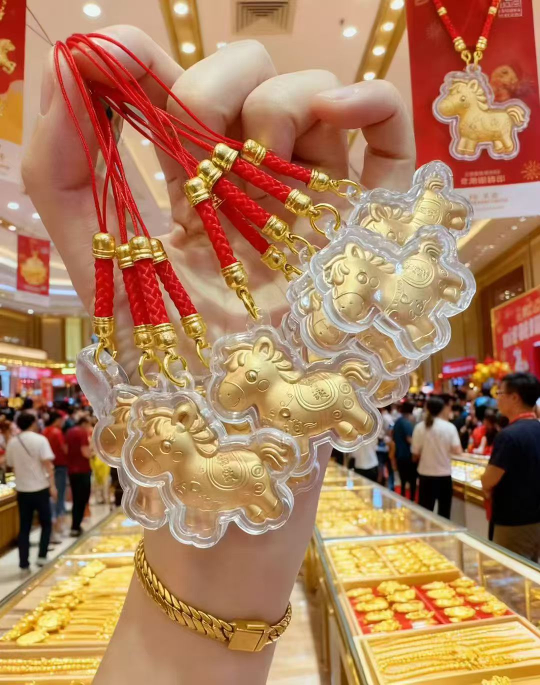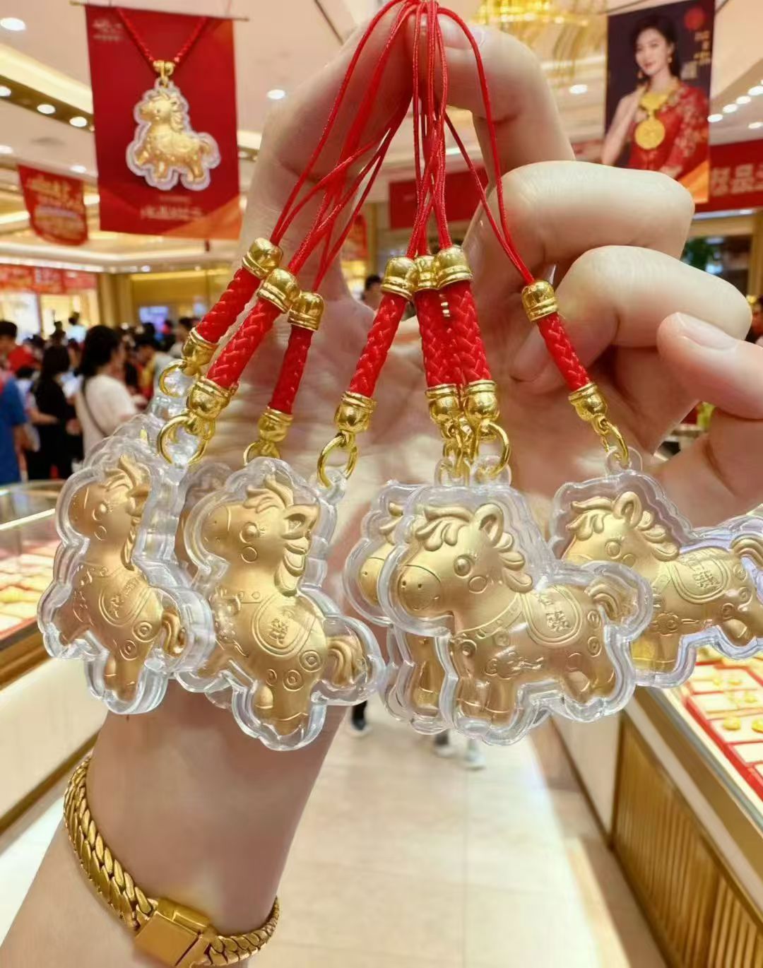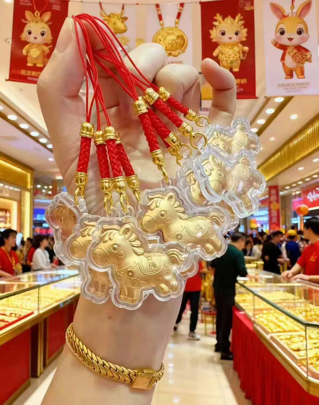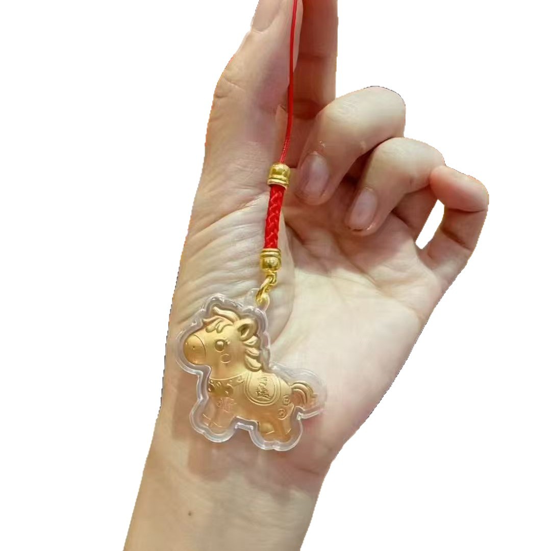 新款马年马上有钱黄金红绳手机链卡通小挂件钥匙扣春节贺岁礼批发
