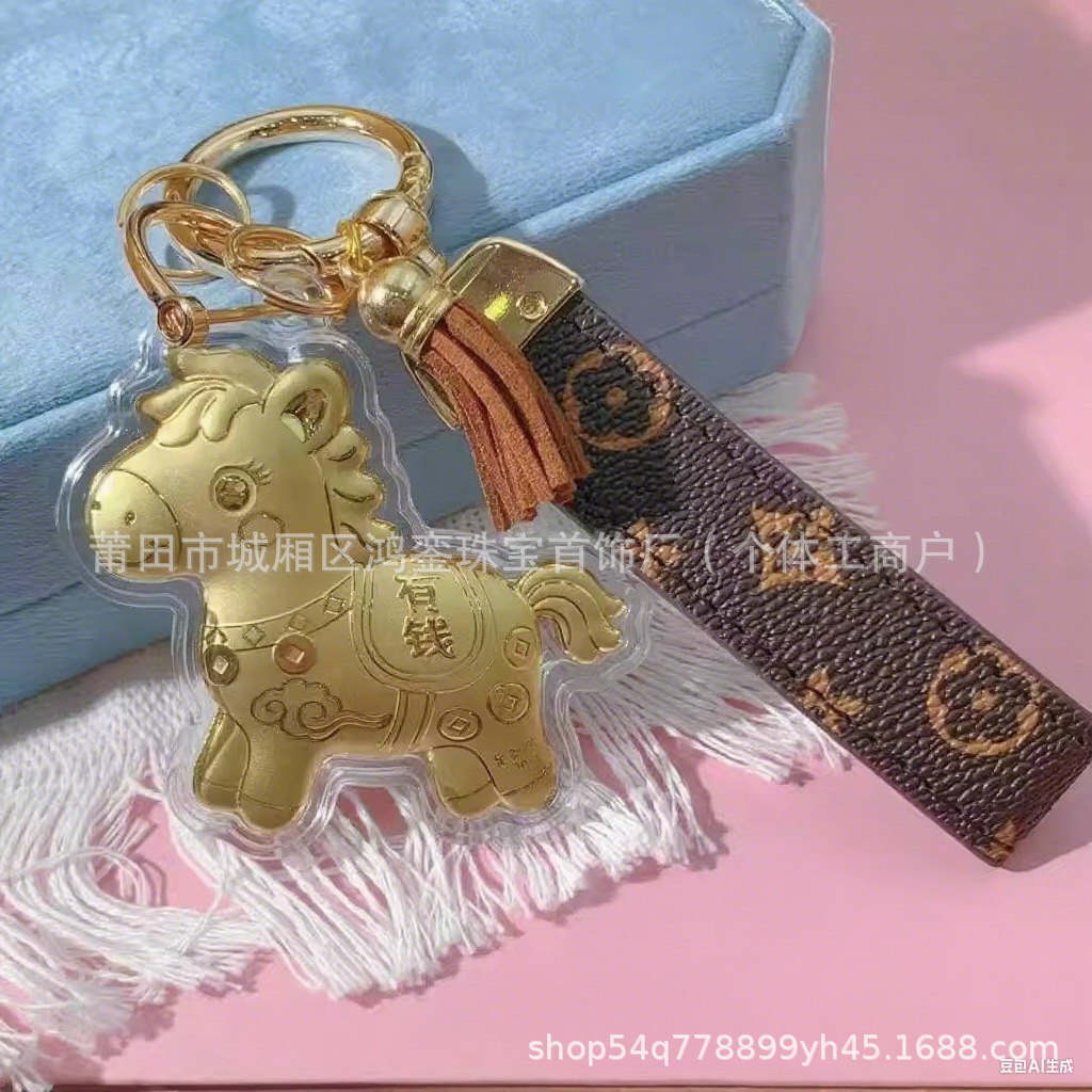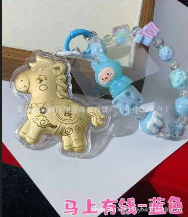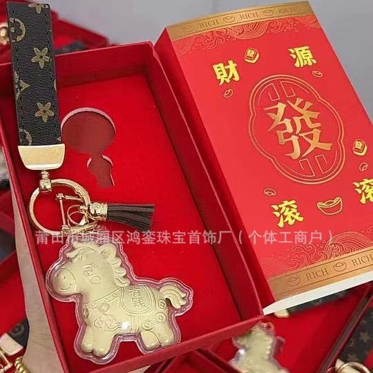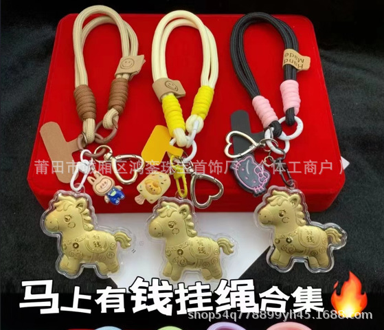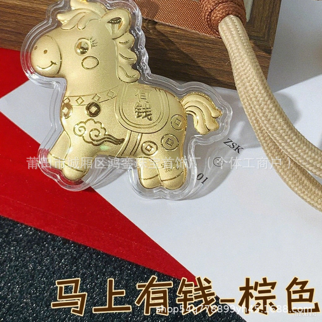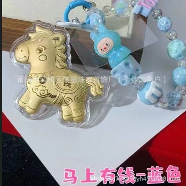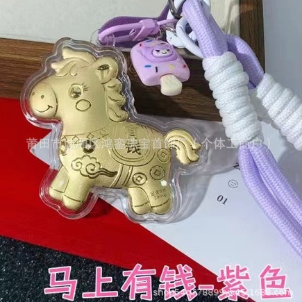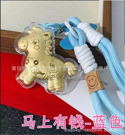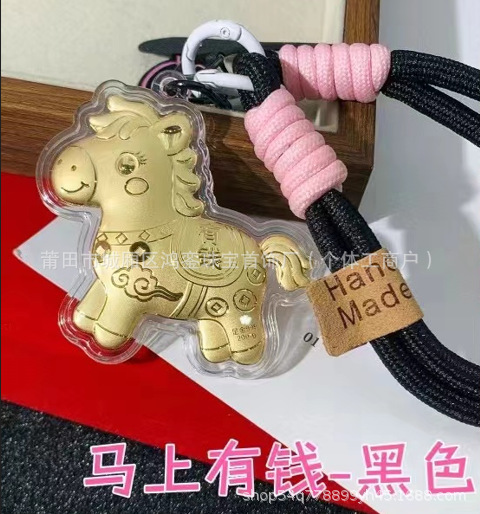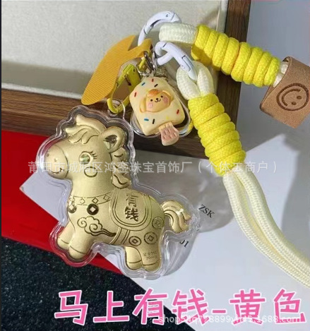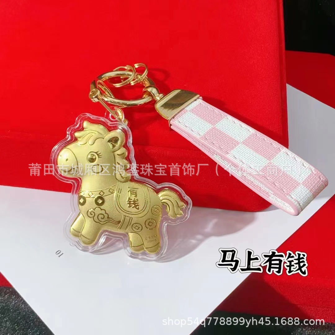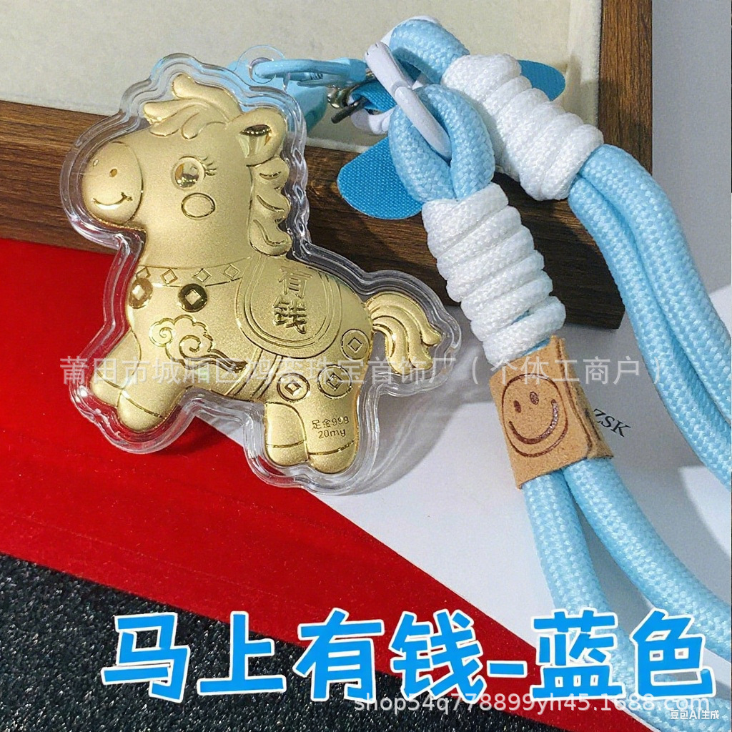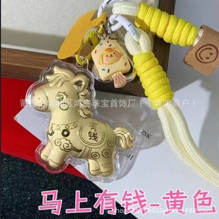 马年钥匙扣马上有钱祝福钥匙扣 包包挂件 足金手机链保险会销礼品