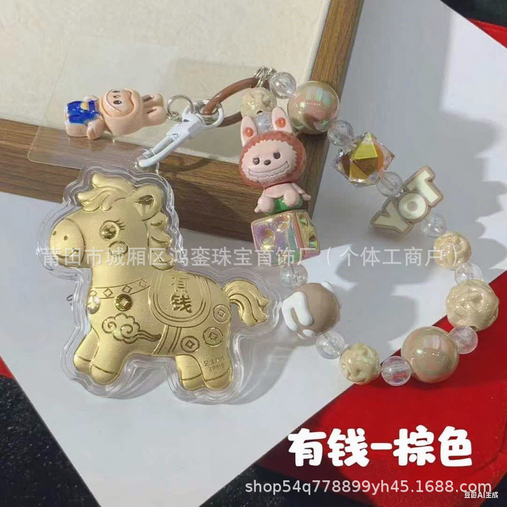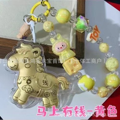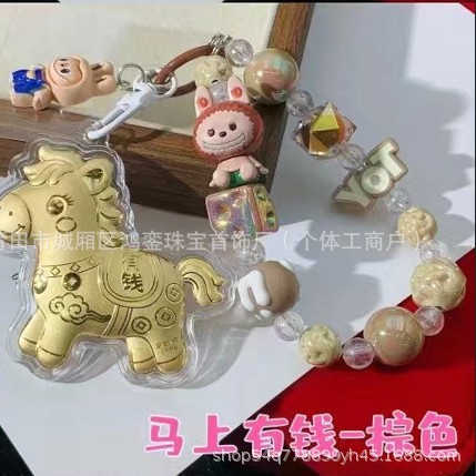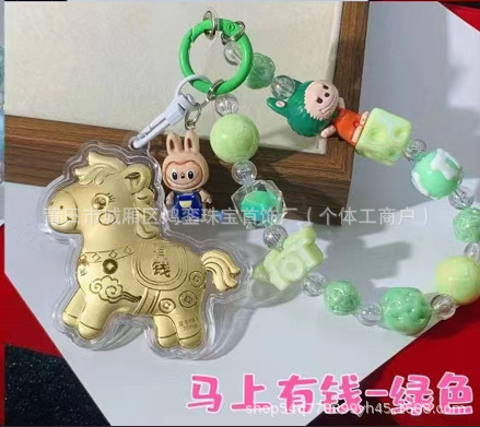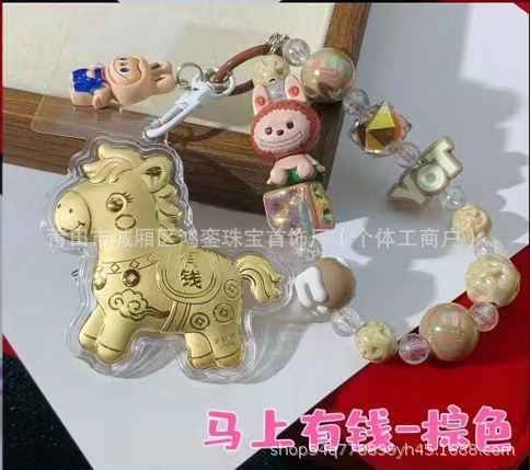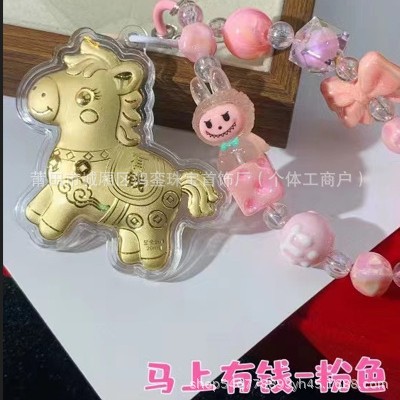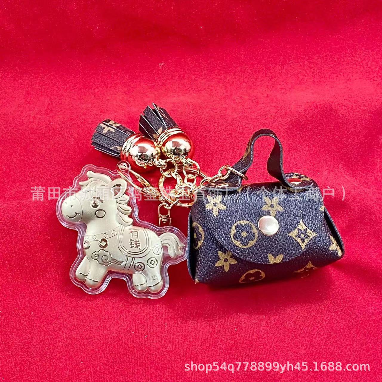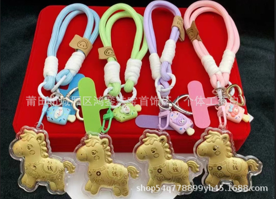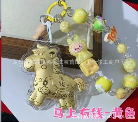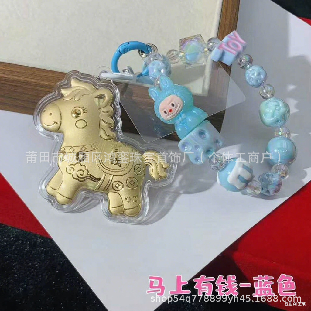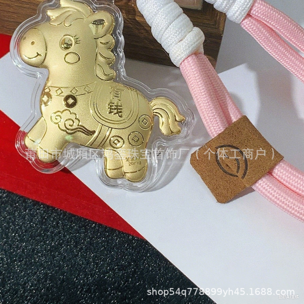 马年钥匙扣马上有钱祝福钥匙扣 包包挂件 足金手机链保险会销礼品
