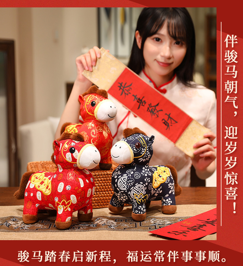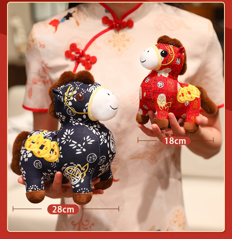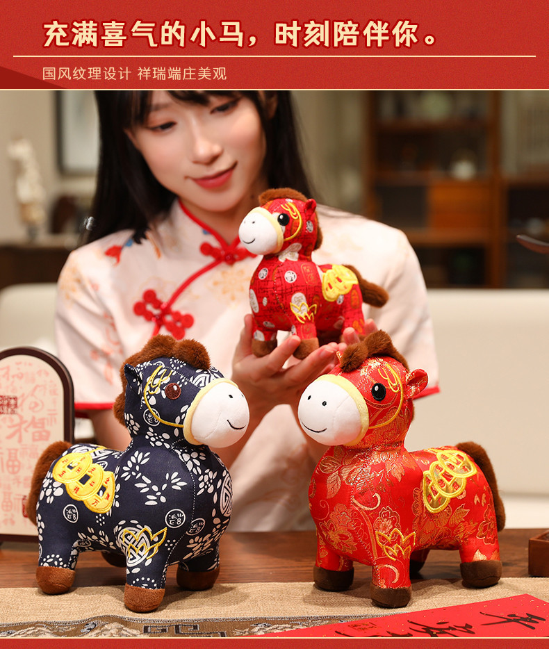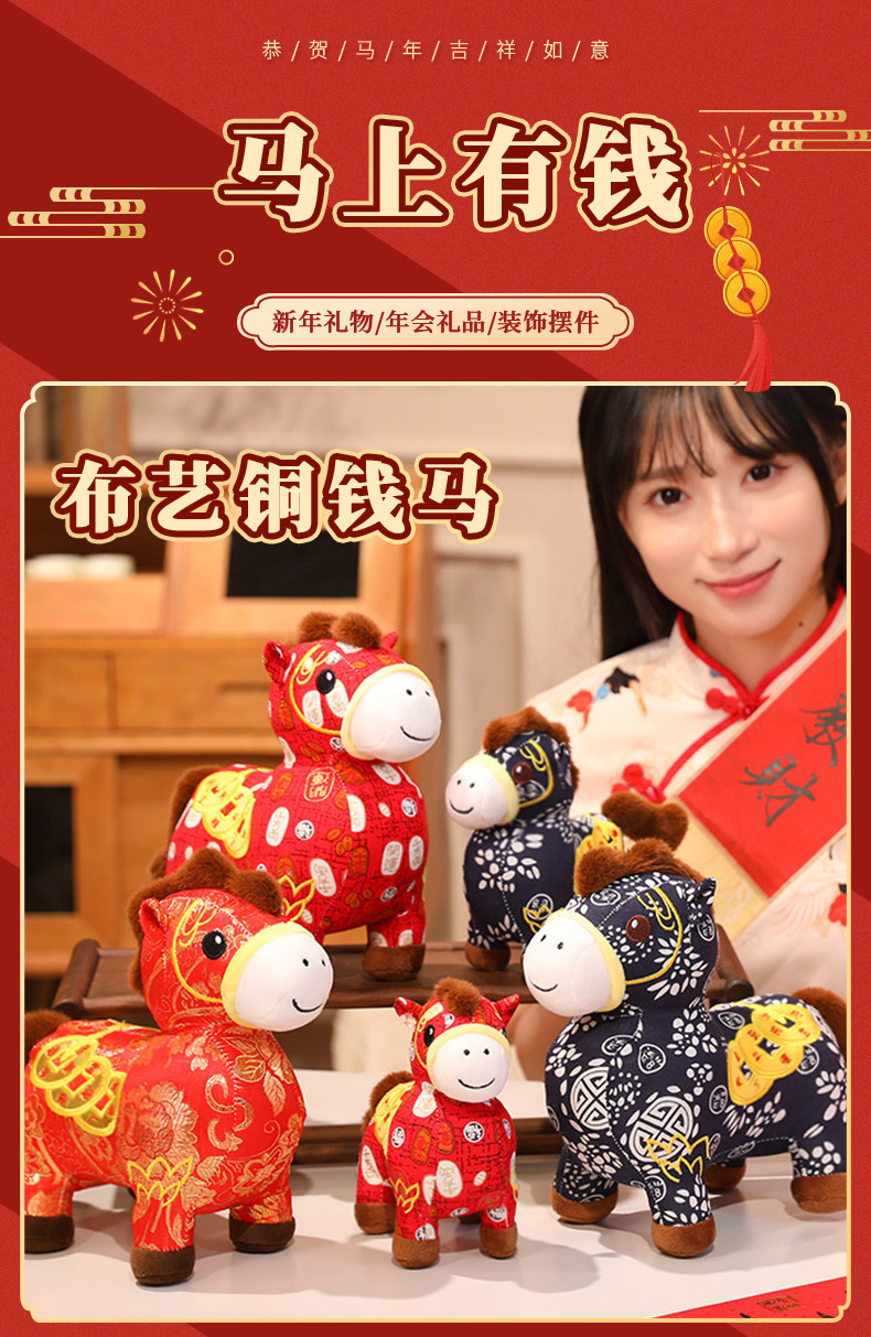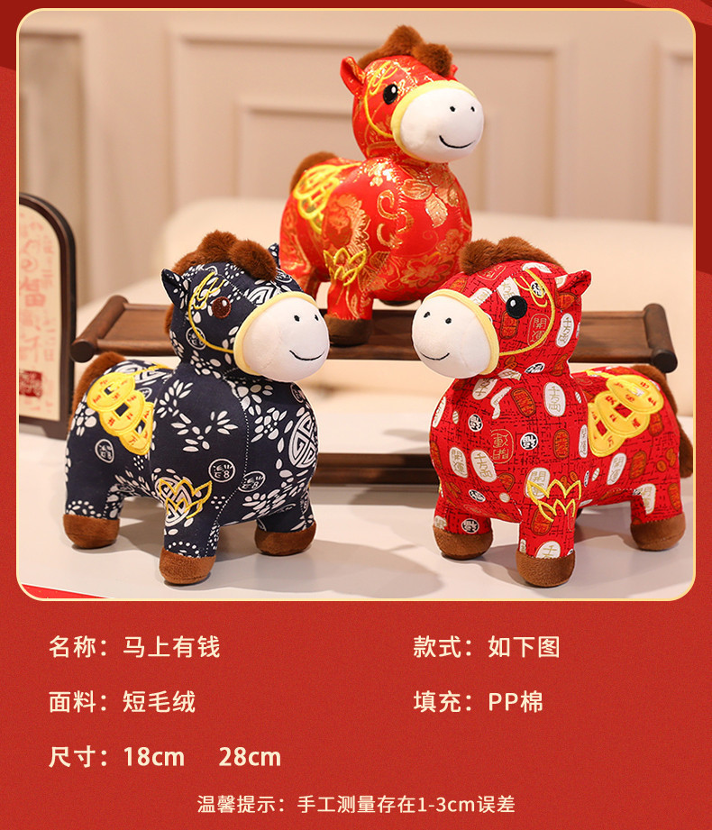 马年吉祥物毛绒玩具创意生肖小马公仔公司年会礼品吉祥布艺铜钱马